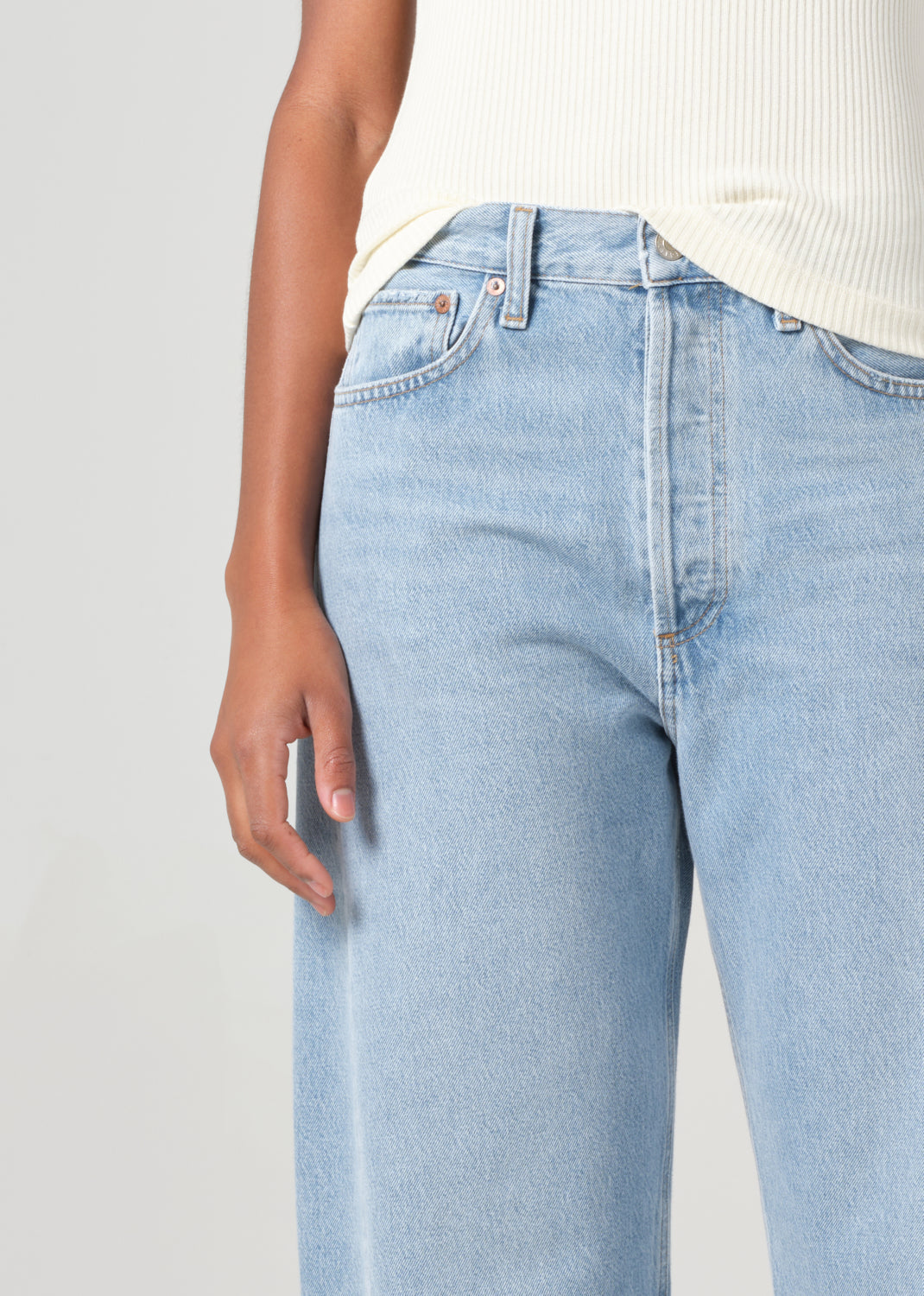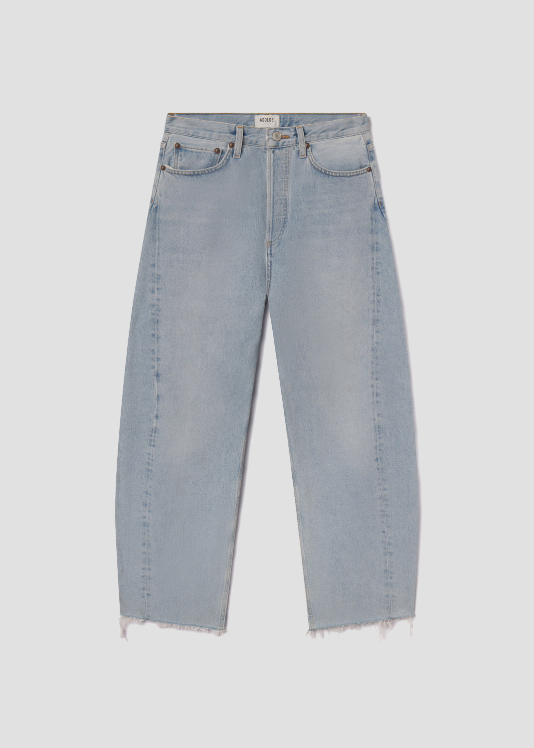 Structured to perfection. The Luna is designed with a waist-accentuating high-rise and a full-length relaxed leg. The pieced insert detailing at the outseam creates a bowed leg silhouette, ideal for taking your everyday denim to the next level.