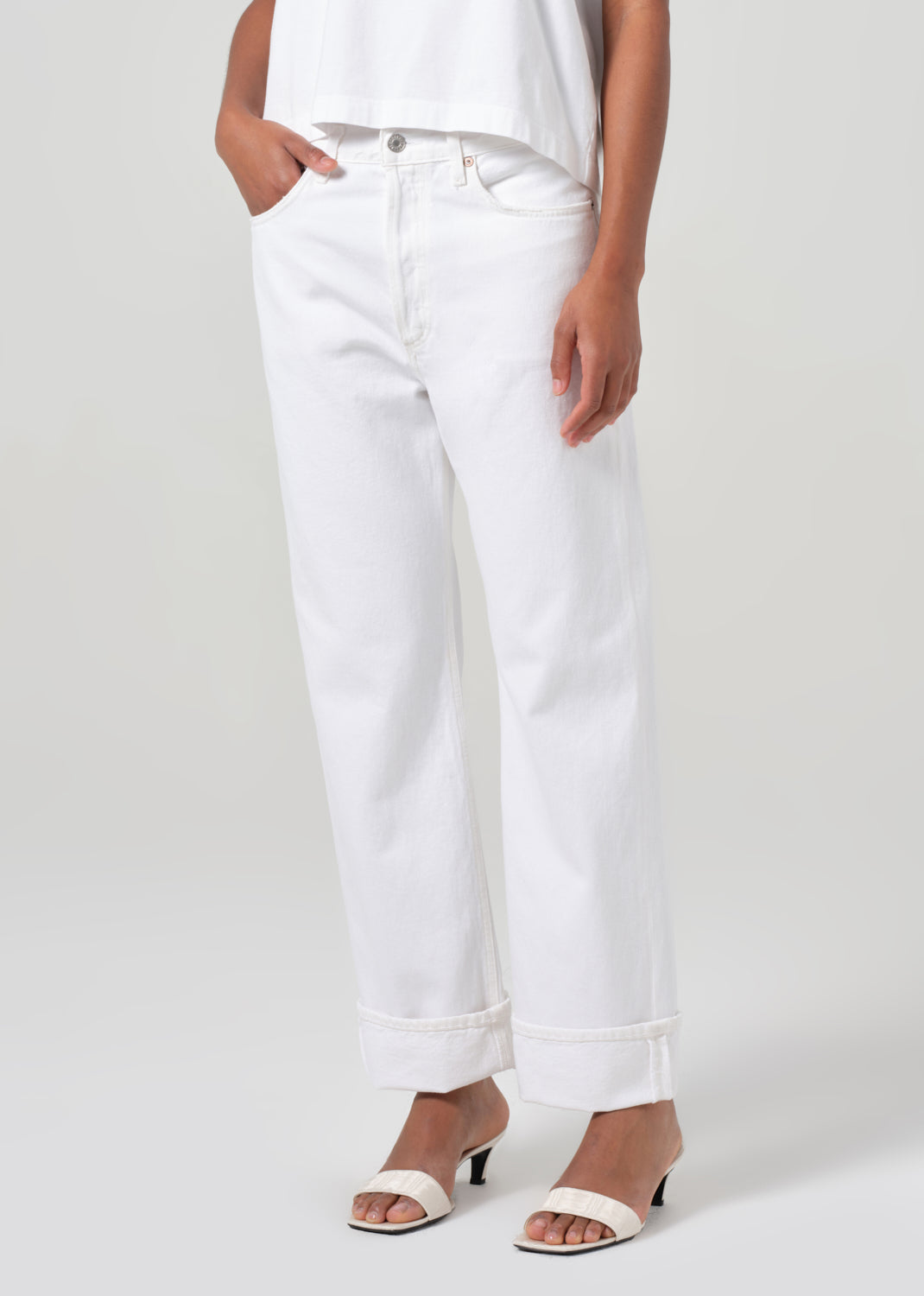 The latest low-slung design - the Fran features an easy cut through the hips, a relaxed leg that's finished with an untacked folded cuff. Style back to a tonal denim top or a sleek long sleeve.