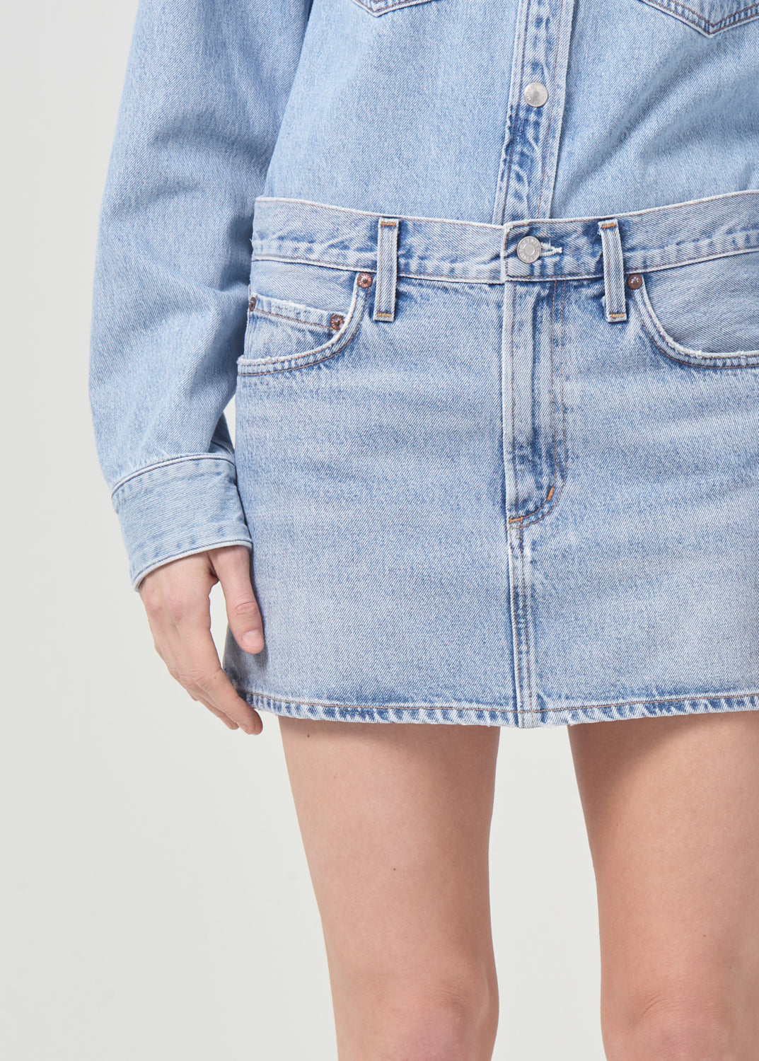 Crafted in our signature regenerative cotton, the Alek mini skirt features classic 5-pocket detailing and a clean, finished hem. It pairs perfectly with a denim jacket for a chic, head-to-toe denim look, or style with a simple tee and sneakers for a more relaxed vibe.