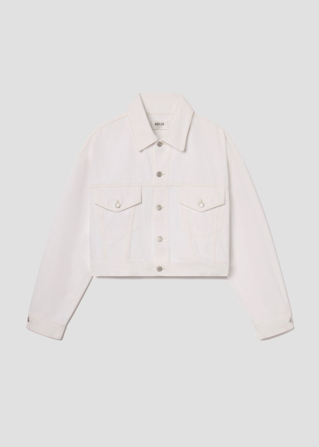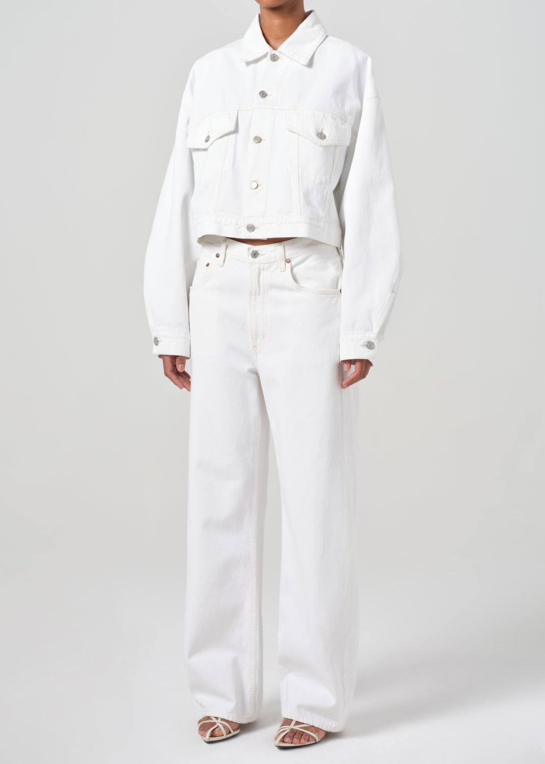 An updated take on a classic, the Palmer is crafted from regenerative cotton in crisp white denim. Featuring a subtle cropped body, it offers a modern silhouette that pairs effortlessly with high-waisted styles. The low, exaggerated balloon sleeves add a touch of drama, making this piece a statement addition to any wardrobe