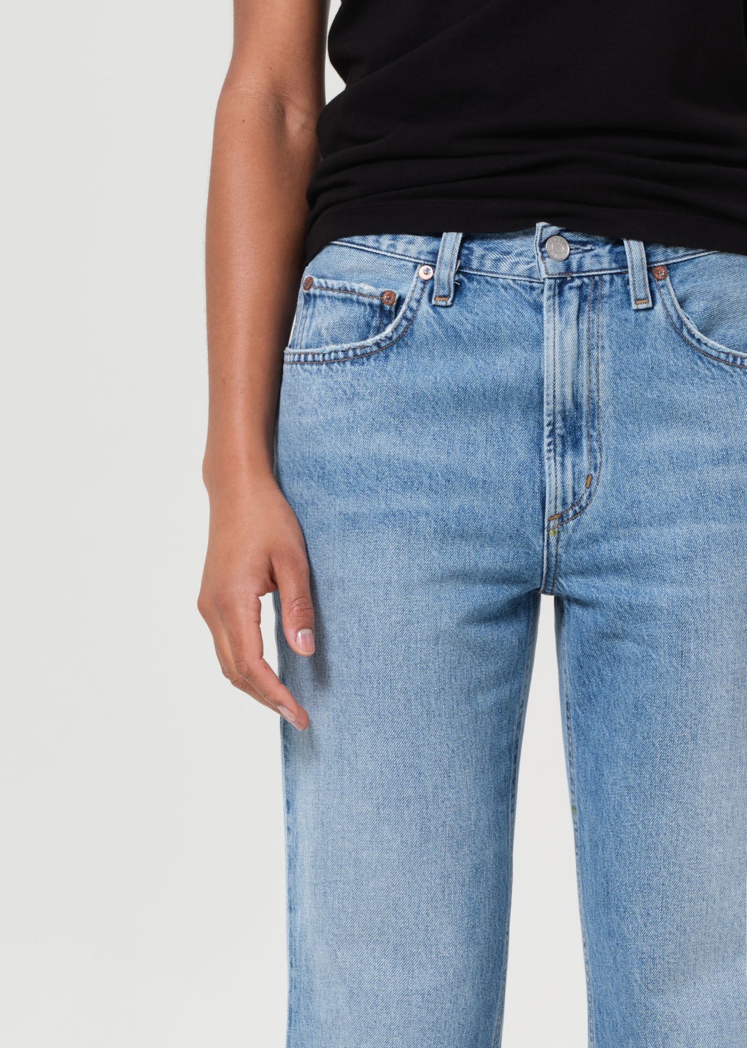 A timeless straight-leg silhouette with subtle edge. Designed with a mid rise and slim-straight fit through the leg, this pair feels lived-in yet refined—perfect for everything from oversized layers to minimal tanks.