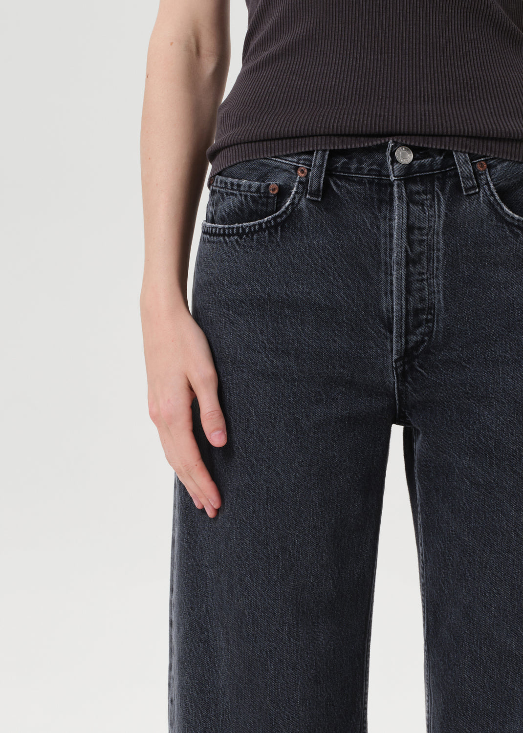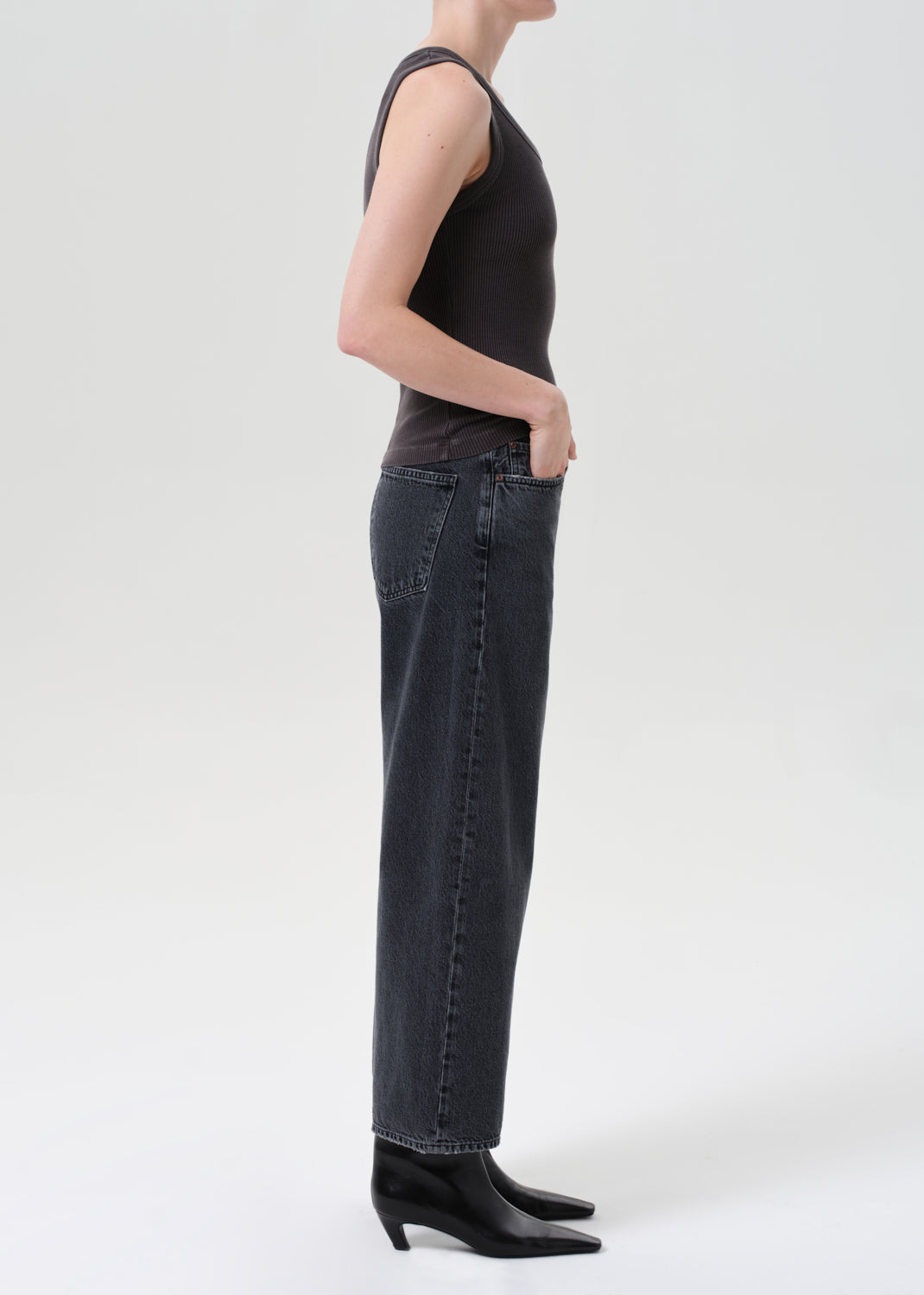 The Arc Jean features a subtle bow-leg silhouette with an easy, relaxed top block—offering a directional shape that feels effortlessly cool. Crafted from non-stretch cotton denim in a medium washed out black, this fit is designed for all-day wearability with a soft hand feel. Perfectly paired with boots, the Arc is a go-to for any day and elevated layering.