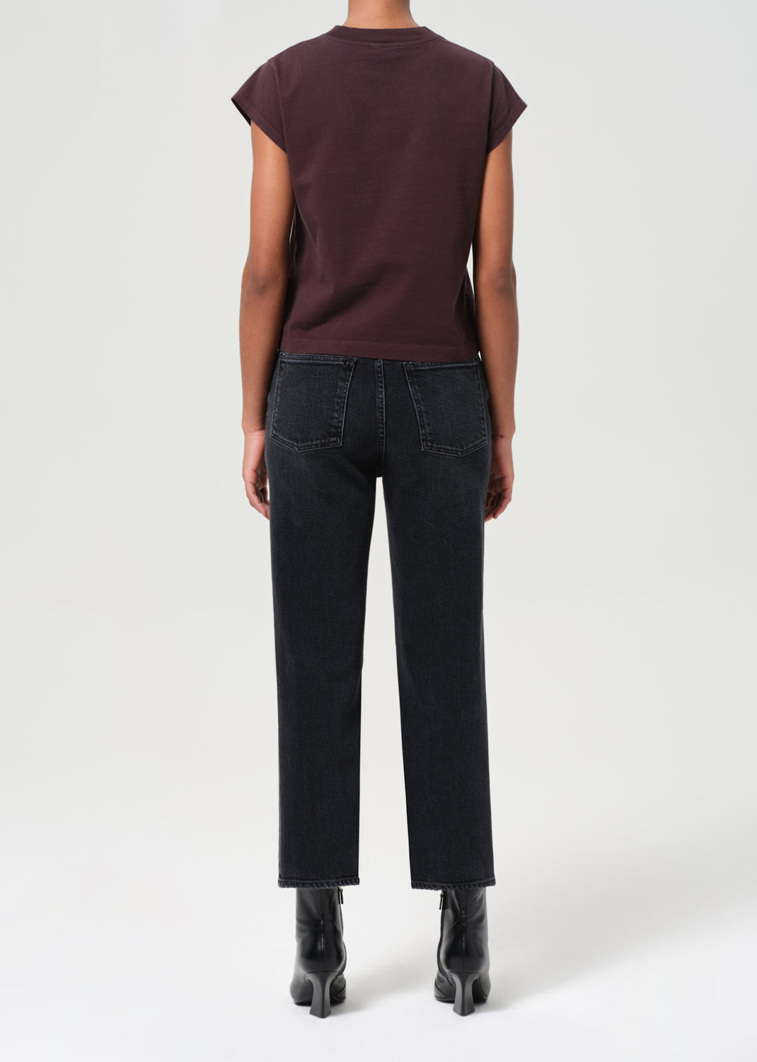 The 90’s Pinch Waist Crop in Radius offers a worn-in take on a classic silhouette with its washed-out medium black finish and subtle vintage detailing. Crafted from heavyweight comfort stretch denim, it combines structure with a soft, flexible feel for lasting wear. The high-rise, straight-leg fit and 27.5" cropped inseam make it a versatile addition to any wardrobe.