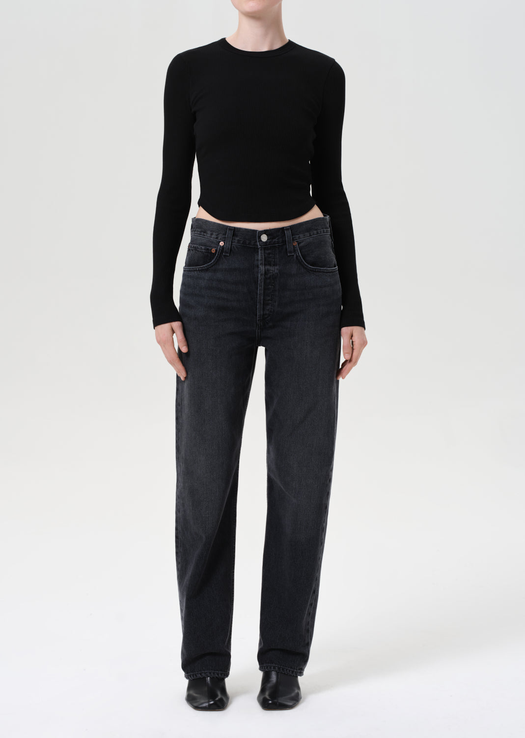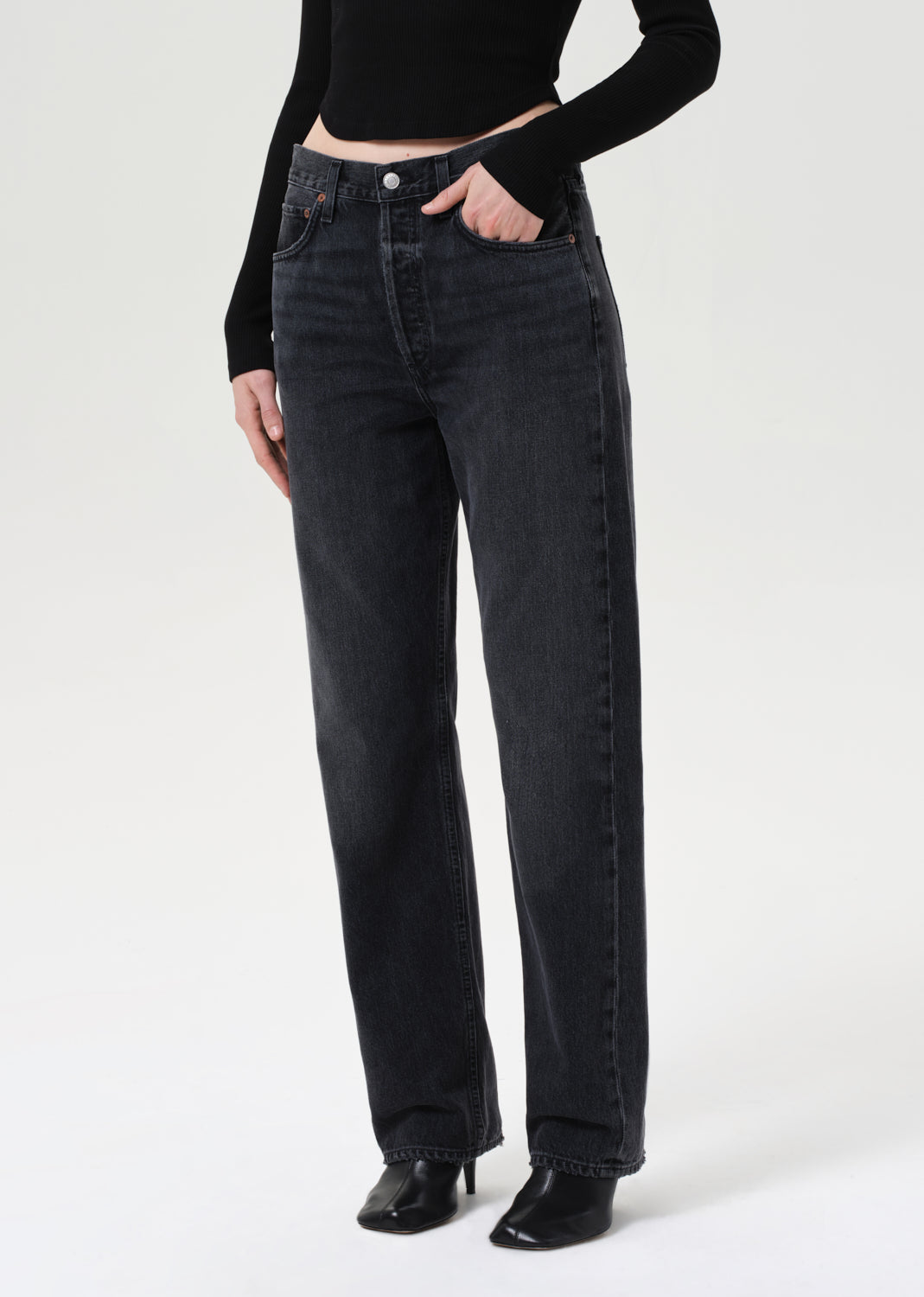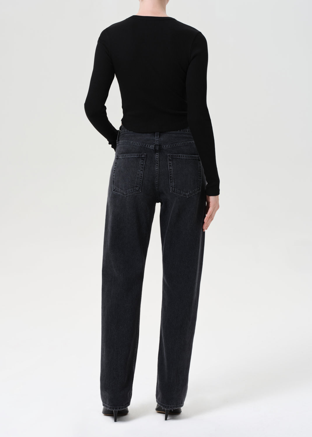 A modern classic with vintage attitude. The Kelly features a high-rise waist, relaxed top block, and straight full-length leg for a flattering, elongating fit. Arcane is a washed-down black denim with subtle fading and marbling, giving it a perfectly worn-in character. Crafted from non-stretch, weightless regenerative cotton, the fabric is exceptionally soft with a lightweight, broken-in feel from the start. Style with a structured blazer and boots for a clean contrast, or pair with a slouchy knit and sneakers for off-duty ease.