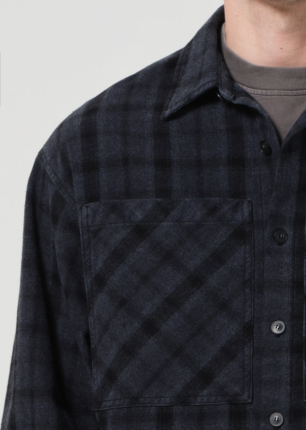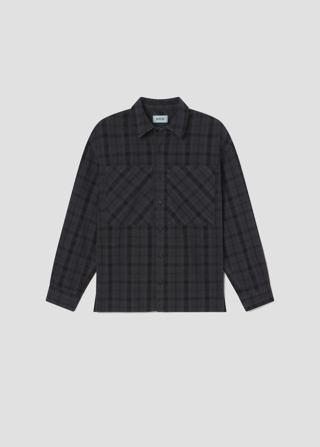 A lightweight layer with a classic feel. The Brennan Shirt is cut from a soft cotton-blend jacquard in a black and grey plaid. Finished with a button front and tailored in a true-to-size fit—easy to wear on its own or layered.