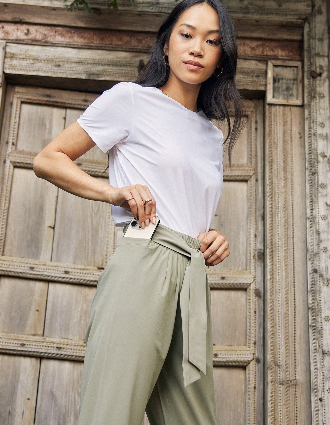 Way better than any leggings. These lightweight, cropped pants feature a gathered waistline, phone pocket and tie belt detailing. Now, in a luxe 100% recycled fabric (Rec-01).