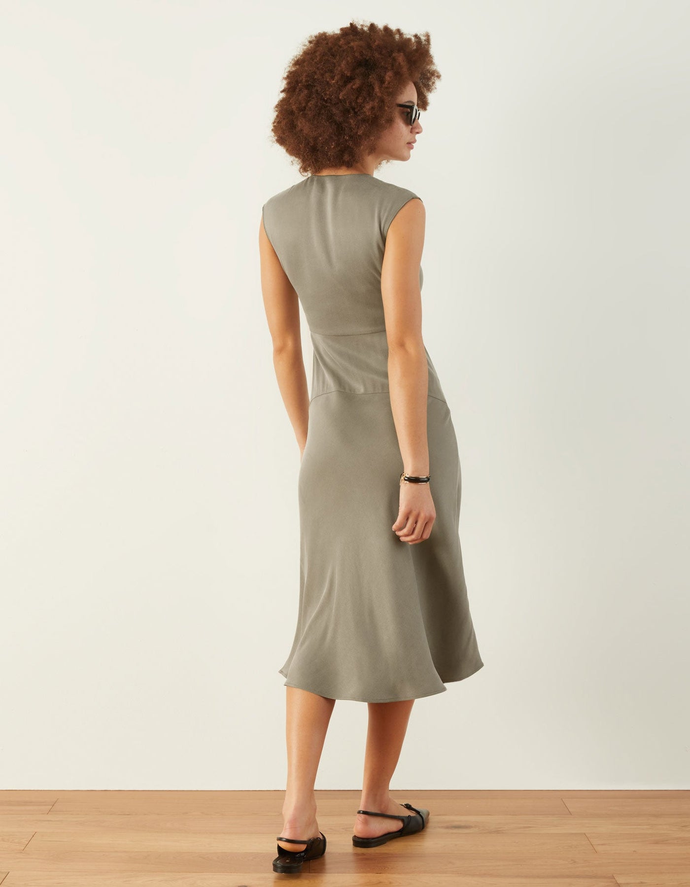 Put it in your calendar. This sleeveless midi dress makes everyday an event with its innovative adjustable neckline. Zip it up for work, or keep it open for formal occasions or strolls around the park where you just want strangers to think, 'Who is she?'
