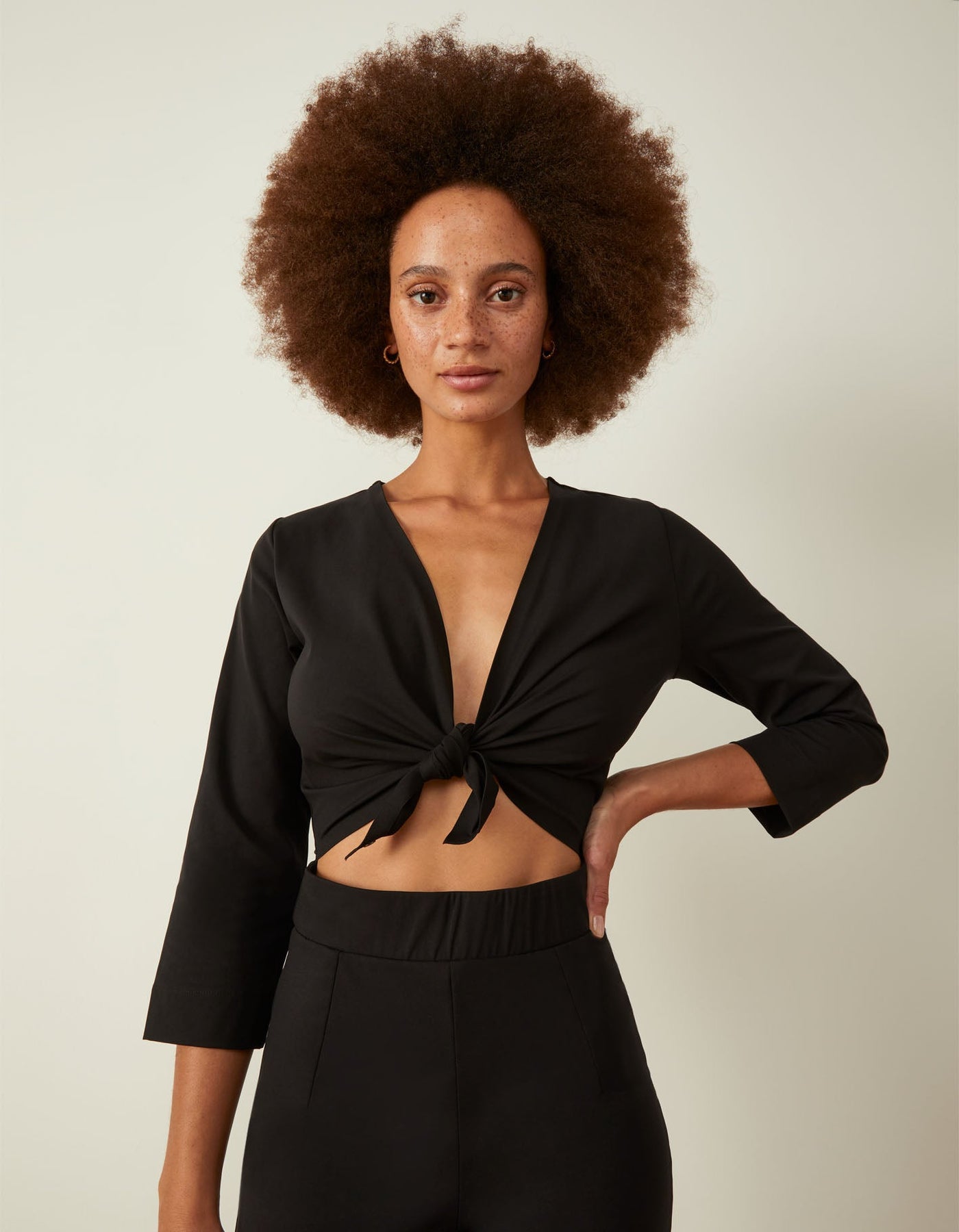 Dance all night, then catch your flight. Featuring a snap for two different silhouettes, and 3/4 length sleeves.