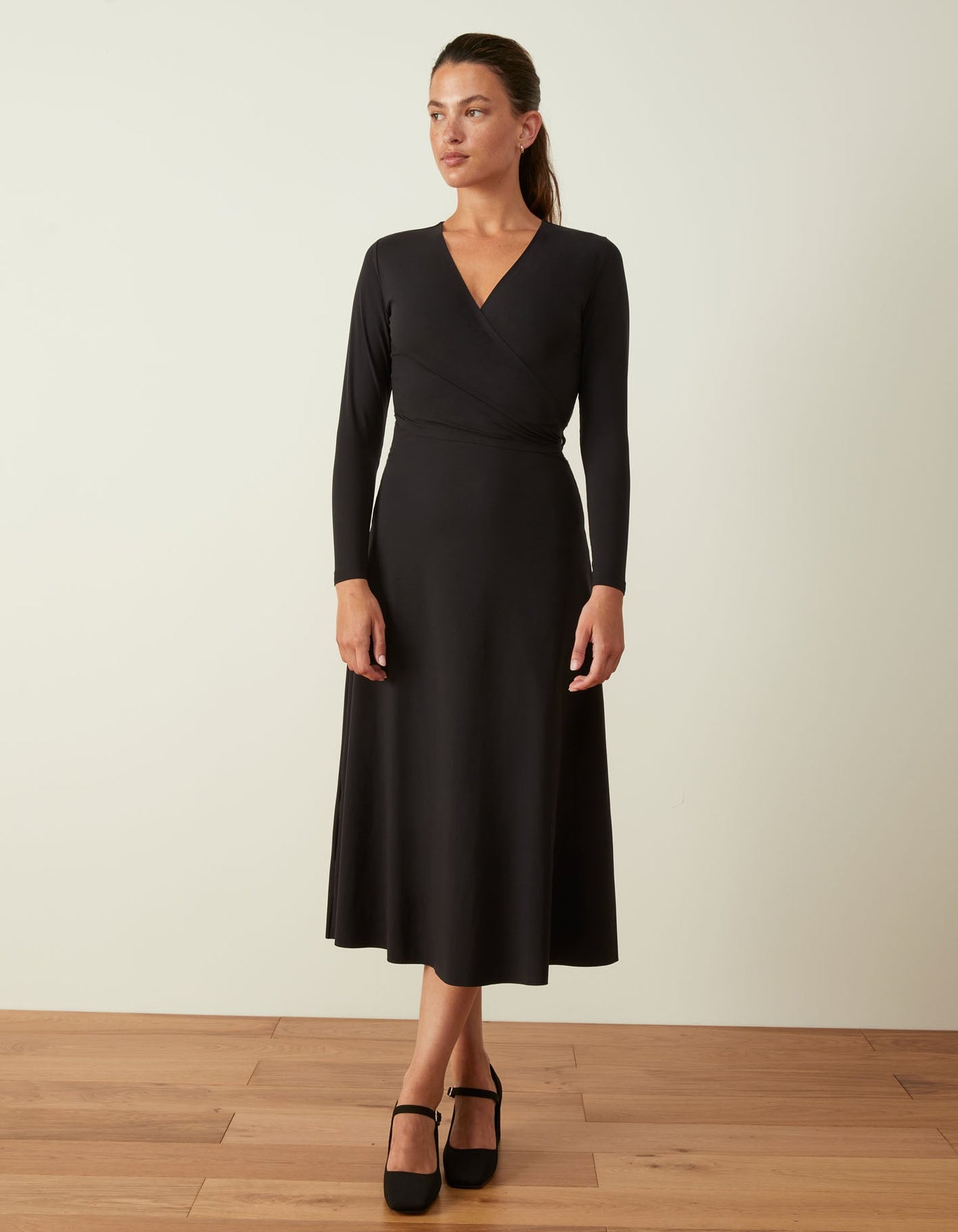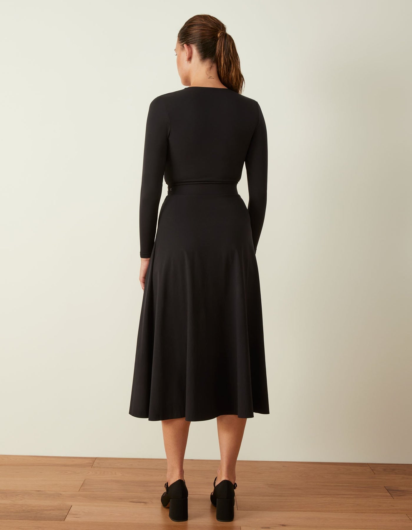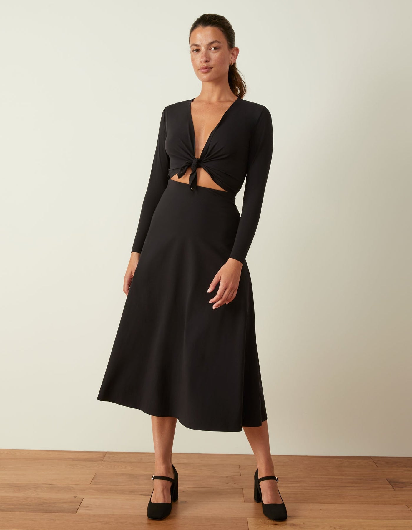 A dress that embodies success. Our best-selling jumpsuit's sister-style is designed to be fitted through the body and flare out from the hip. If between sizes, we recommend sizing up.