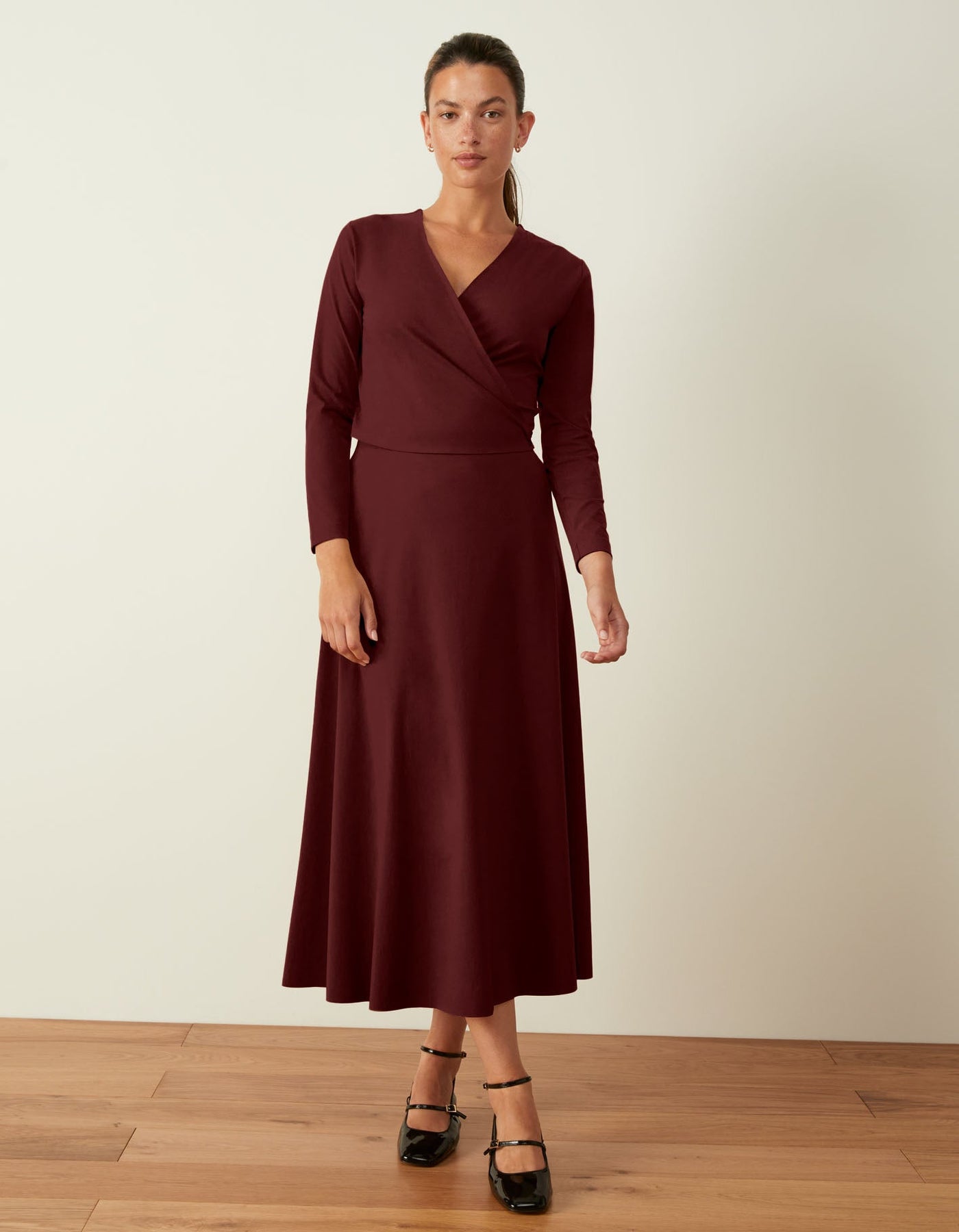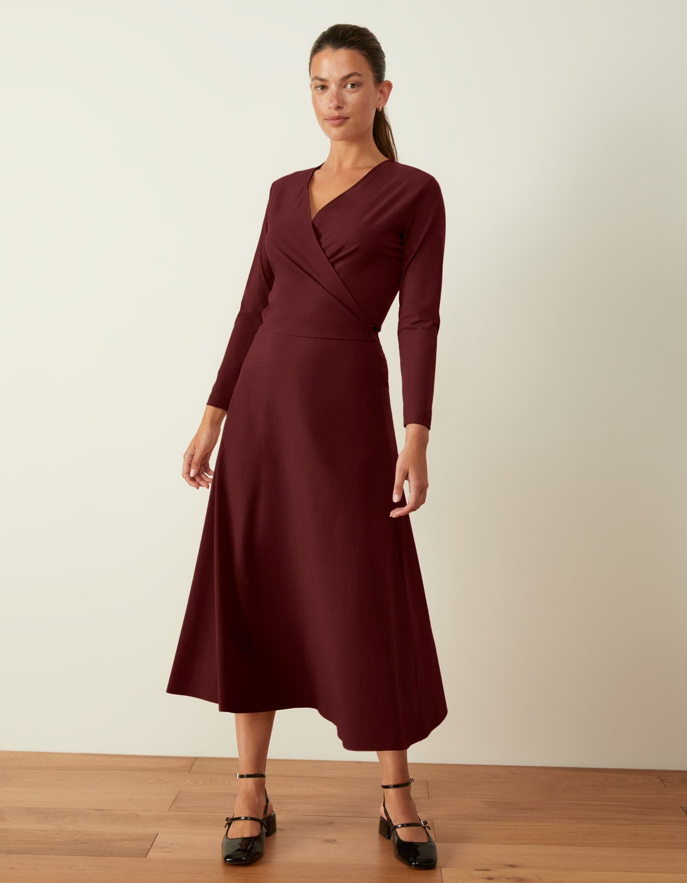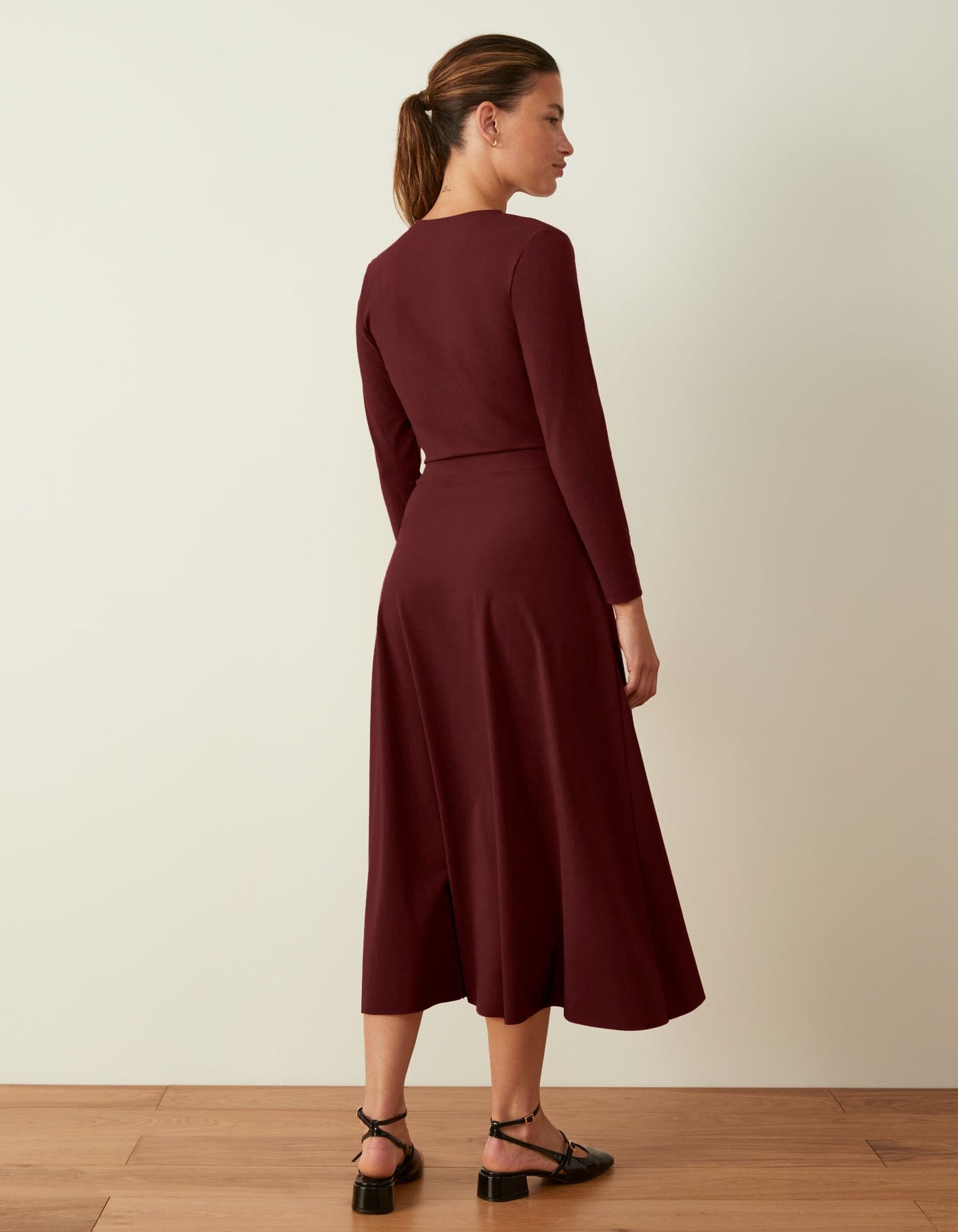 A dress that embodies success. Our best-selling jumpsuit's sister-style is designed to be fitted through the body and flare out from the hip. If you are in between sizes, we recommend sizing up.
