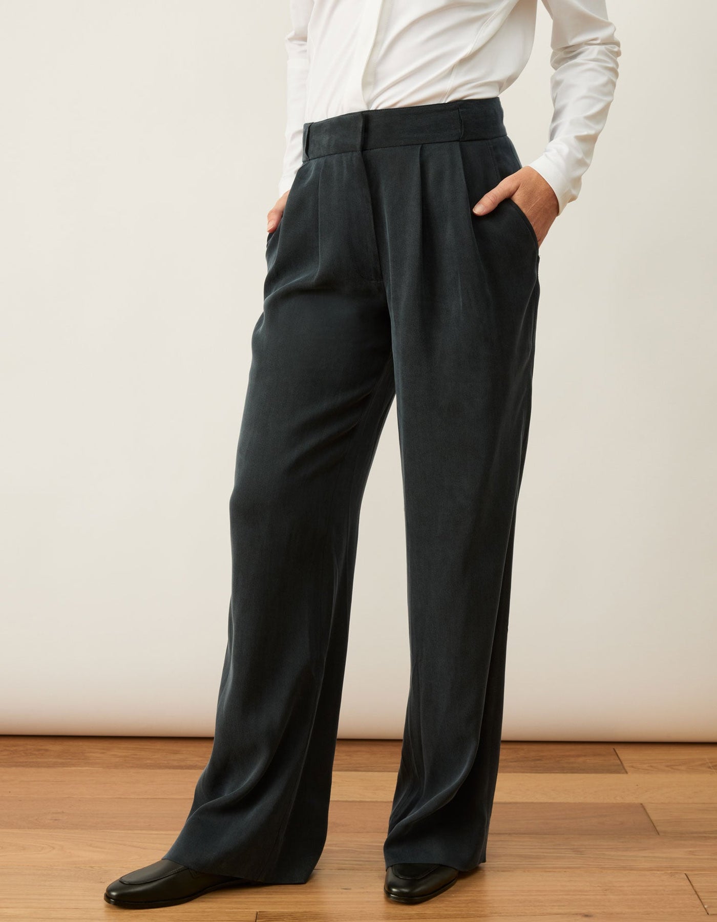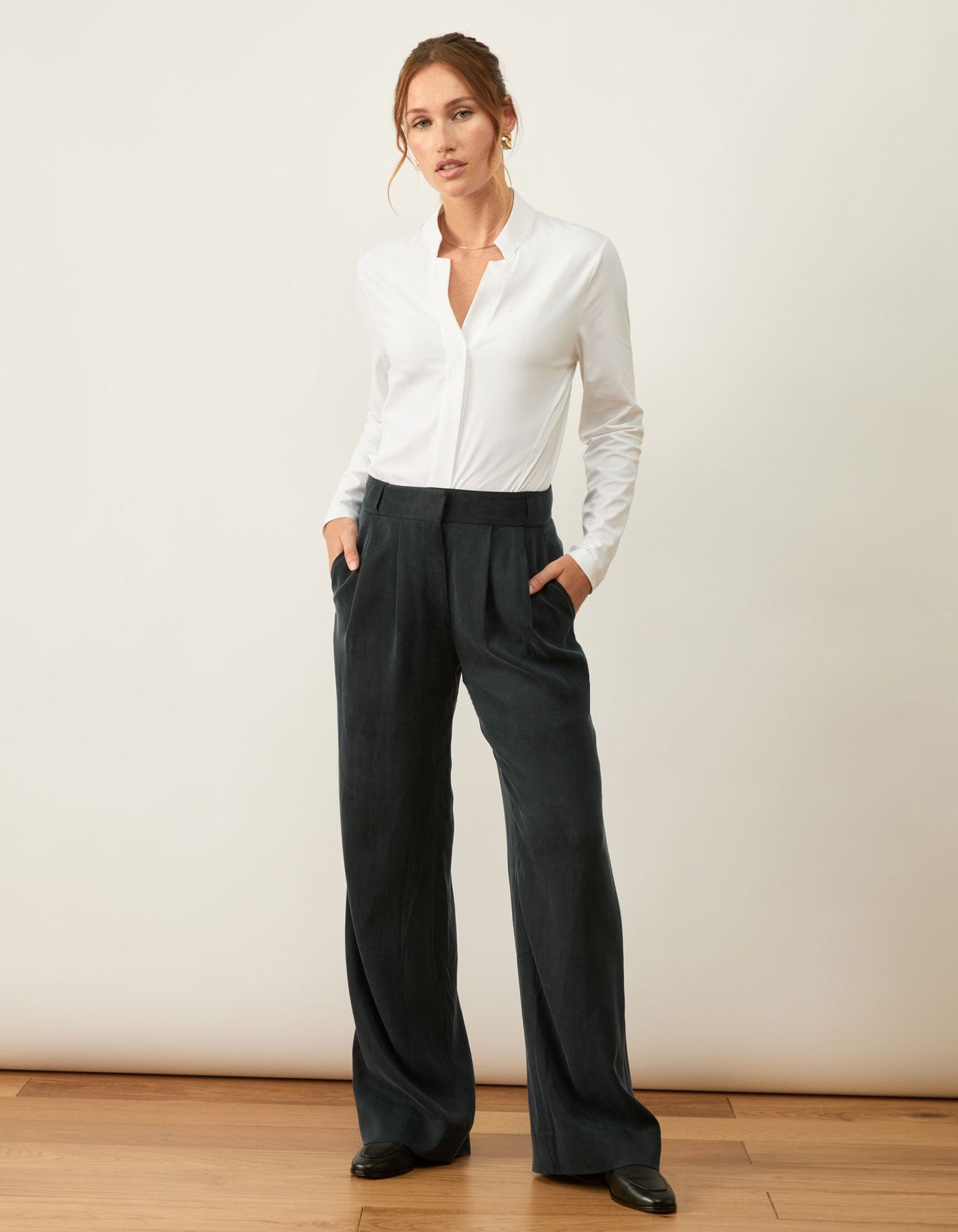 Just for you. These full length, straight leg trousers feature a feminine, flattering drape, pockets, and a polished pleat for smart sophistication.