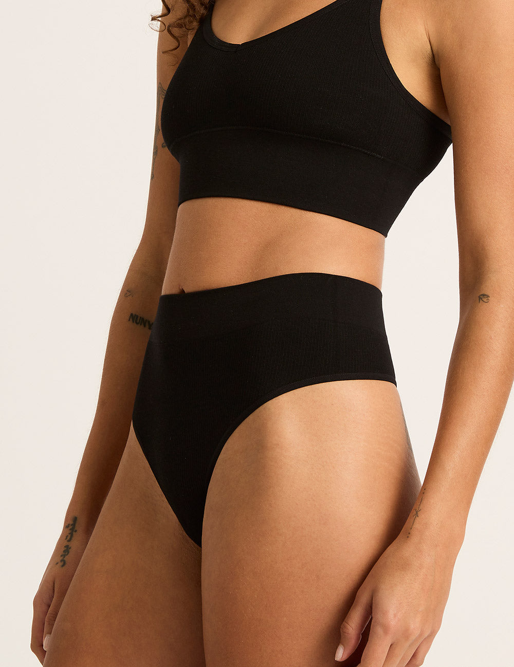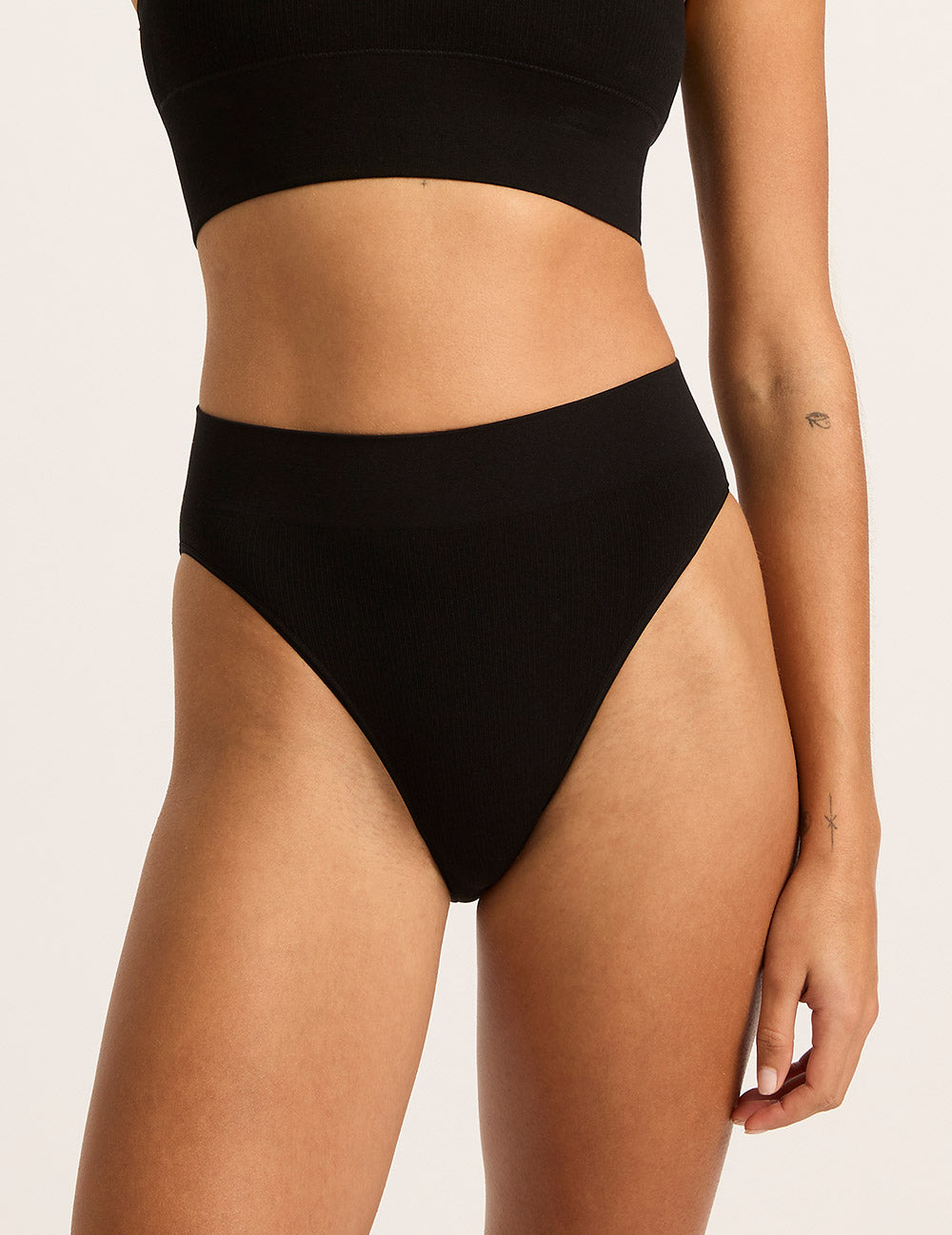 • High-waist, cheeky fit for a sleek, body-hugging effect.