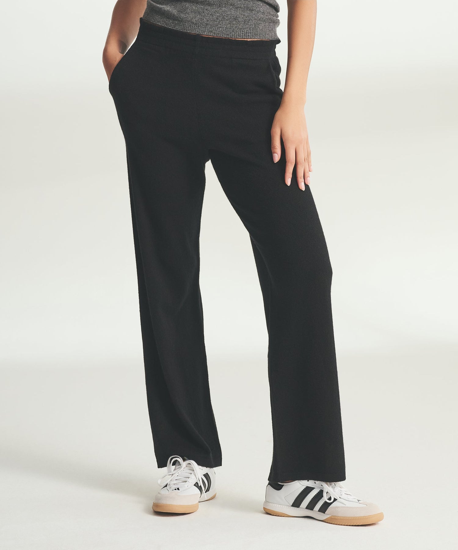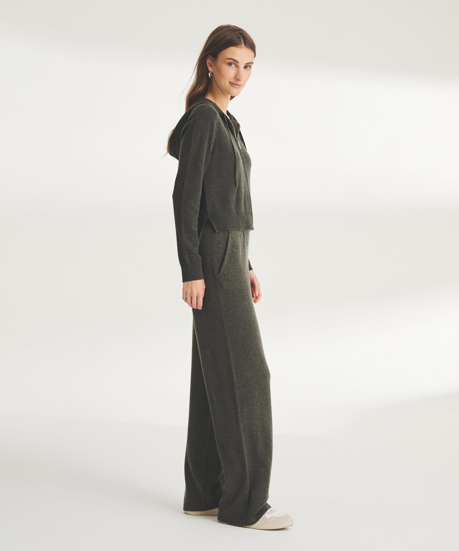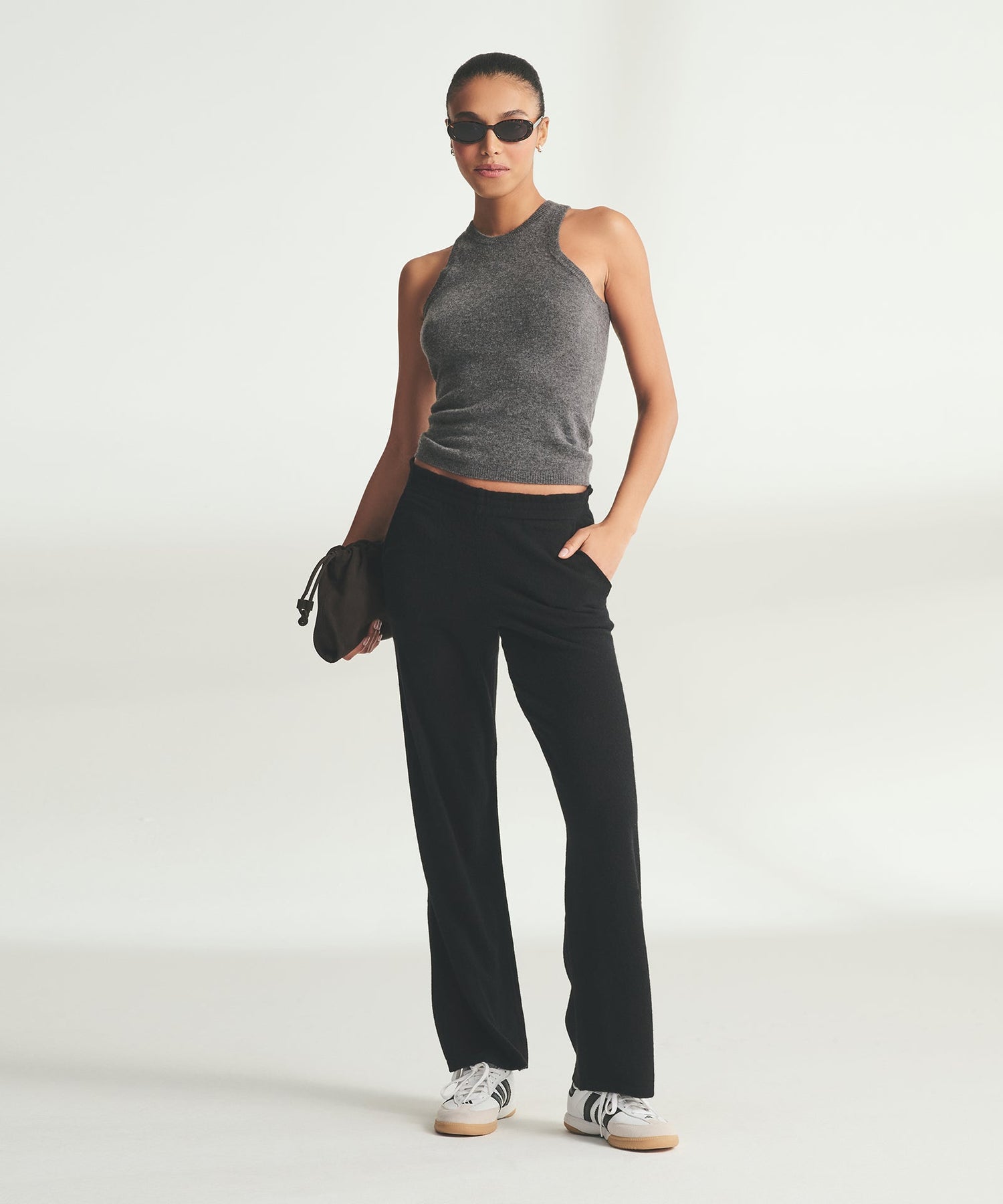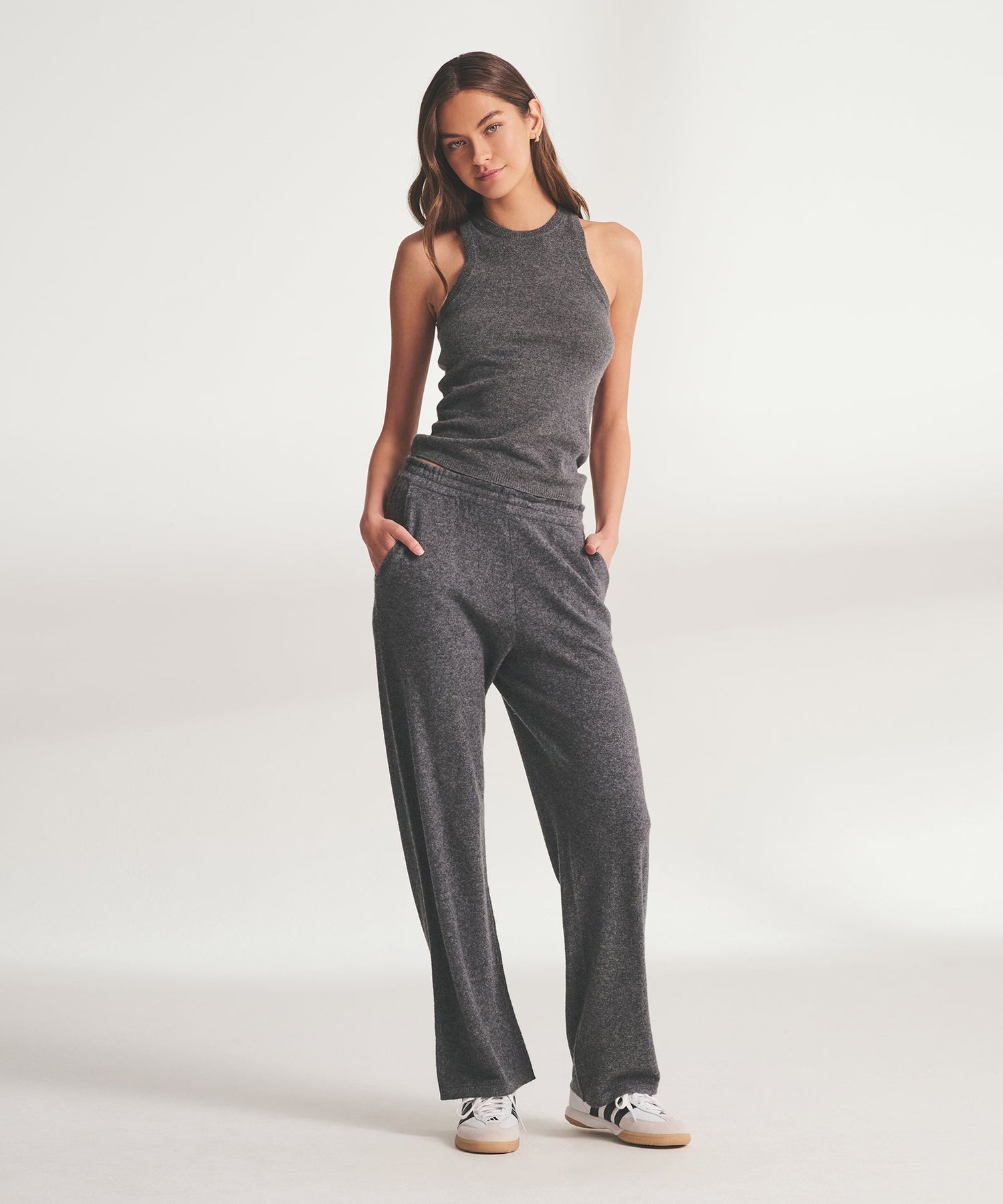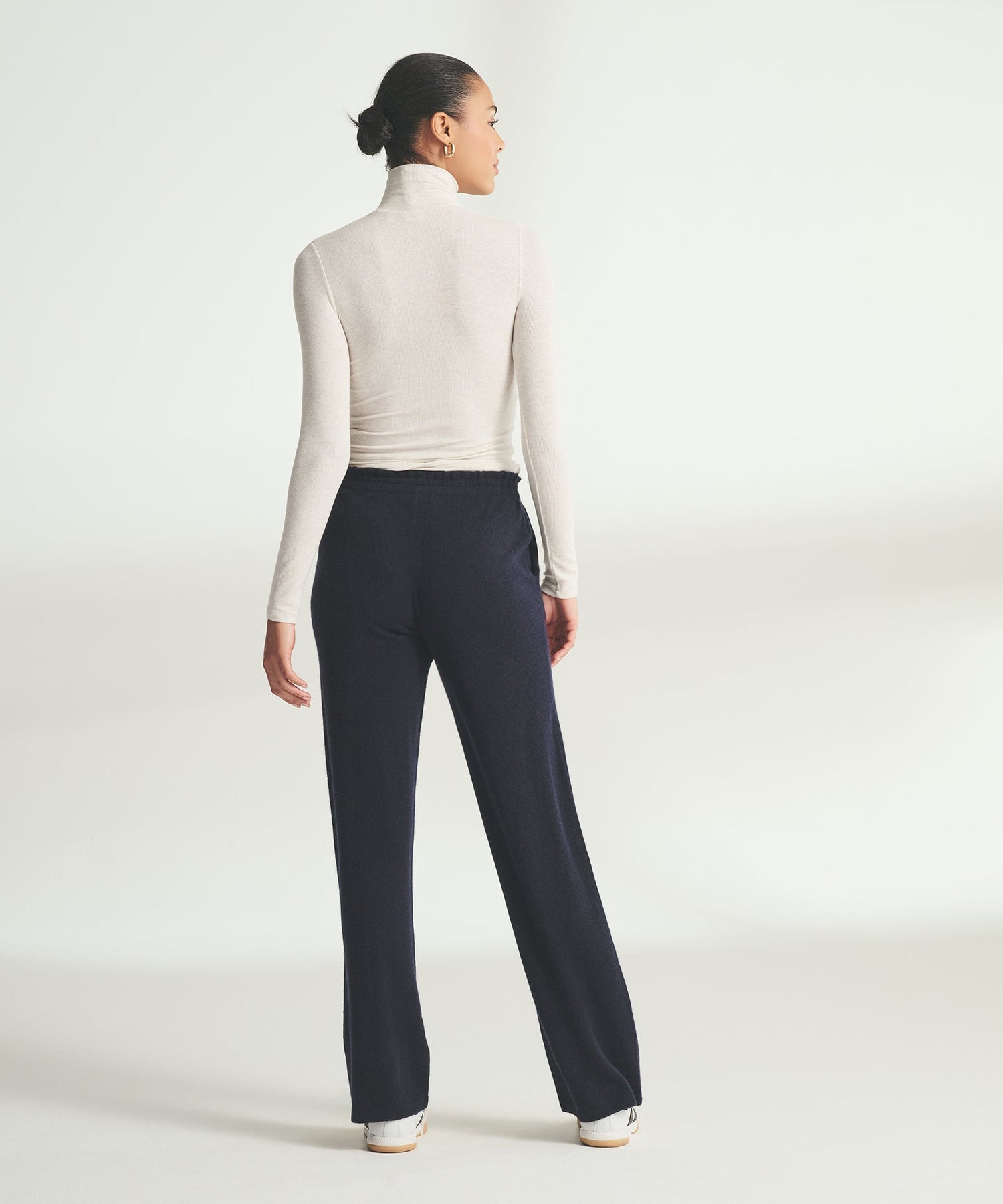 The Cashmere Wide Leg Pant is a chic, easygoing pant with a relaxed classic fit and full length inseam. It features a high rise, elastic paper-bag waistband, and side pockets. Crafted from 100% premium, sustainable cashmere.