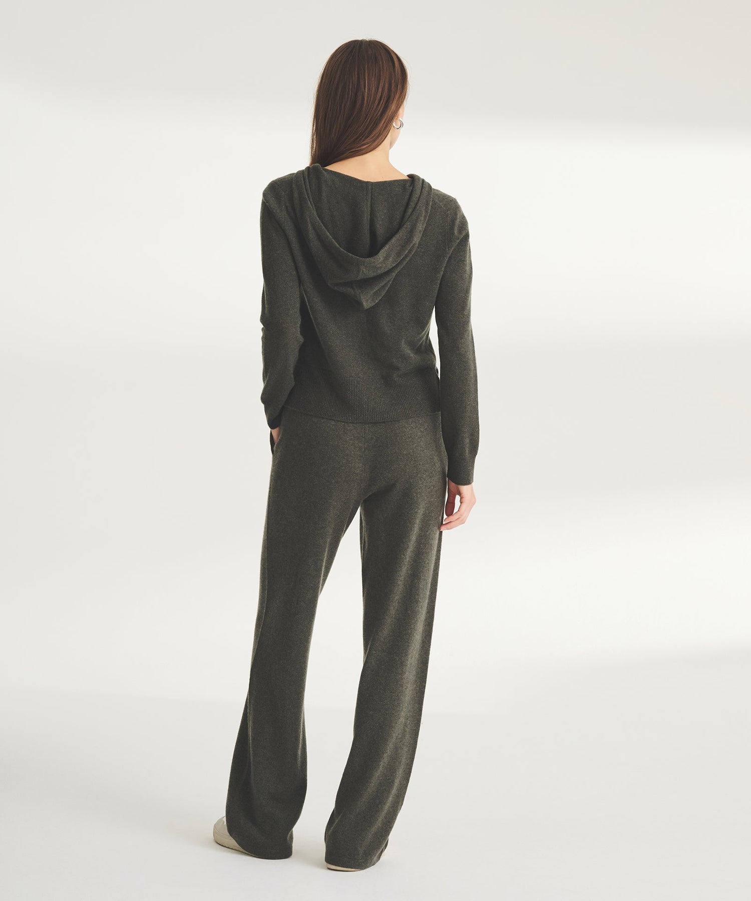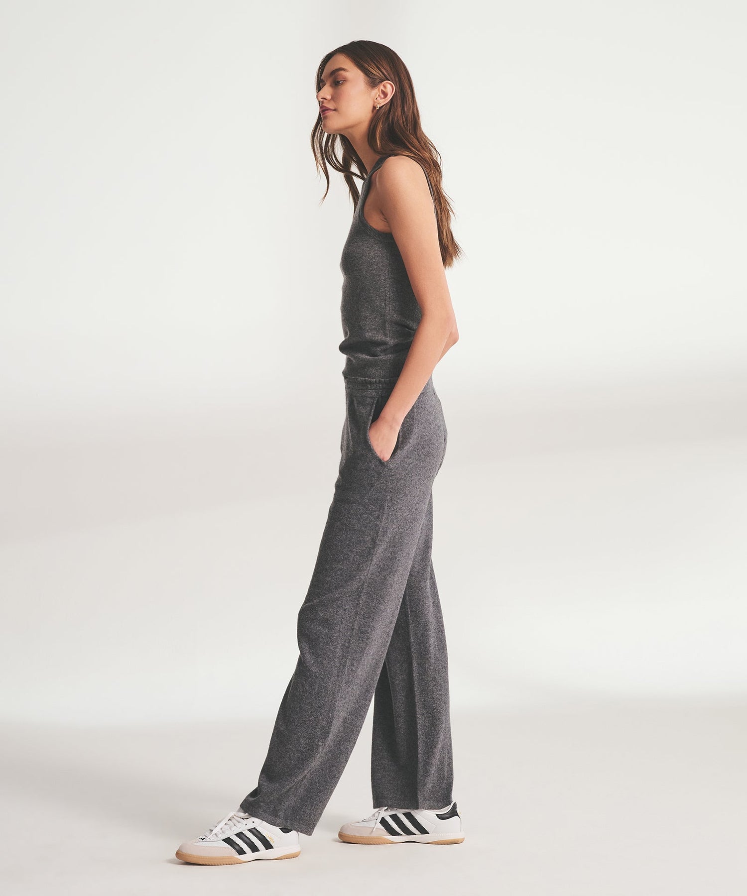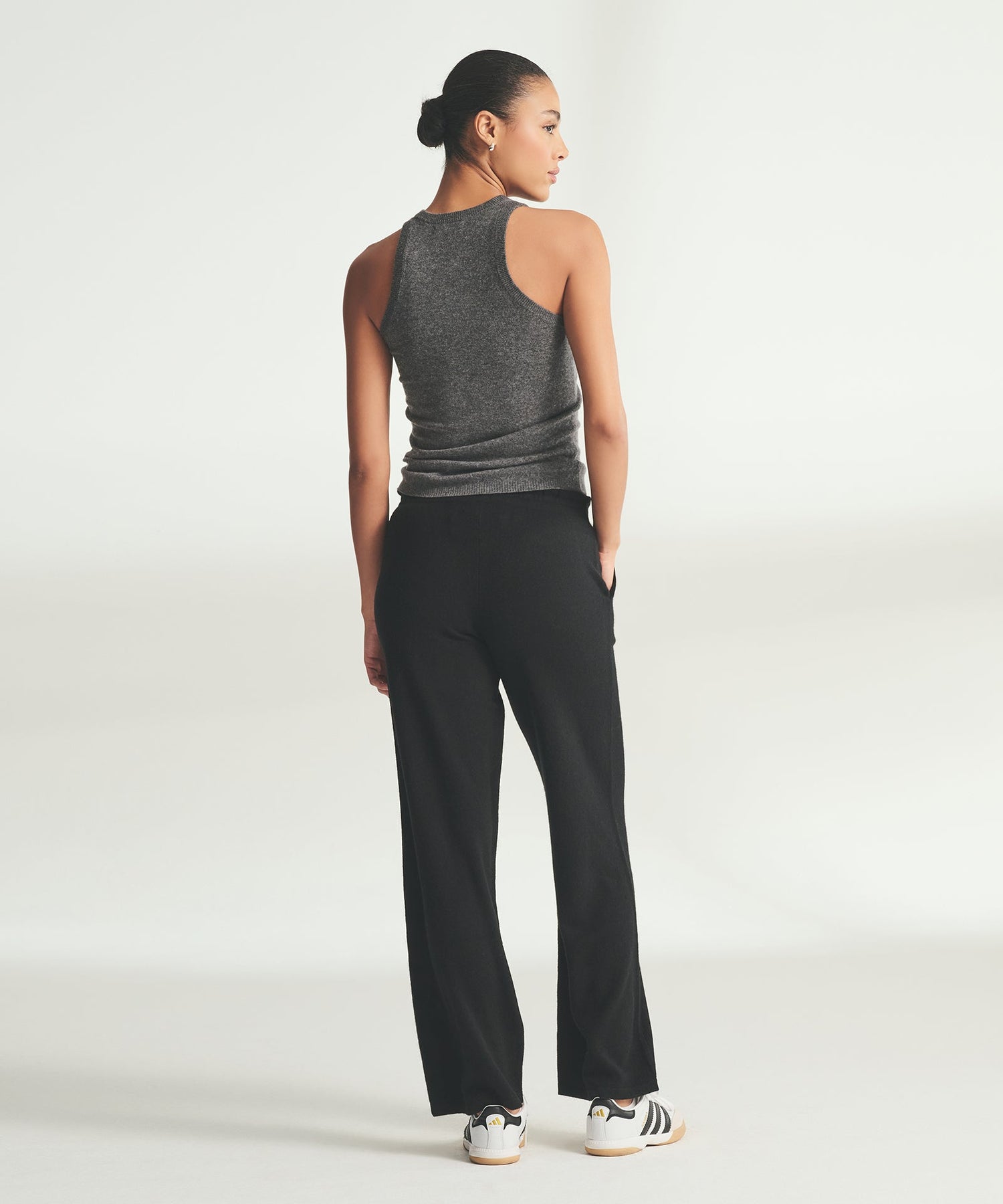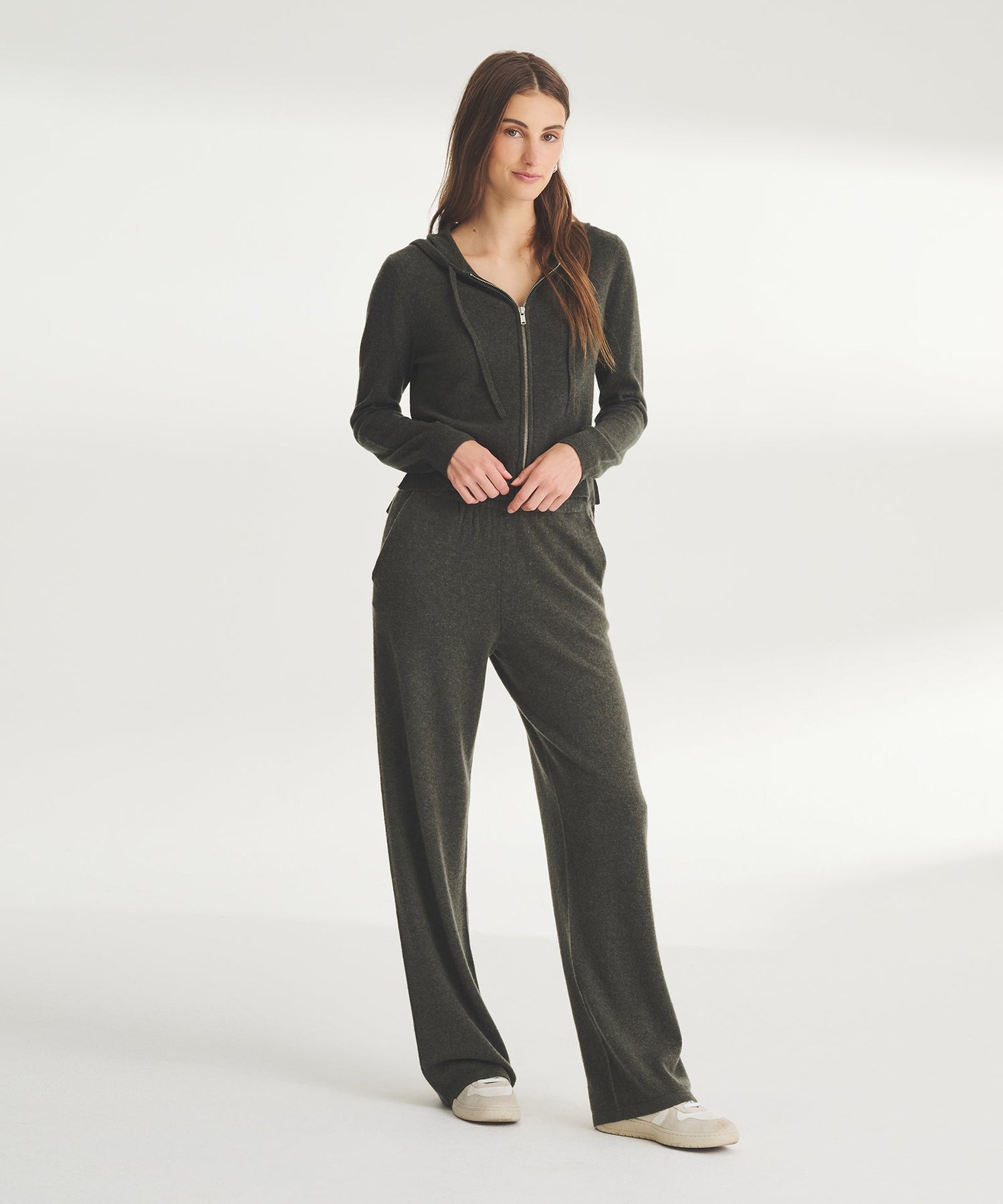 The Cashmere Wide Leg Pant is a chic, easygoing pant with a relaxed classic fit and full length inseam. It features a high rise, elastic paper-bag waistband, and side pockets. Crafted from 100% premium, sustainable cashmere.