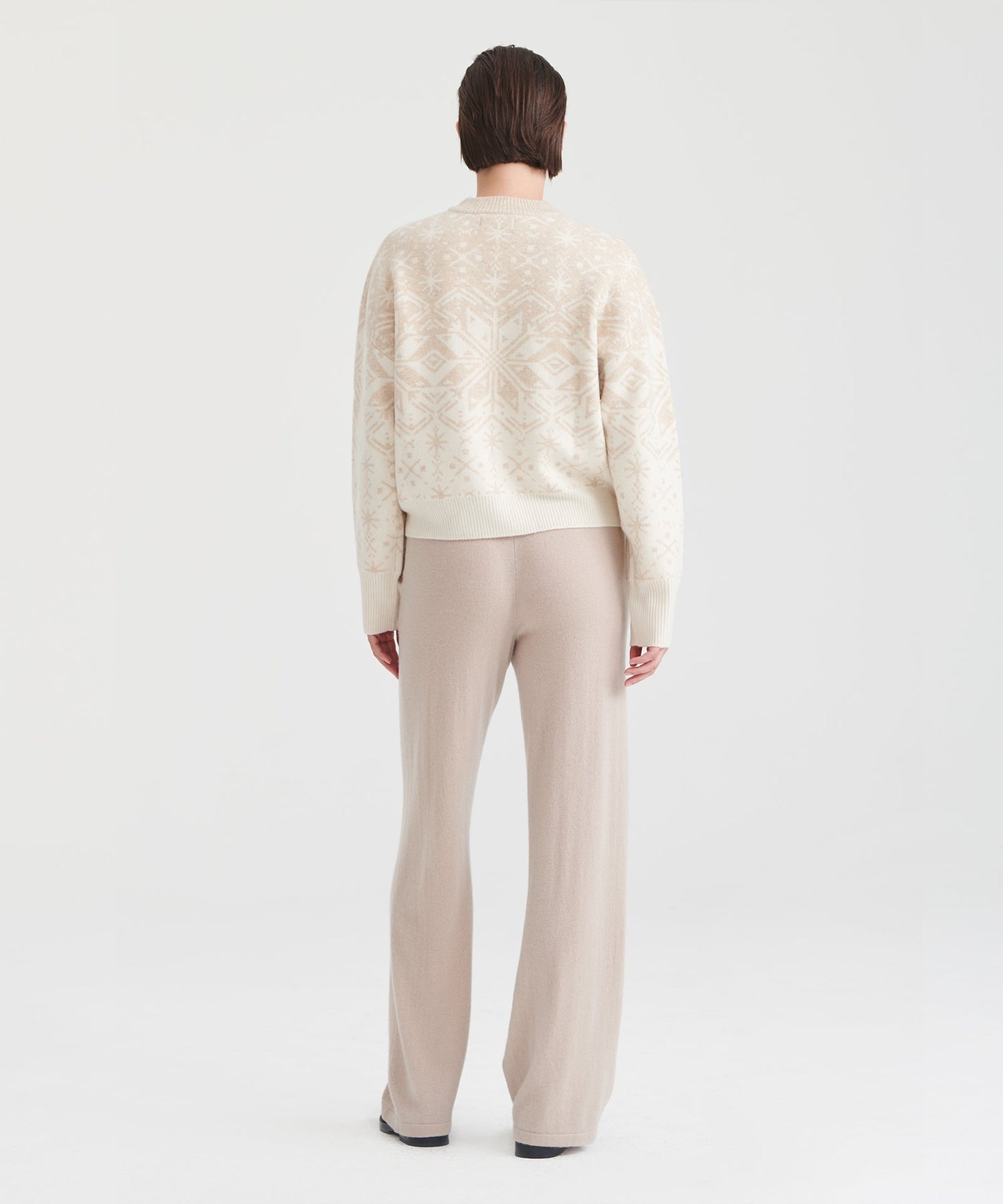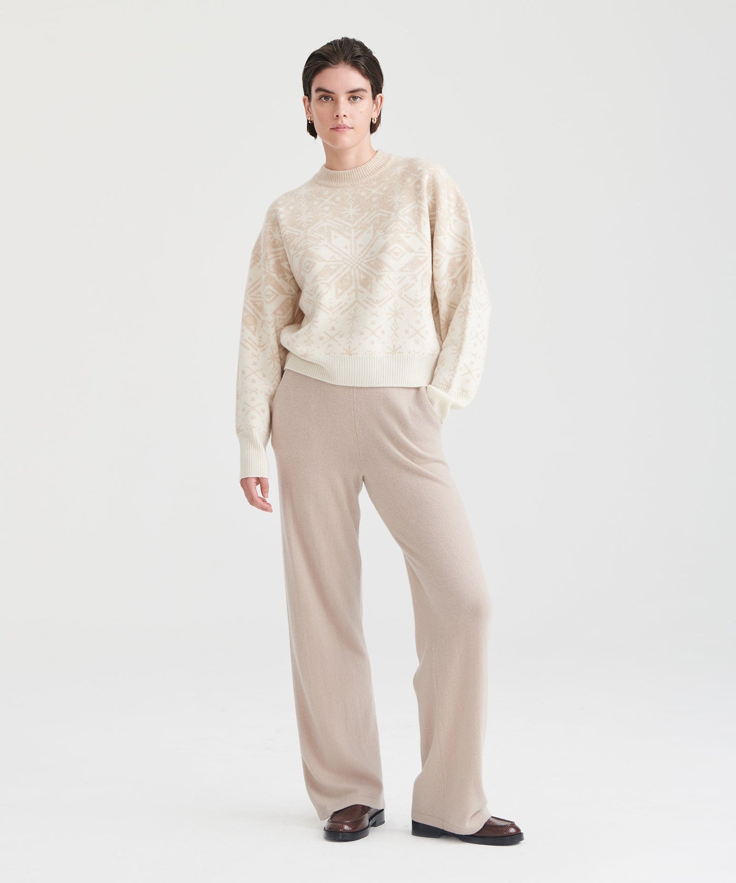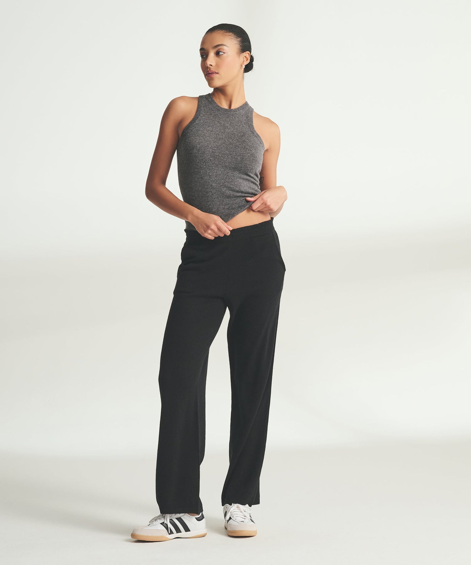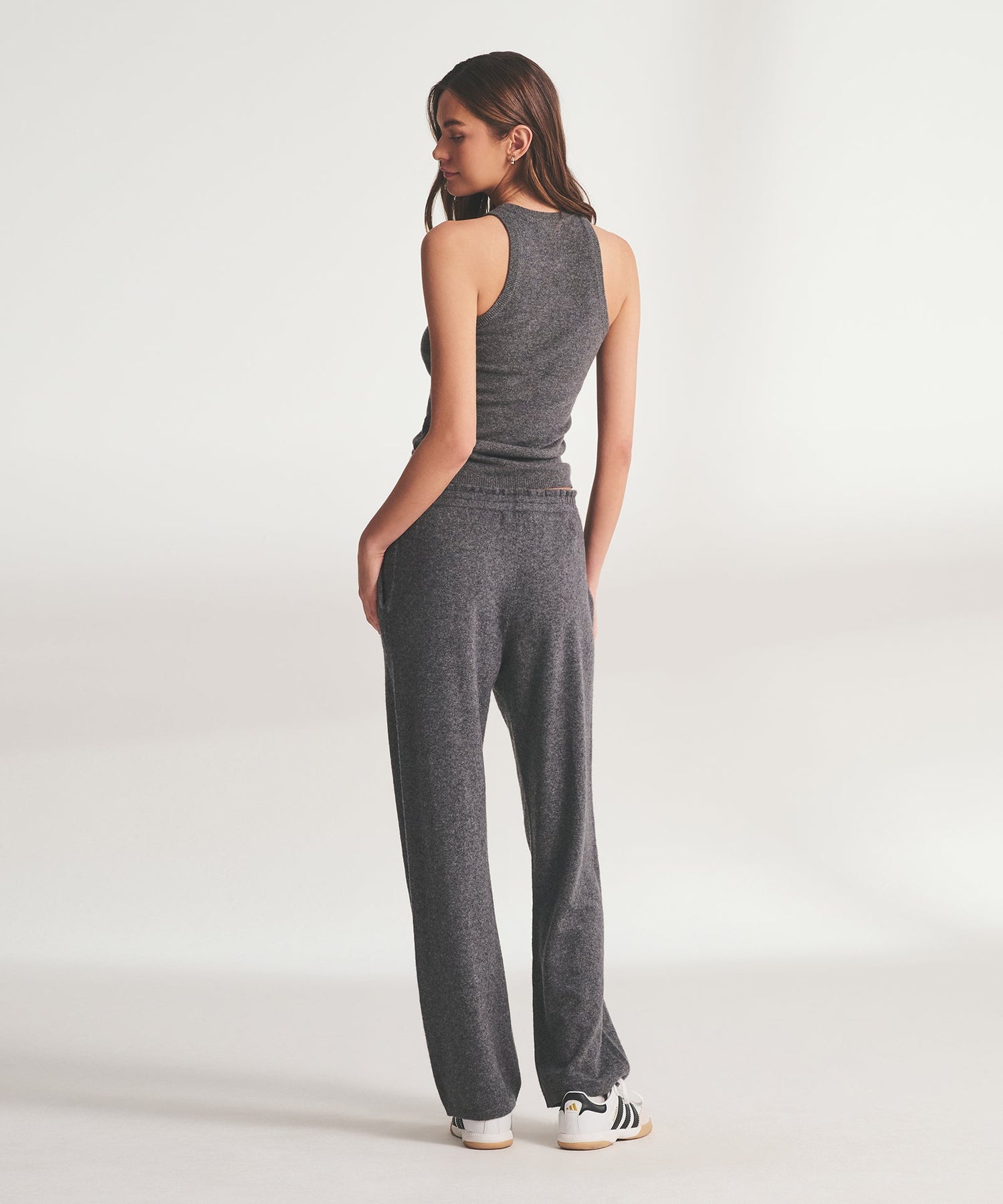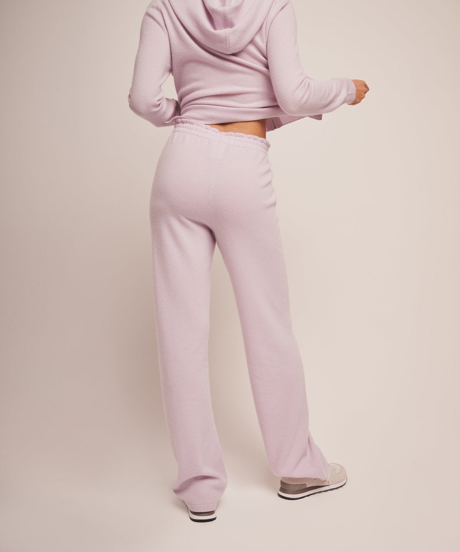 The Cashmere Wide Leg Pant is a chic, easygoing pant with a relaxed classic fit and full length inseam. It features a high rise, elastic paper-bag waistband, and side pockets. Crafted from 100% premium, sustainable cashmere.