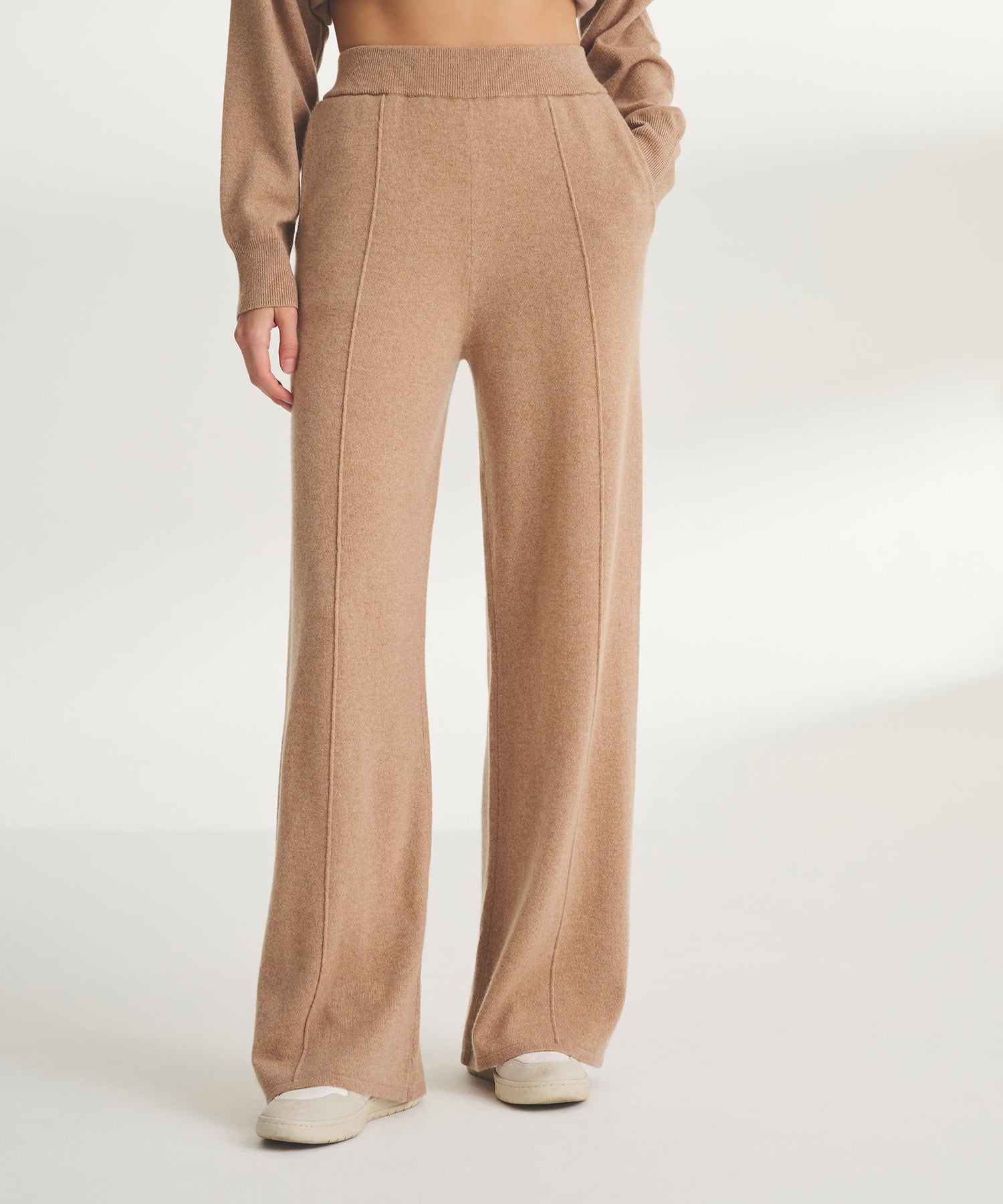 Low maintenance. The Washable Cashmere Wide Leg Pant is an easy-care knit with a relaxed classic fit. It features a pull-on waistband, ribbed details, center seams, and full-length inseam. Crafted from 100% cashmere that’s specially knit to be machine washable on a cold, gentle cycle.
