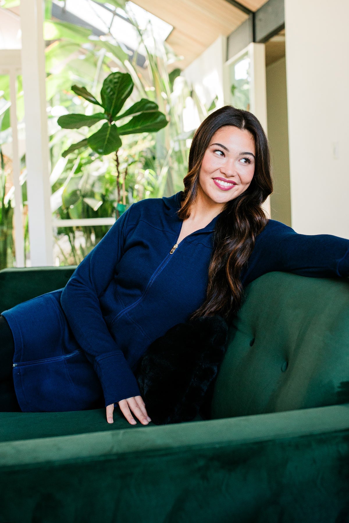 The Jemma Jacket blends the comfort of a hoodie with full coverage for your hips and midsection. The fitted silhouette hugs all your beautiful curves. An elongated zipper ends mid-thigh. Long sleeves, thumb holes, standard hood with drawstrings, and slanted front pockets.