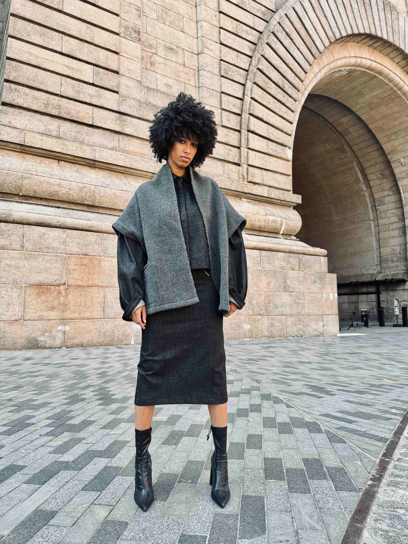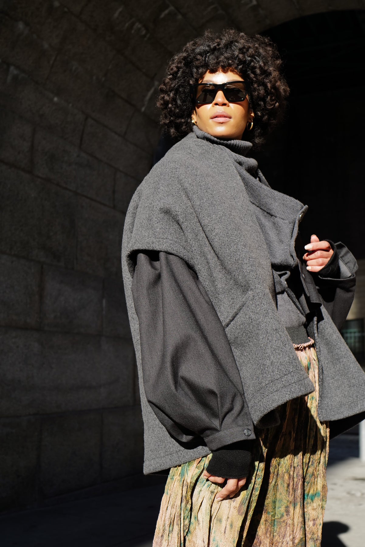 Gabi's versatility and luxurious wool/cashmere wins extra points, not to mention its reversibility, offering you a new proportion, silhouette and infinite styling options.