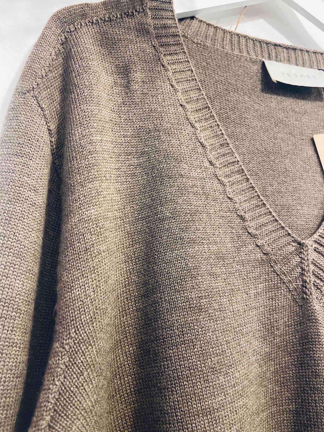 - V neck fully fashioned knit with links stitch detaling