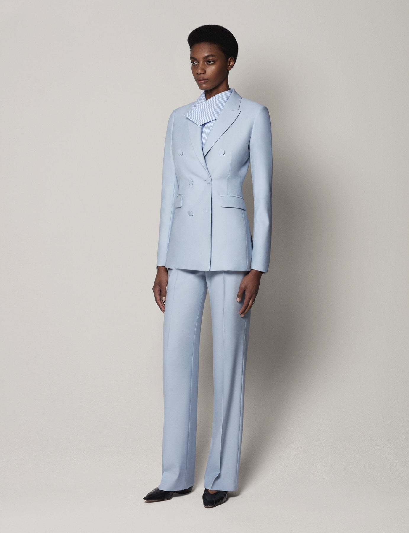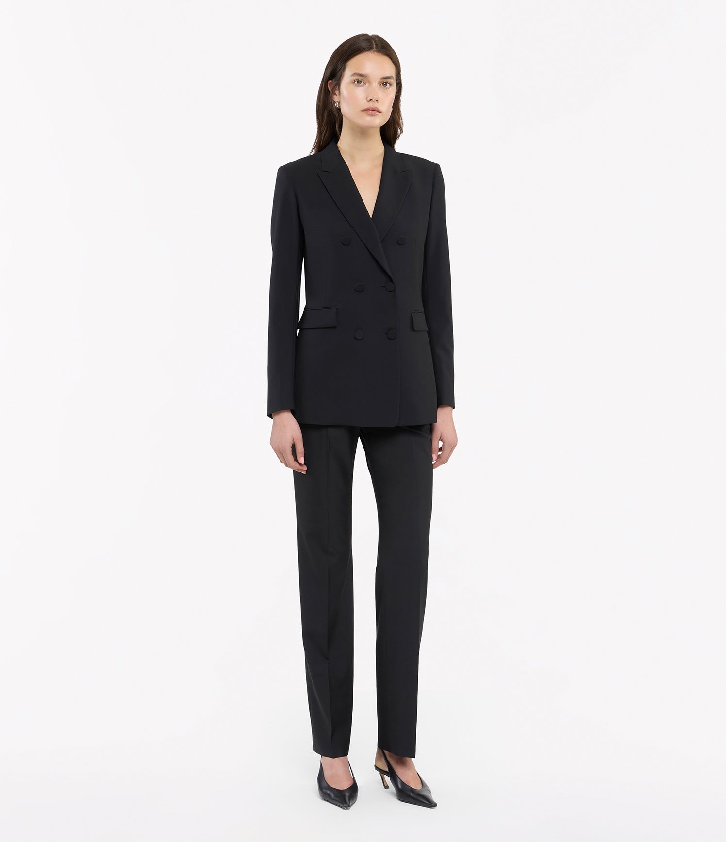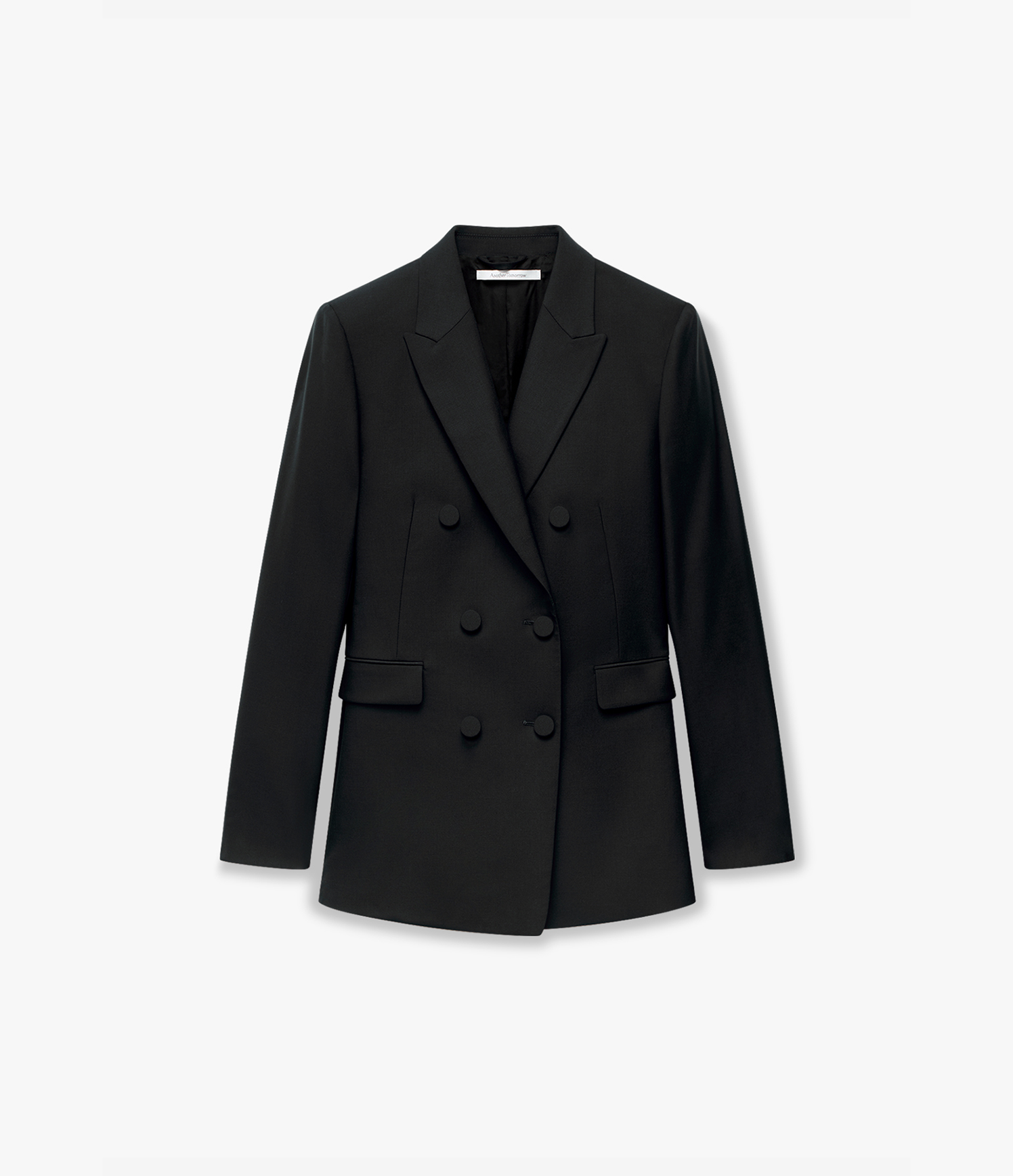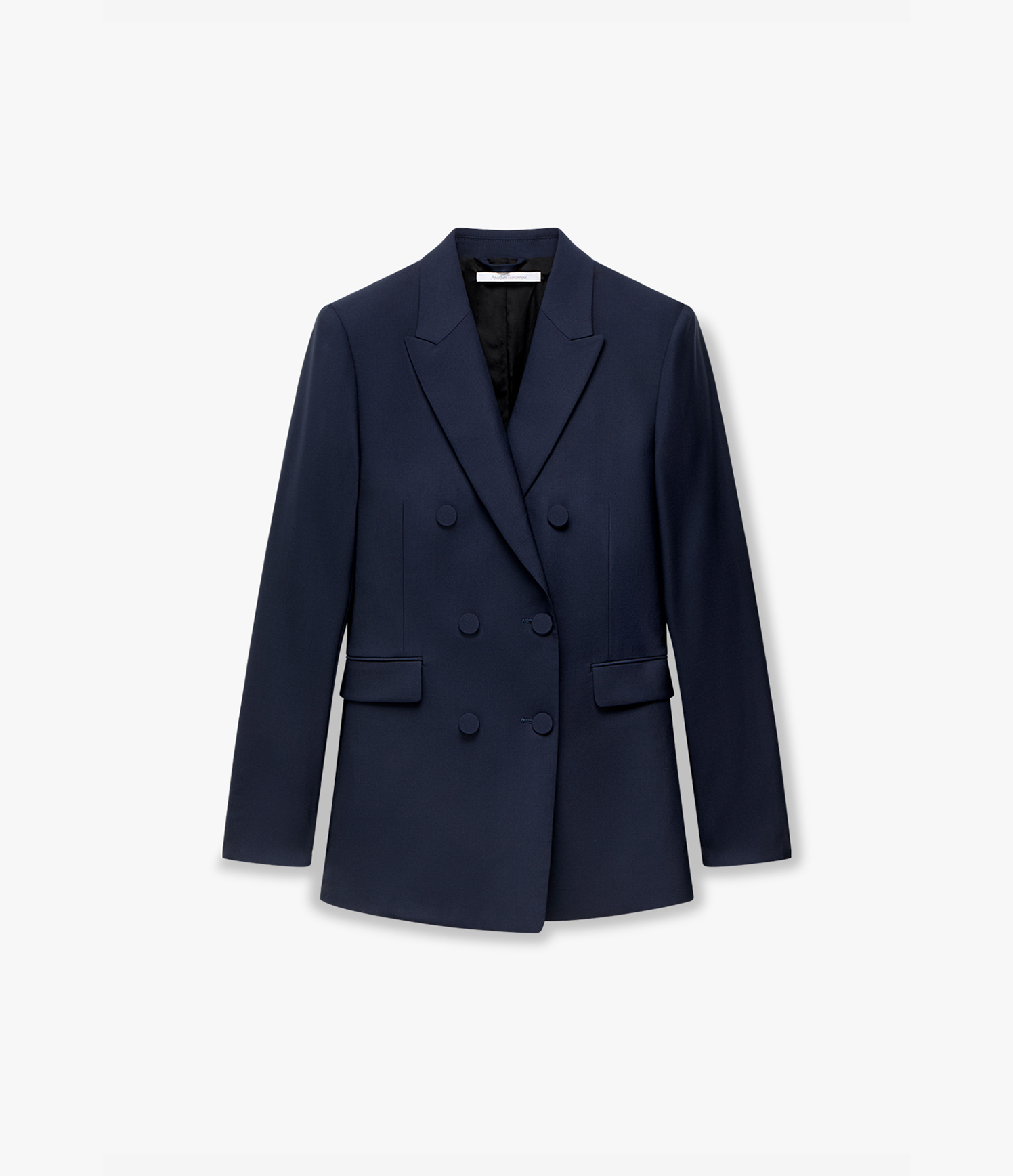 Our sharply tailored double-breasted jacket features flap-front pockets and self-covered buttons. Crafted in our custom-developed, seasonless, farm-traceable merino wool. This style runs large; we recommend sizing down.