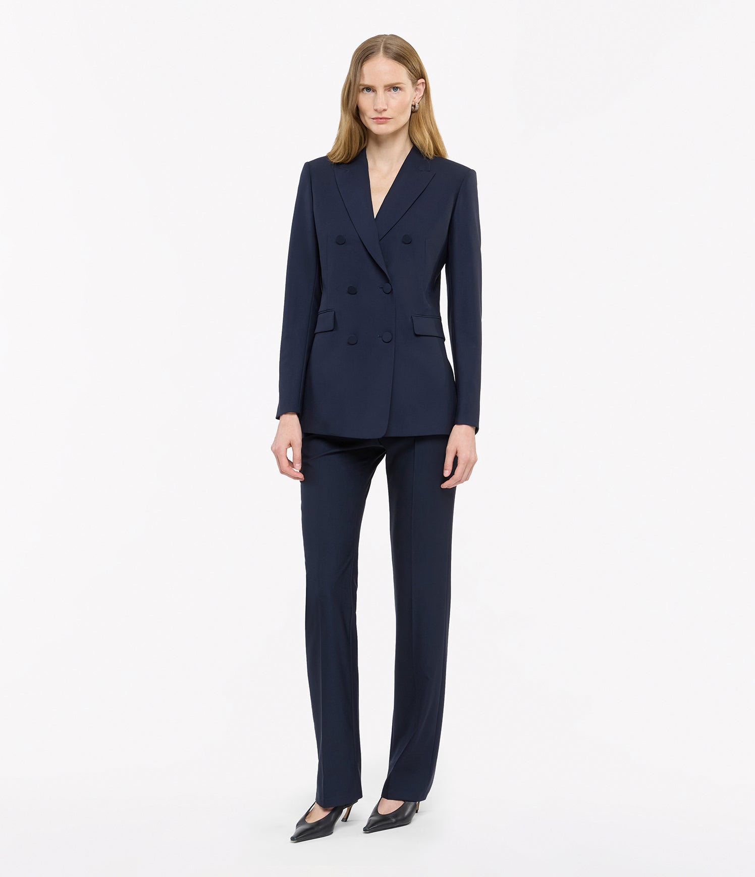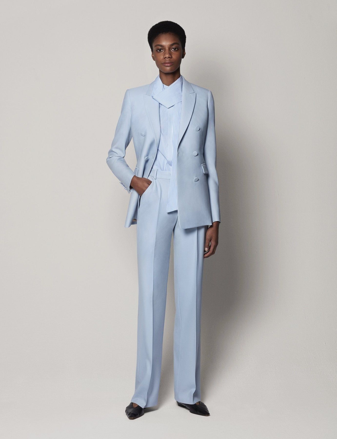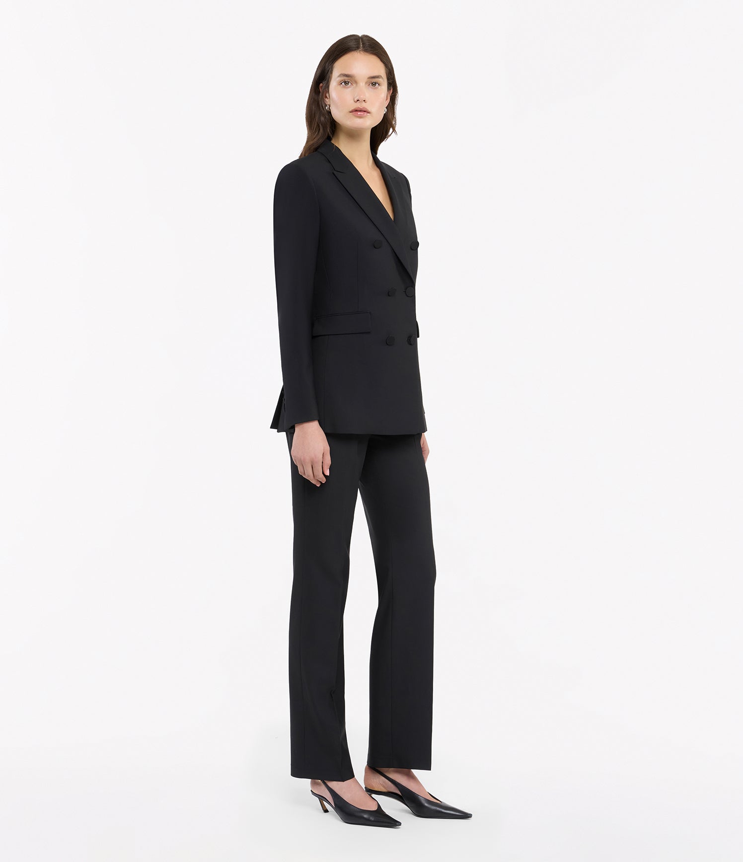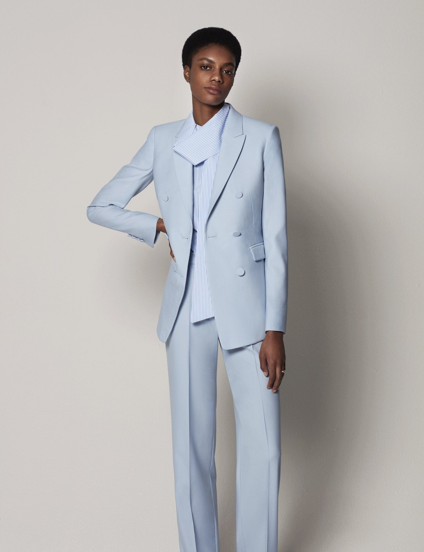Our sharply tailored double-breasted jacket features flap-front pockets and self-covered buttons. Crafted in our custom-developed, seasonless, farm-traceable merino wool. This style runs large; we recommend sizing down.