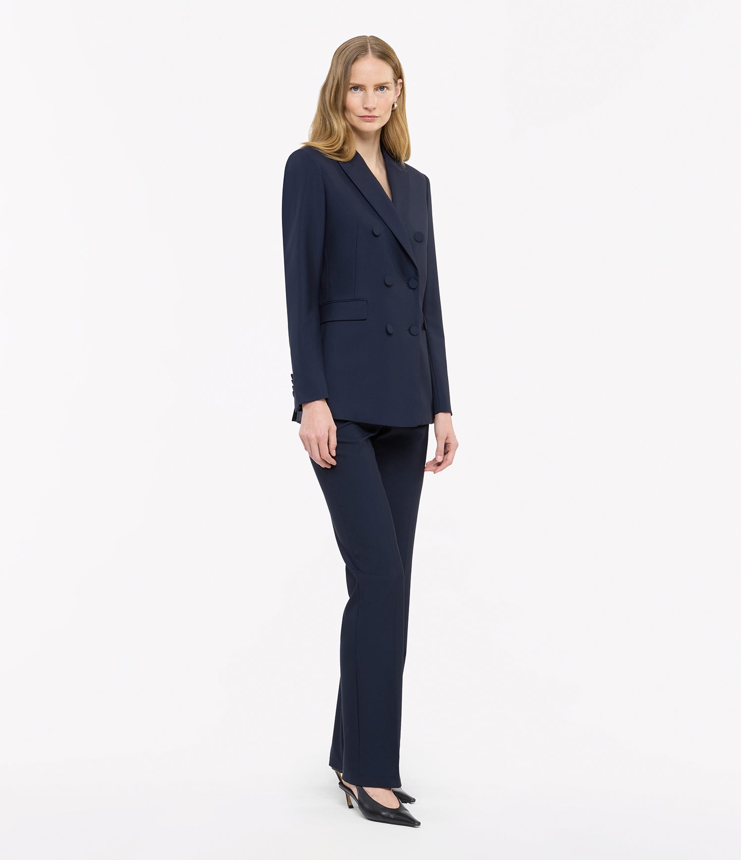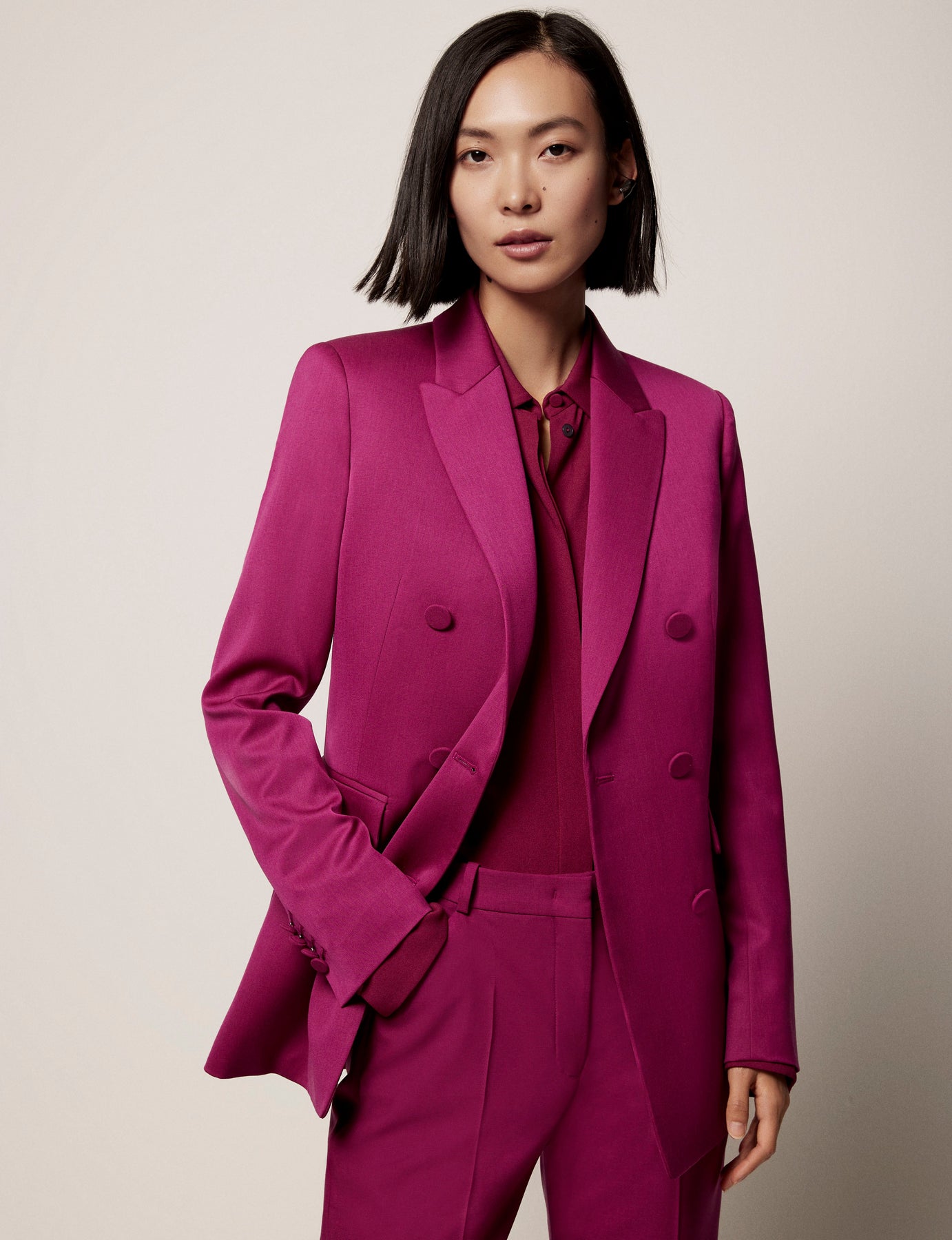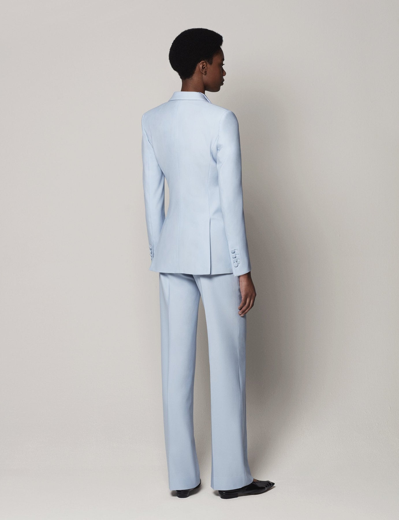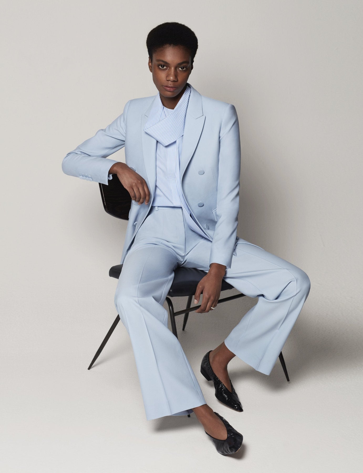 Our sharply tailored double-breasted jacket features flap-front pockets and self-covered buttons. Crafted in our custom-developed, seasonless, farm-traceable merino wool. This style runs large; we recommend sizing down.