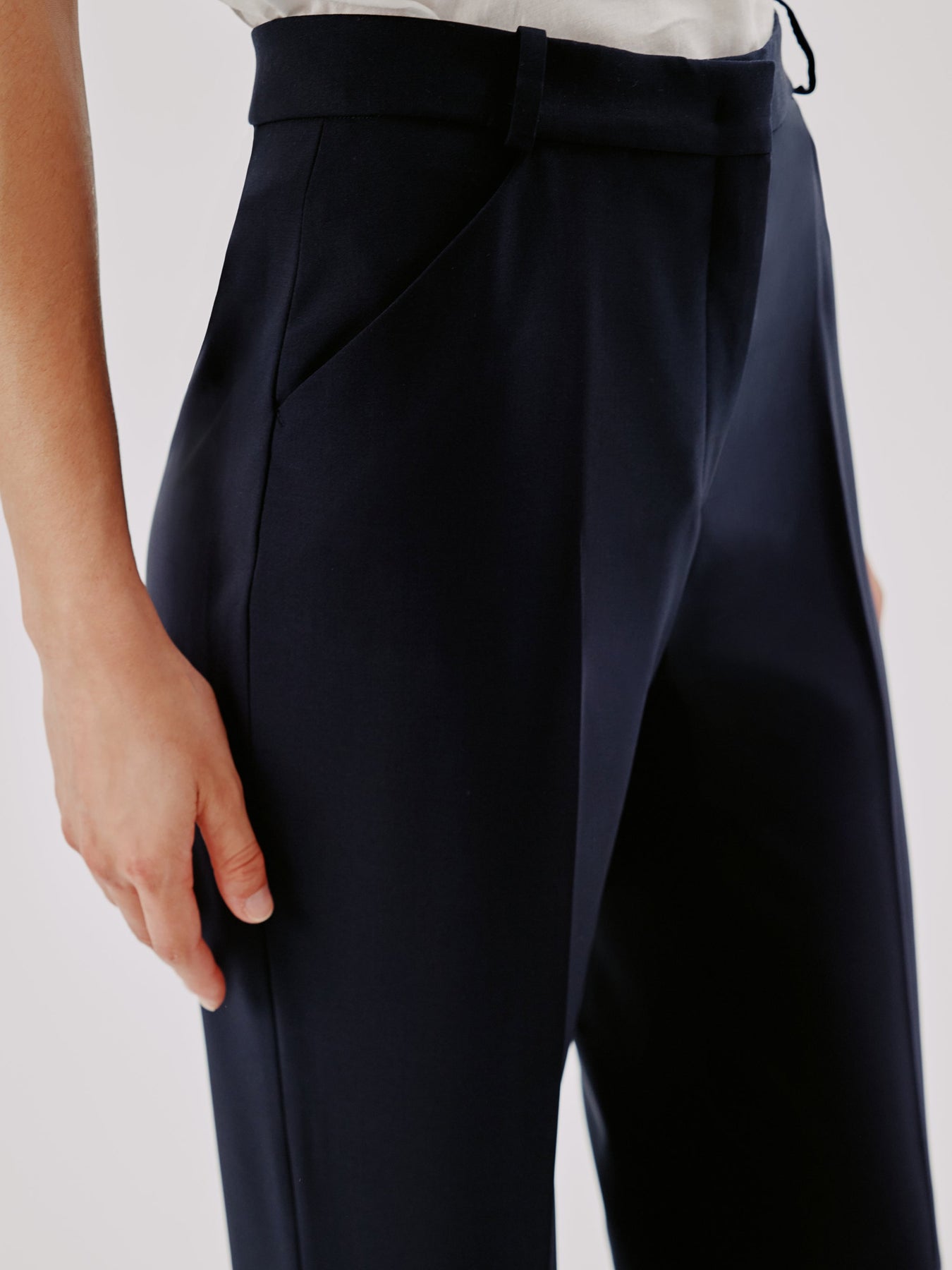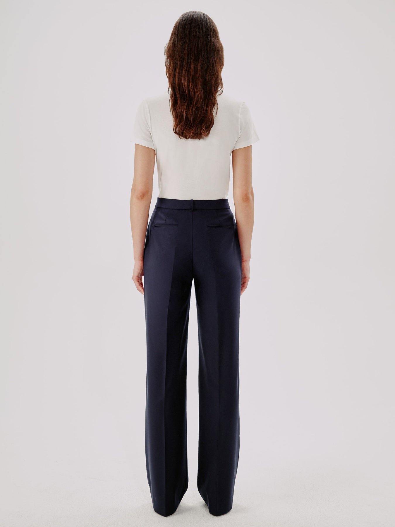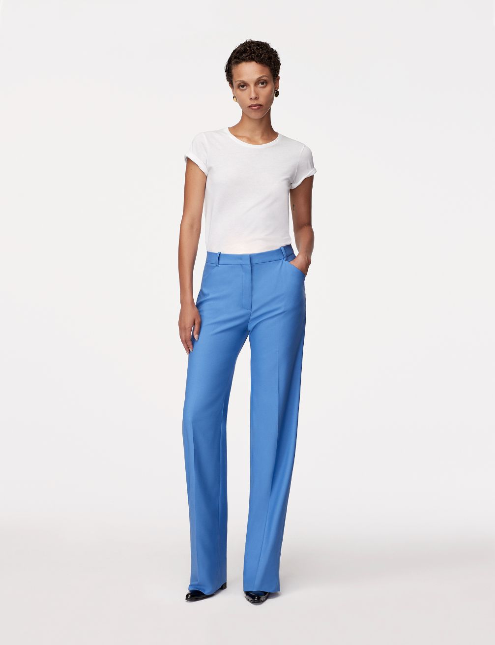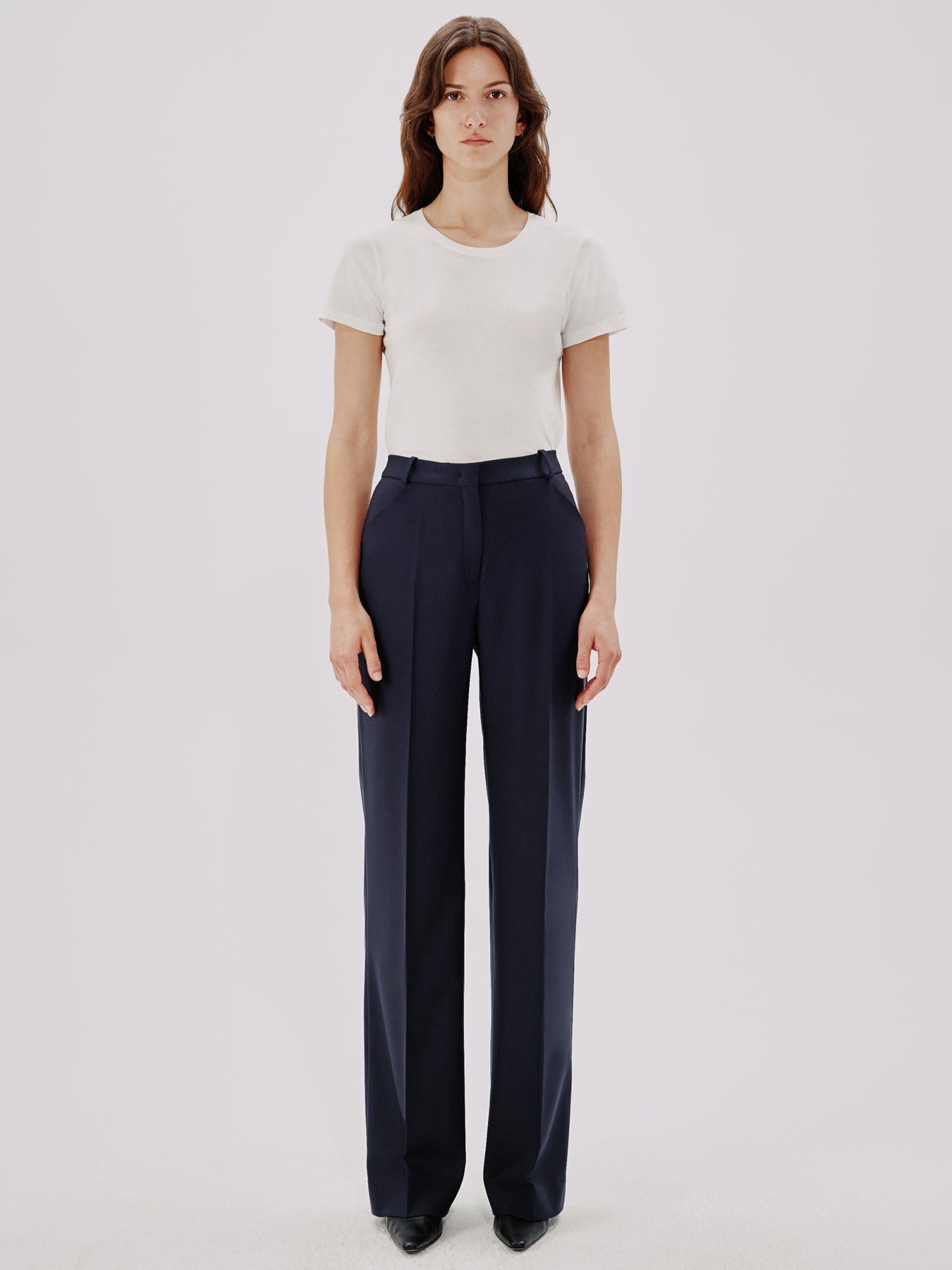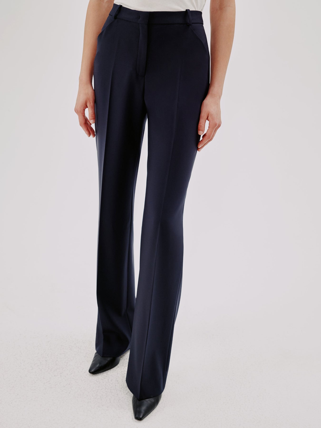 Crafted in seasonless, farm-traceable, custom-made merino wool, this gently-flared trouser plays with proportion. Featuring a slim fit through the hip and thigh and a delicate kick from above the knee, we recommend pairing with the Relaxed Tank.