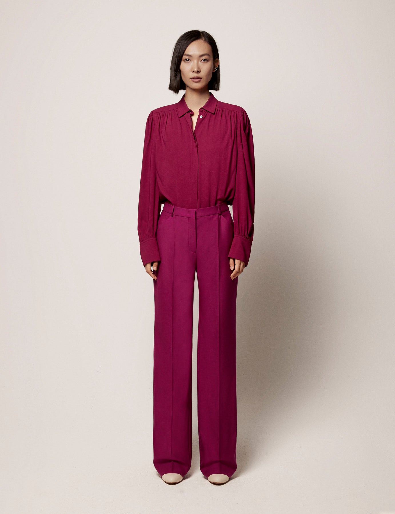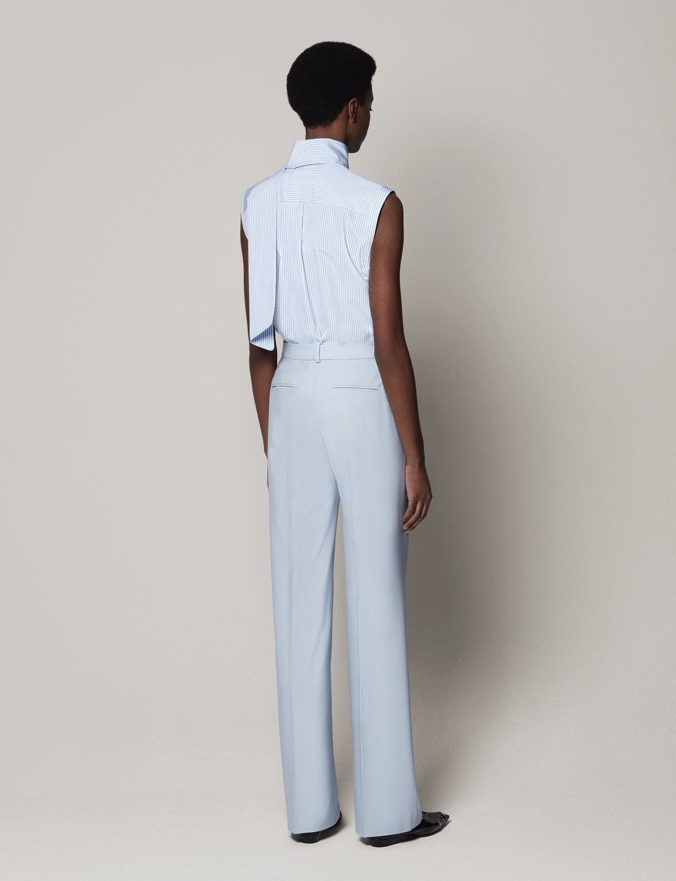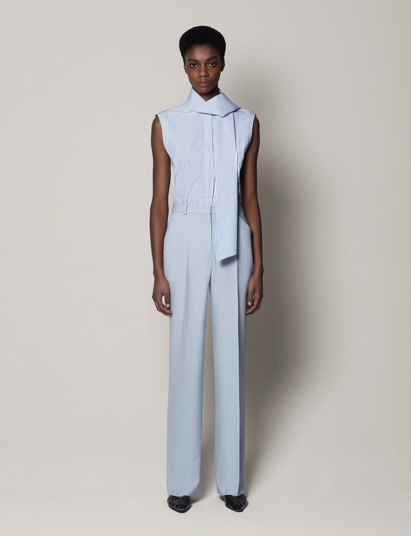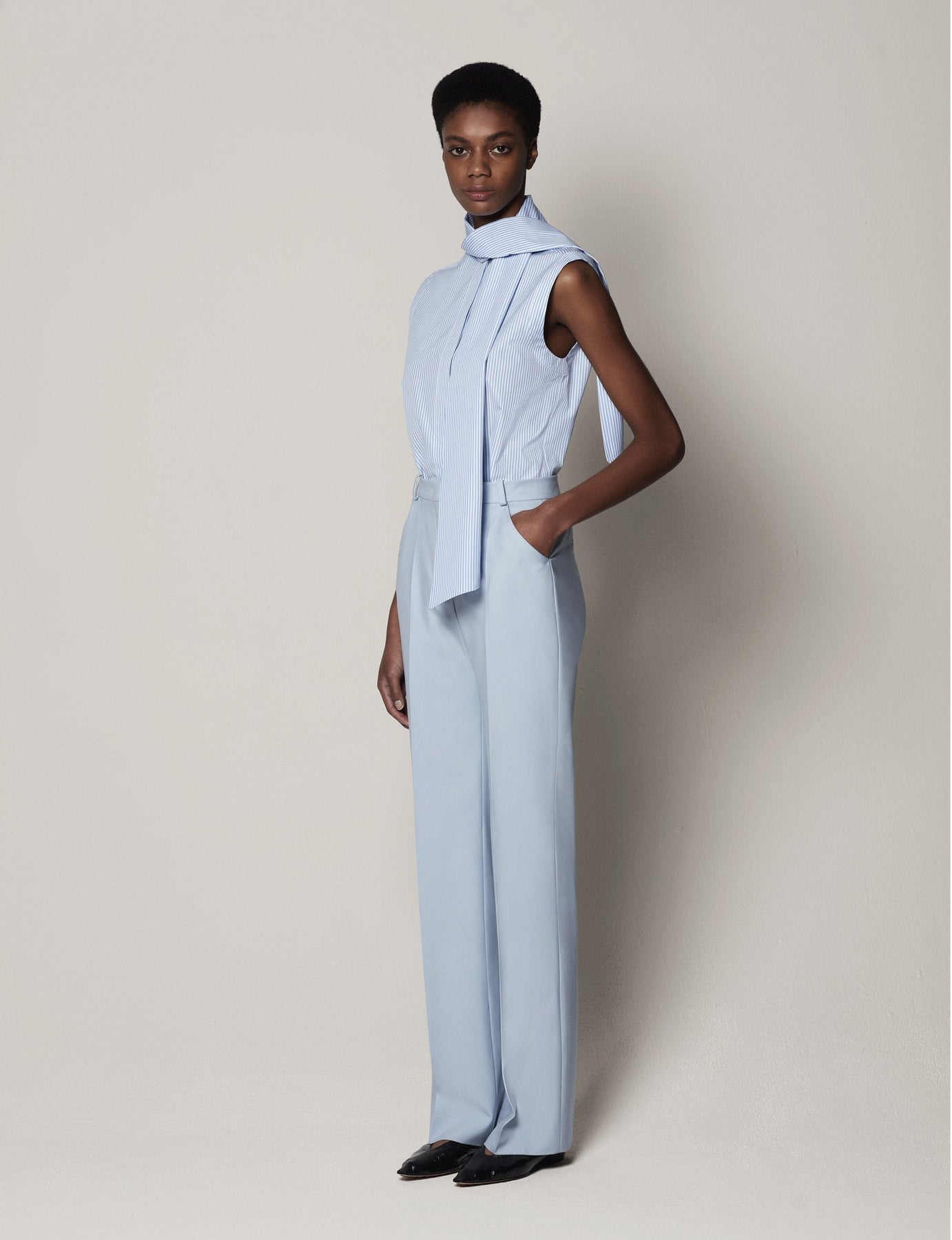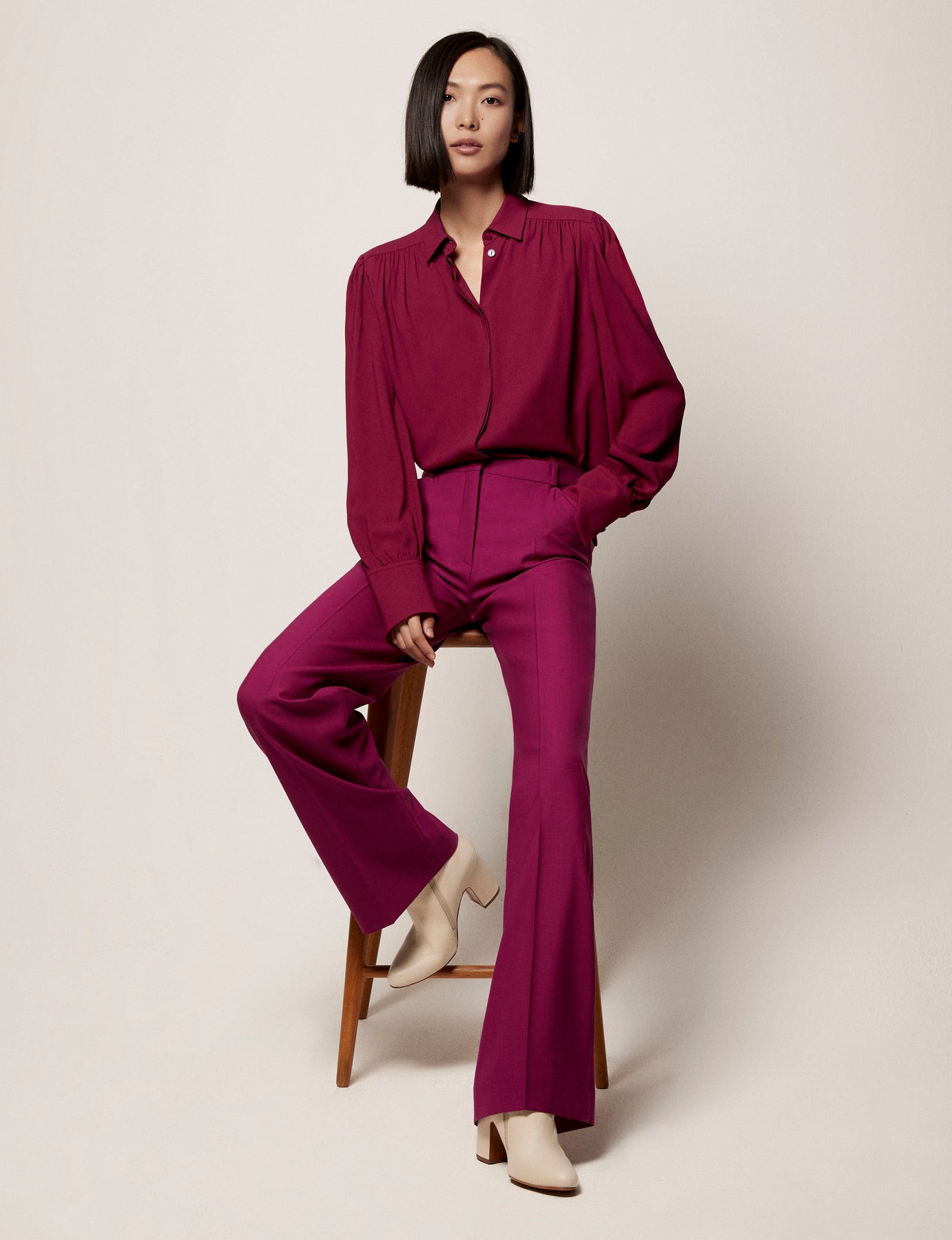 Crafted in seasonless, farm-traceable, custom-made merino wool, this gently-flared trouser plays with proportion. Featuring a slim fit through the hip and thigh and a delicate kick from above the knee, we recommend pairing with the Relaxed Tank.