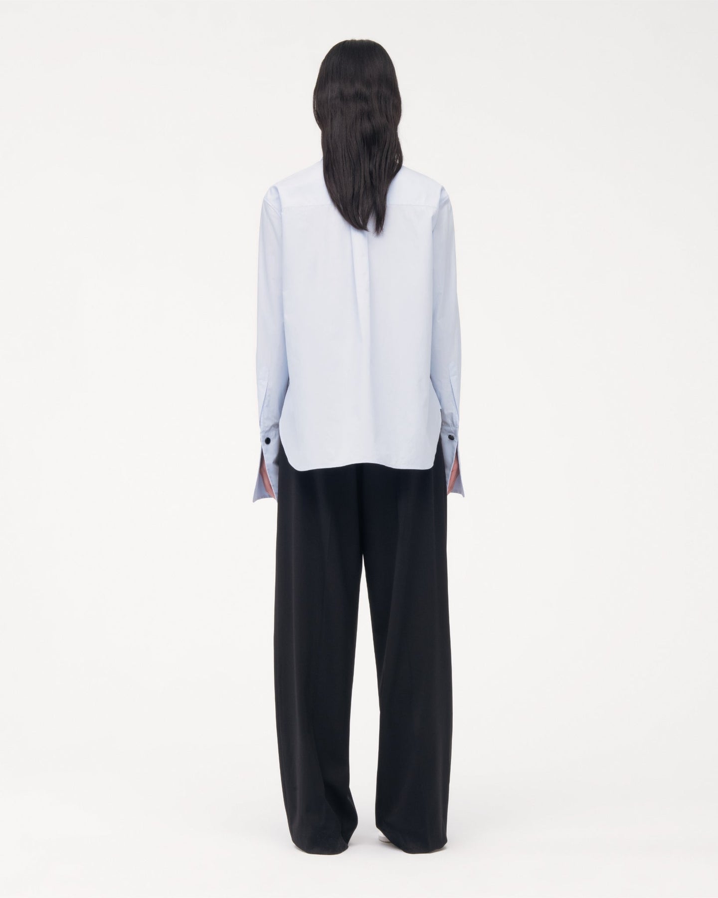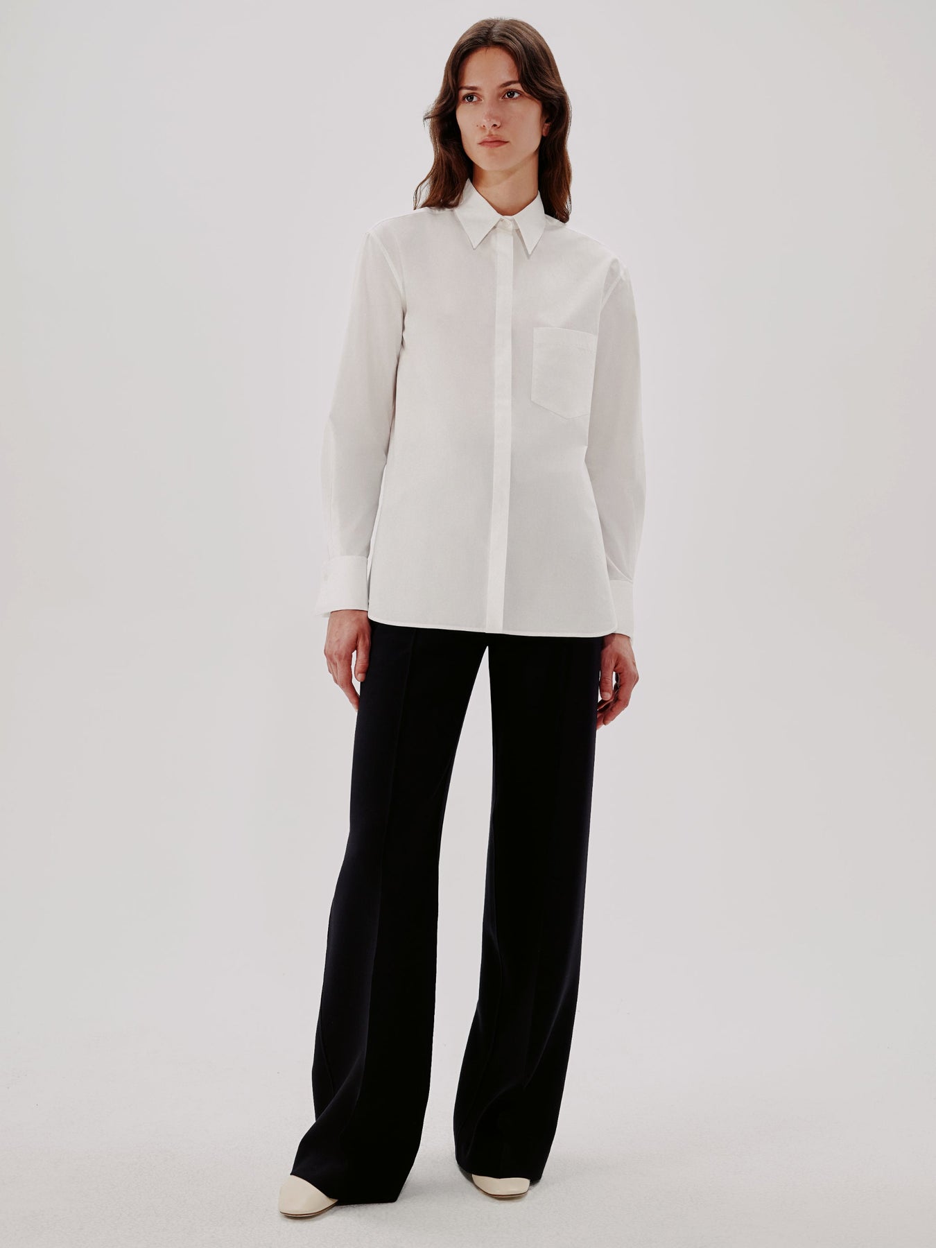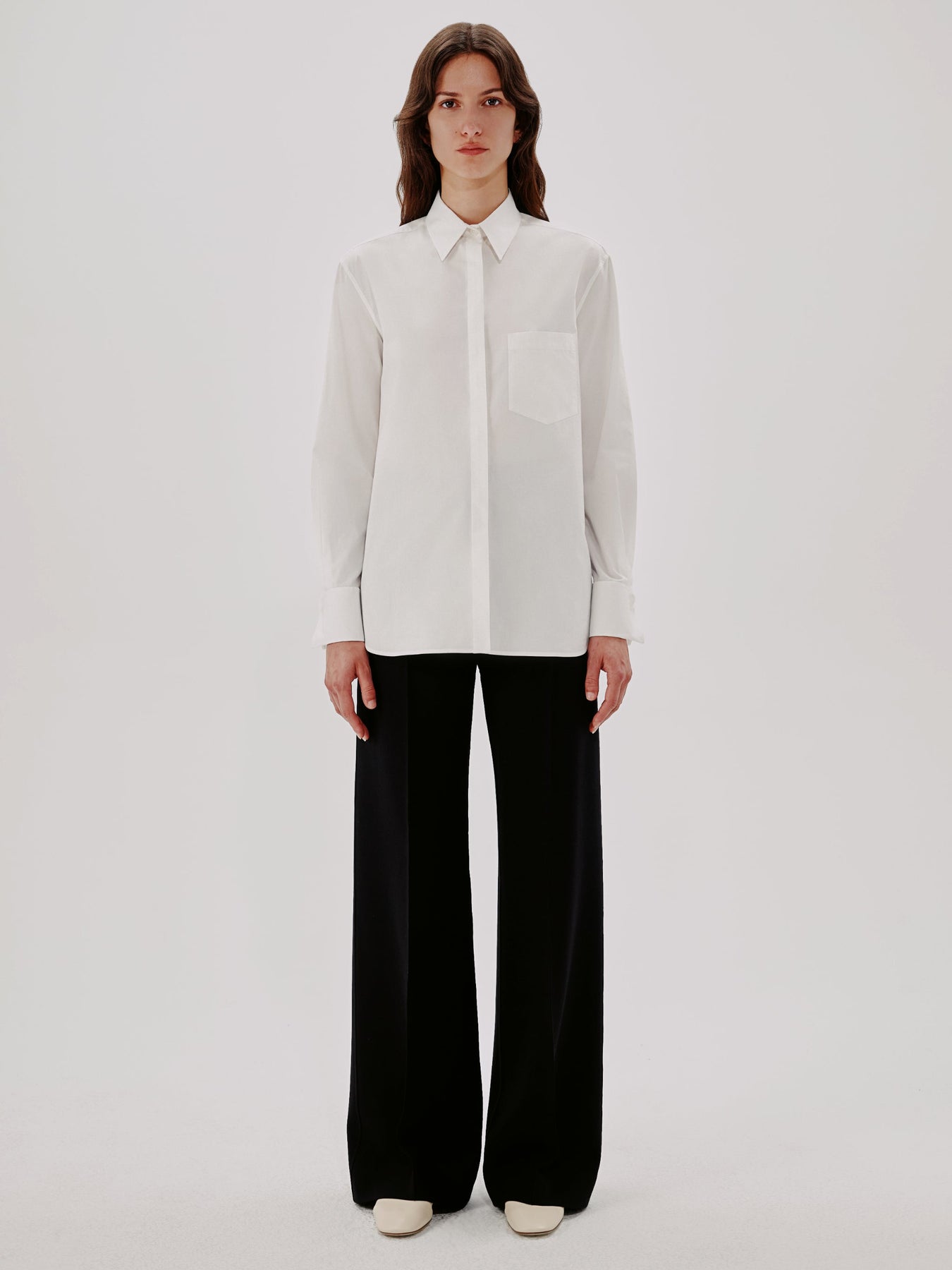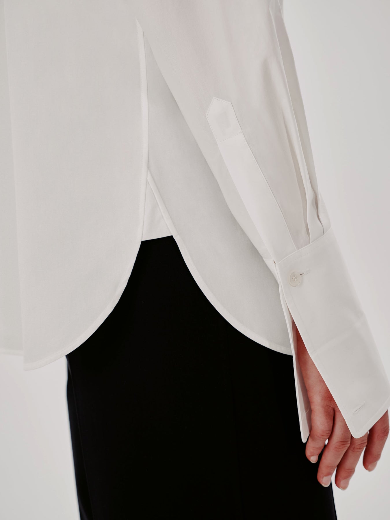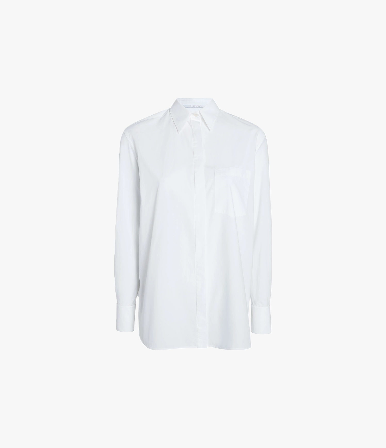 A 100% organic cotton essential. Designed to be tucked in or worn loose, this easy-fitting button-front shirt features French cuffs and a classic shirttail hem.