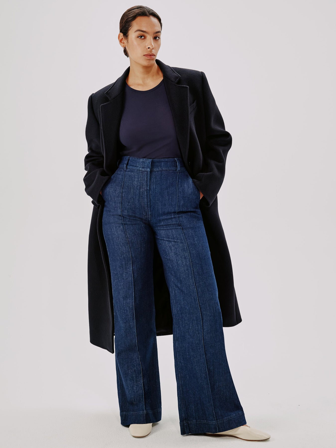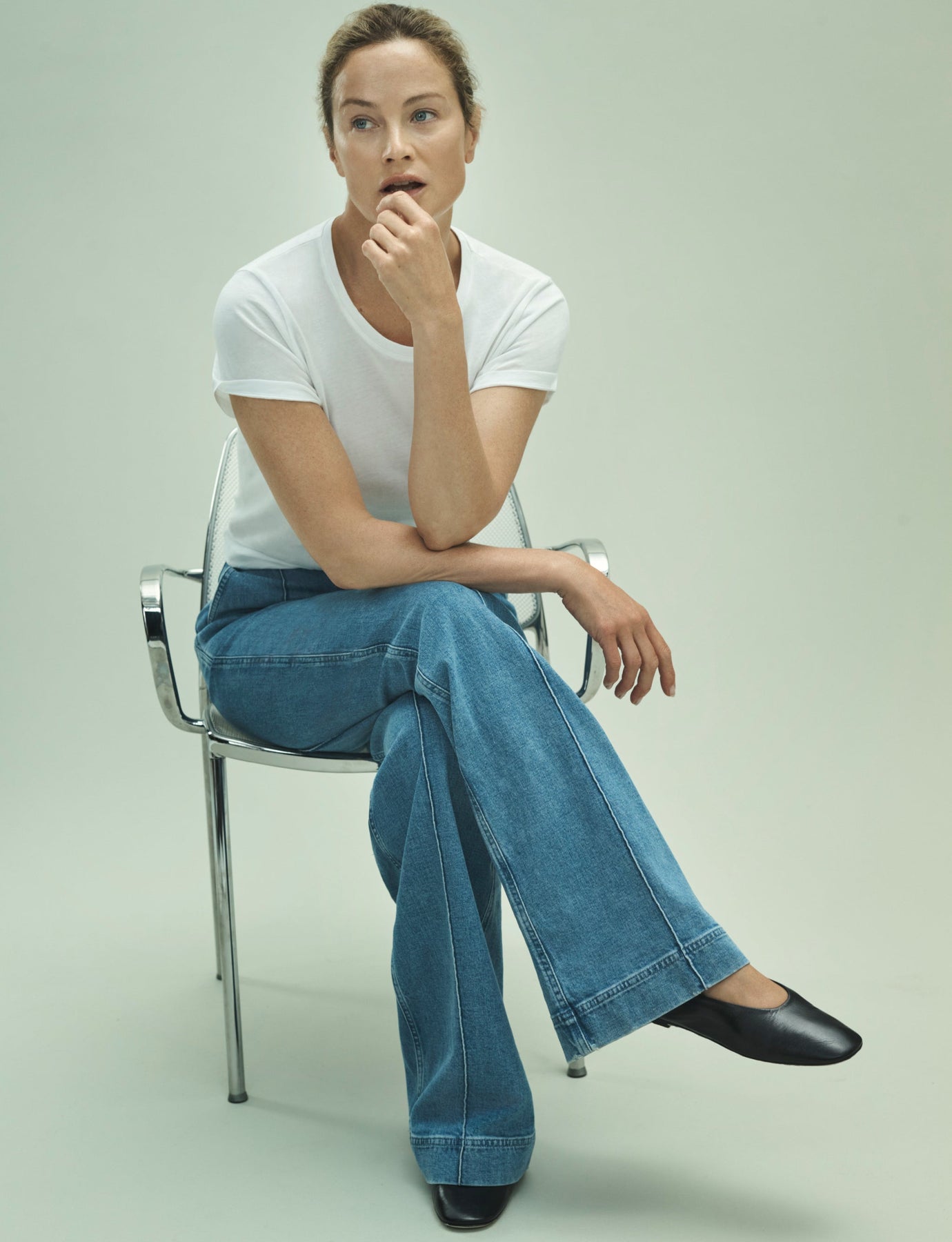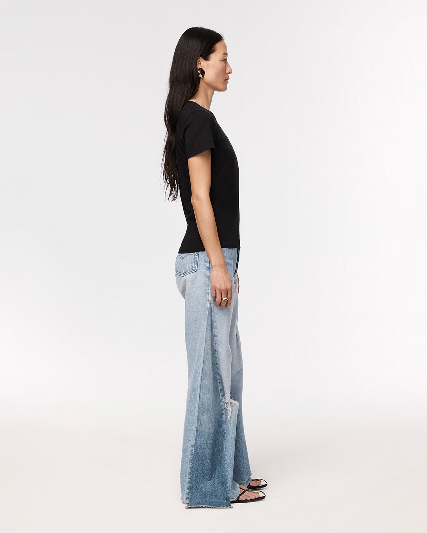 An essential, forever relevant silhouette, this slightly sheer, crewneck tee skims the body and features a light kick at the sleeve. Pair with the Single Pleat Pant for classic, refined casual.