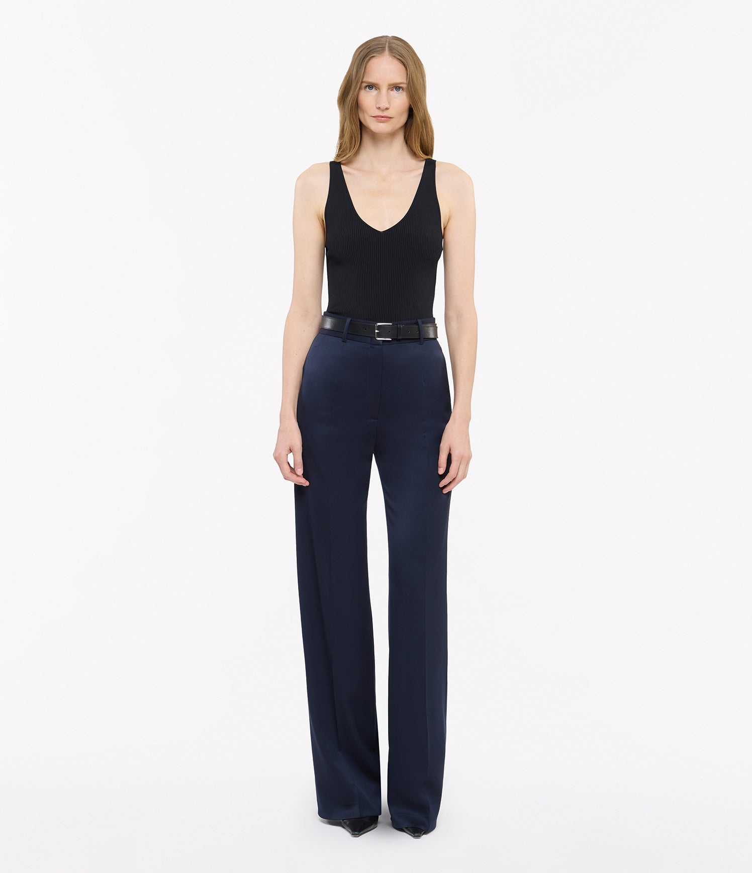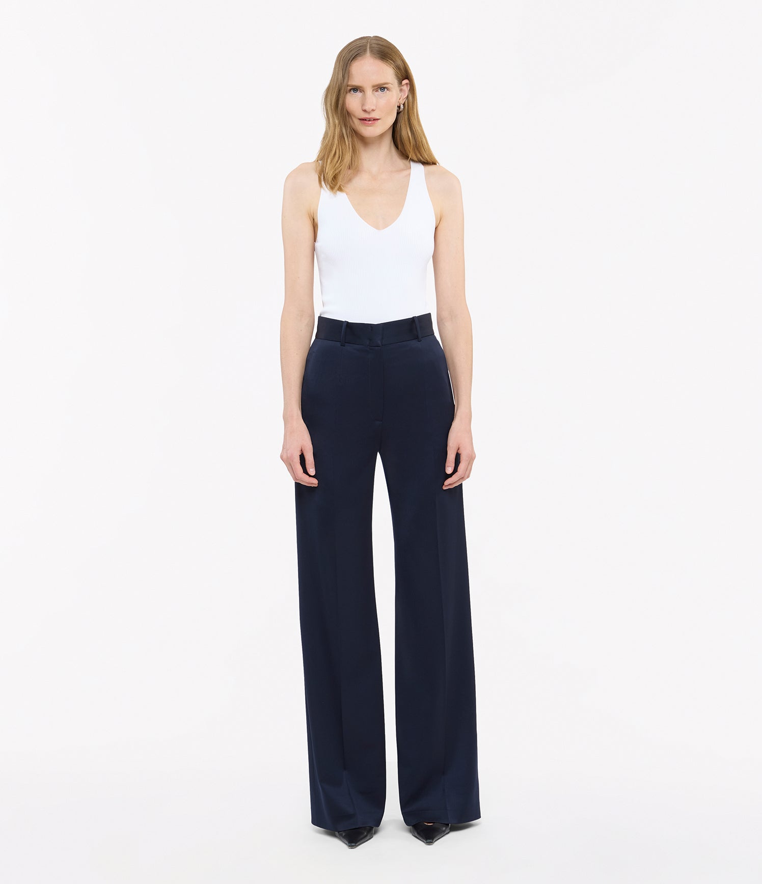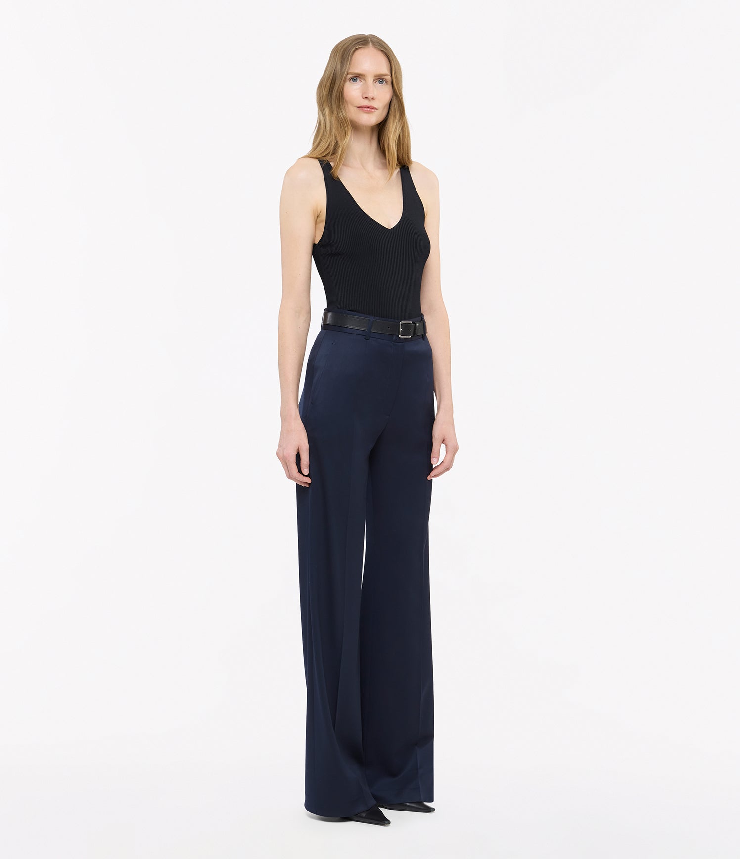 The deep v-neckline on this tank is rounded toward the center, striking a balance between drama and ease. Crafted in Italy, our delicately ribbed viscose knit is soft and cool against the skin, ideal for wearing alone in warm weather or for layering throughout the year.