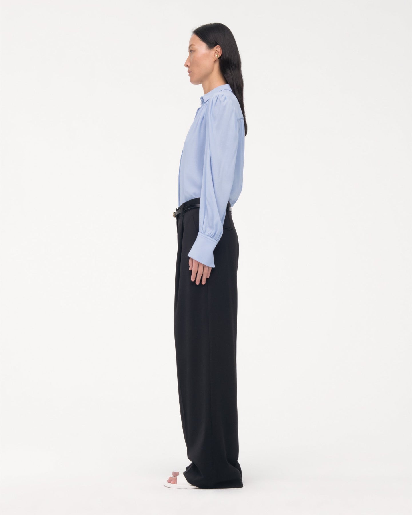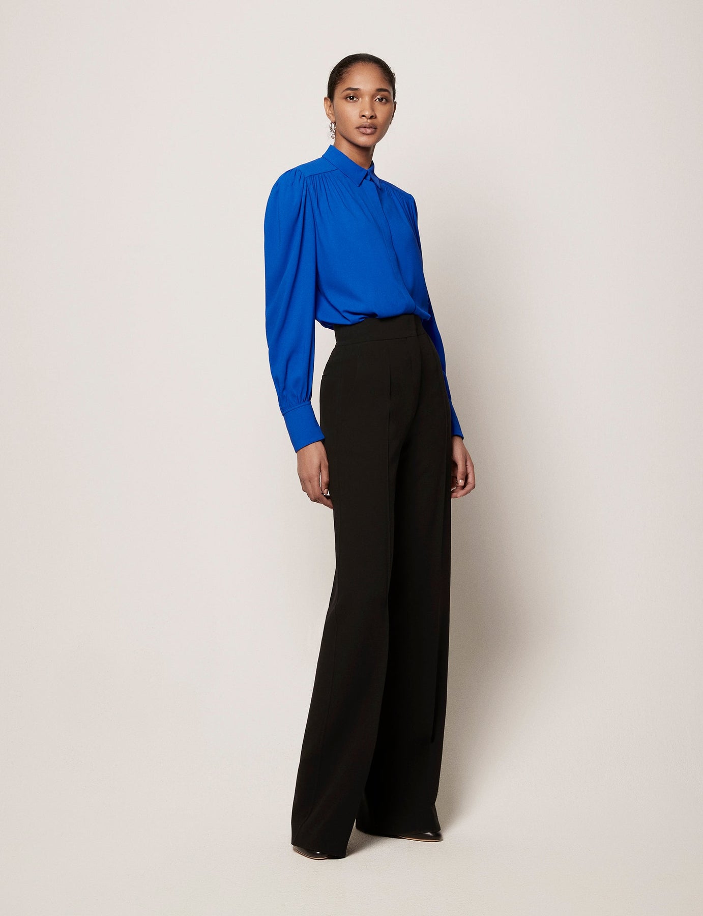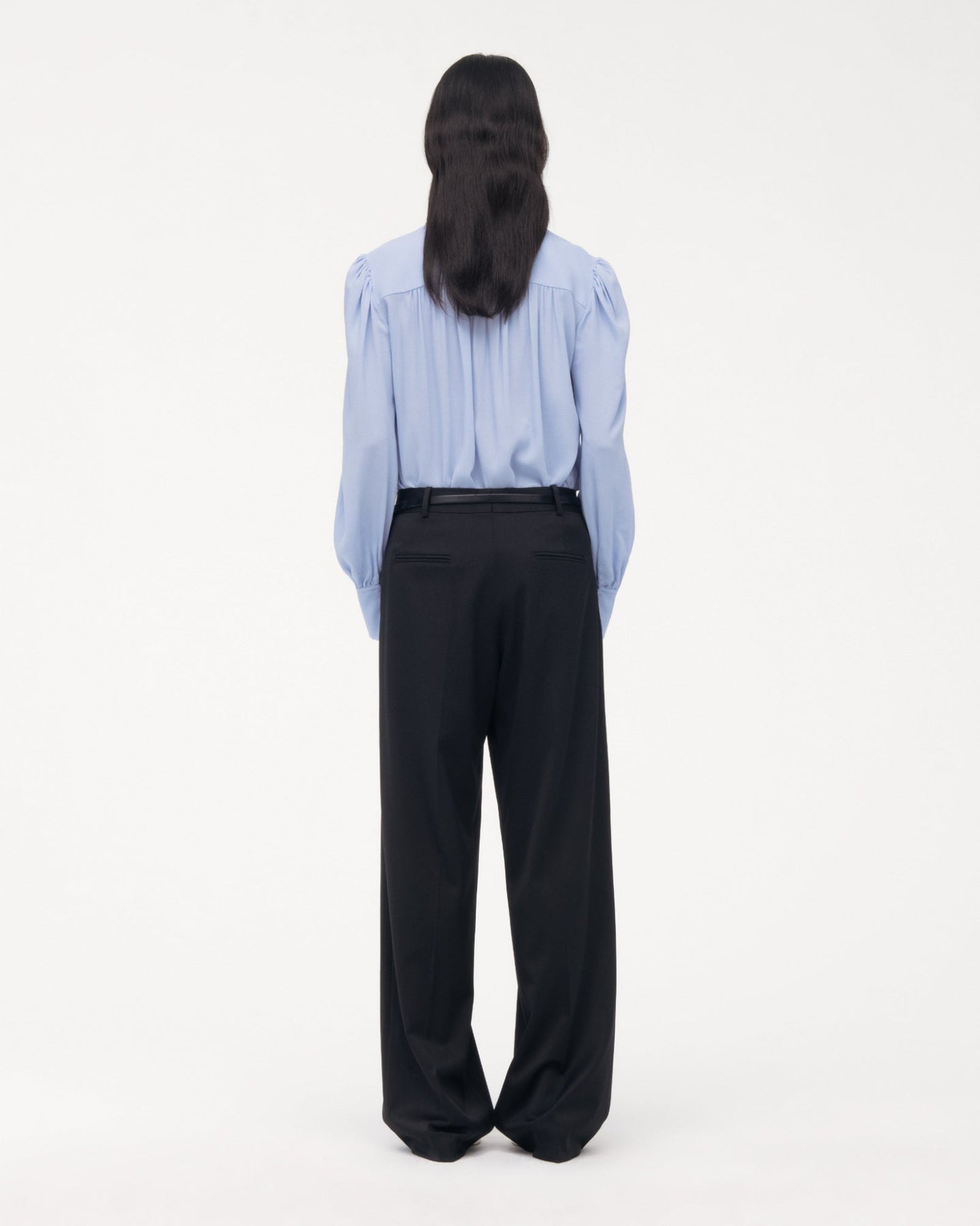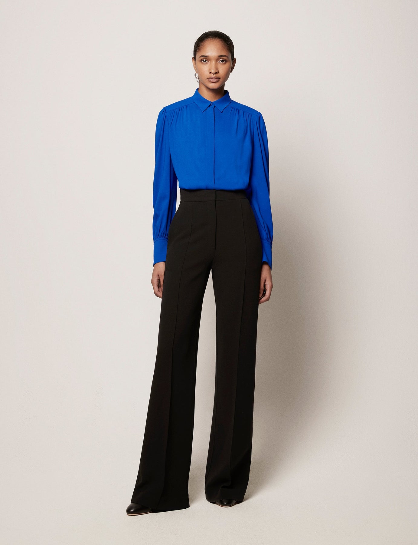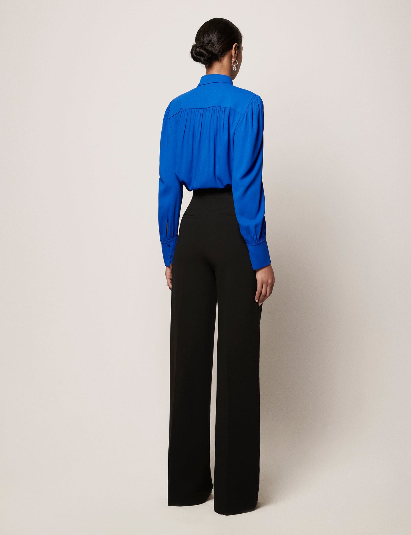 Elegant gathers throughout the body of this blouse and covered buttons at the cuff make this a detailed & impactful piece that can be dressed up or down. This style runs large; we recommend sizing down.