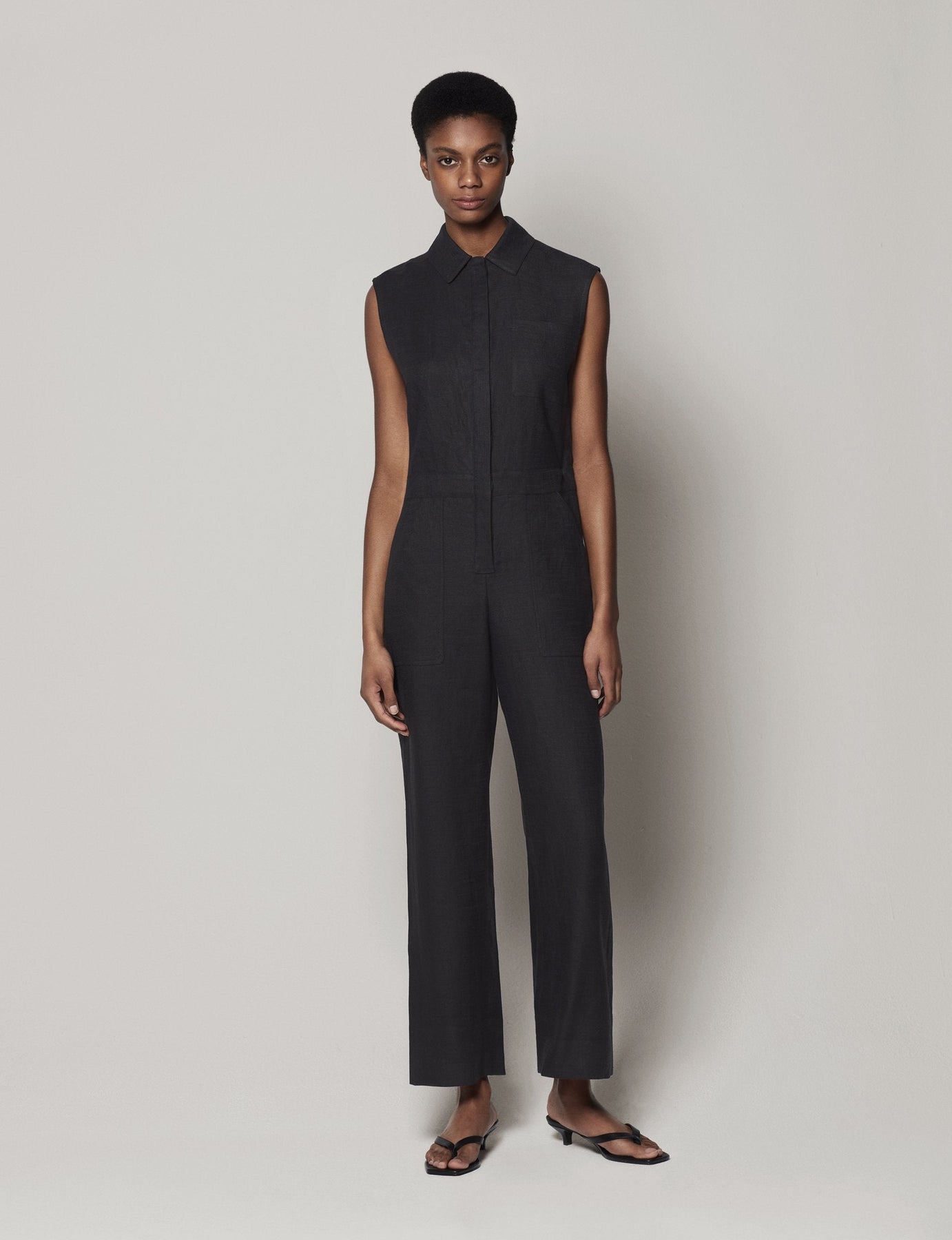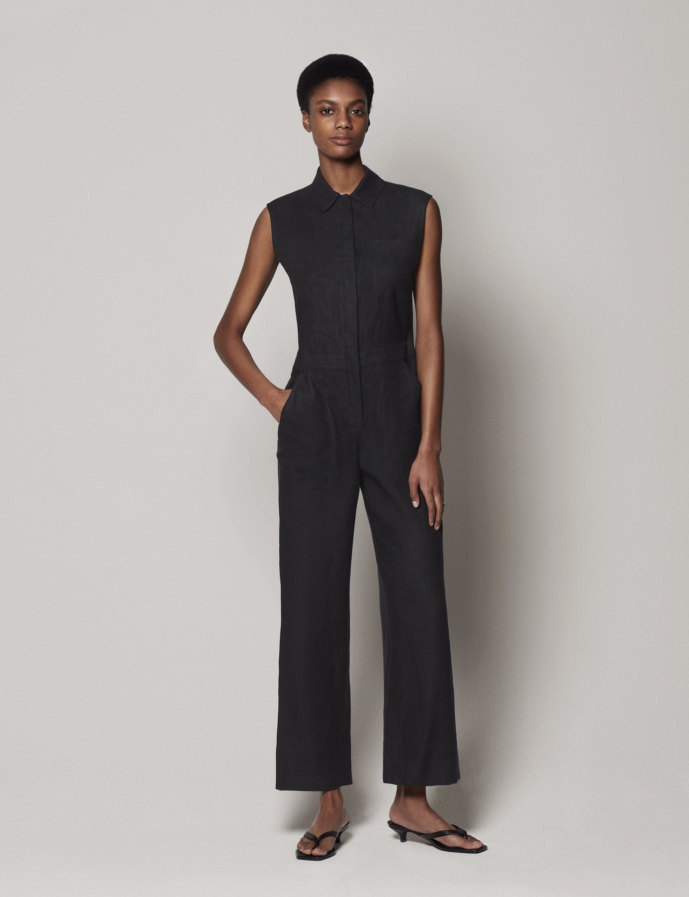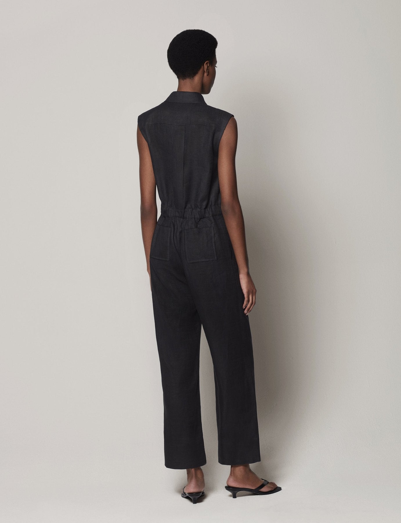 Our custom technical organic linen blend adds texture and attitude to this jumpsuit. Adjustable tabs flex to many forms and allow for a more relaxed or lean fit.