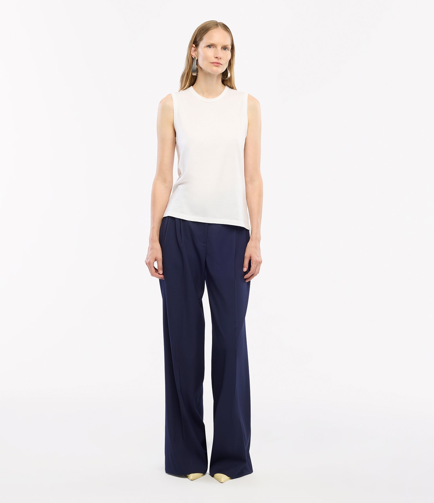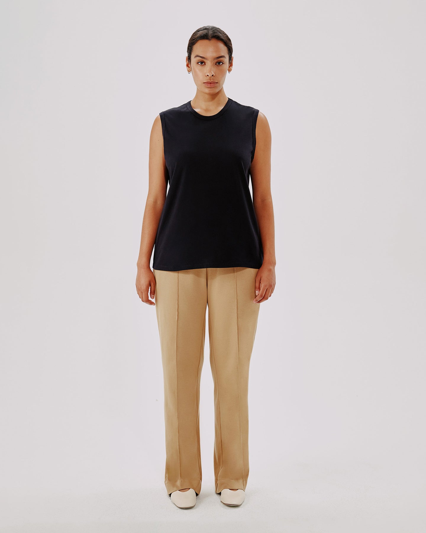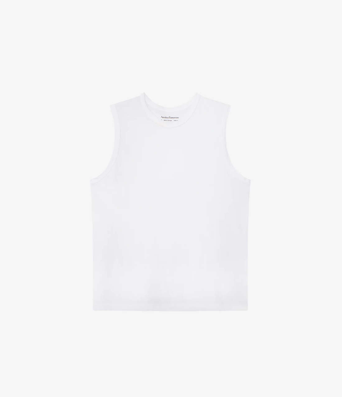A feminine take on the classic muscle tee, our Sleeveless Tee skims the body and features strong detailing in the form of finished trim at the neck and arm. Designed to be worn loose or tucked, pair with our Archival 501s for sophisticated, classic casual.