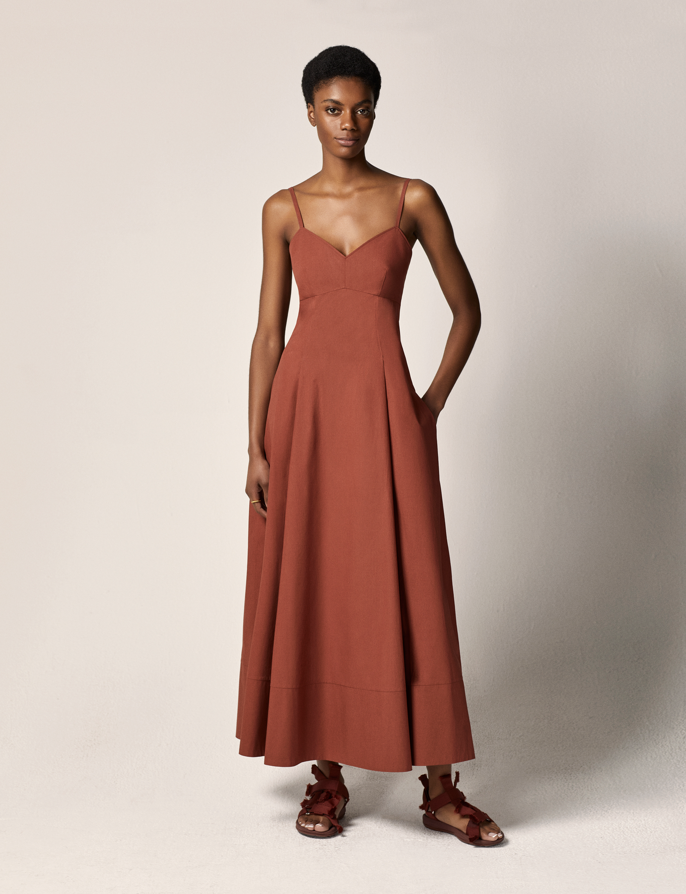 Expertly tailored for a flattering fit, our custom organic cotton poplin Sun Dress is deftly fitted through the bodice and balanced by perfect fullness in the skirt.