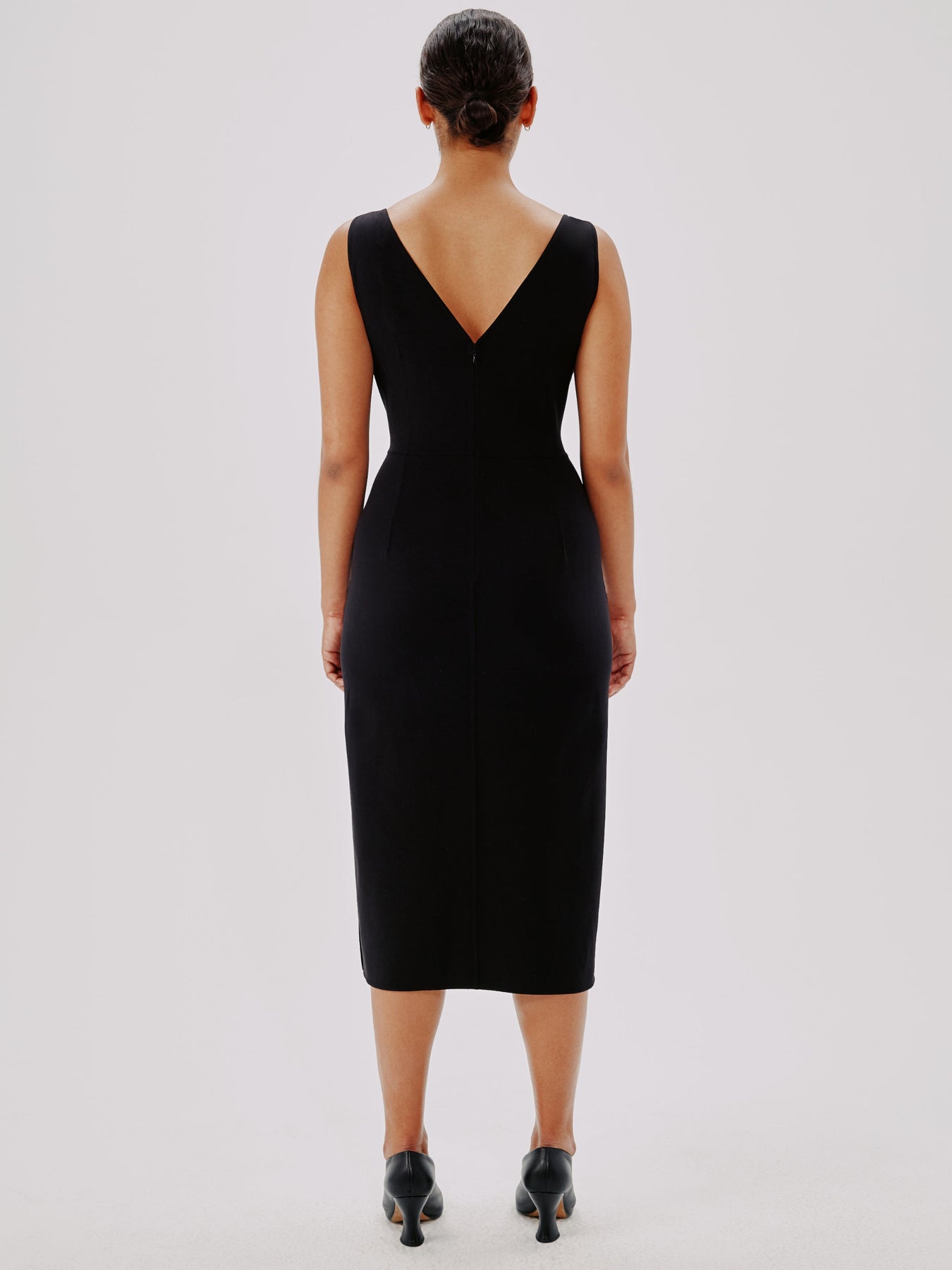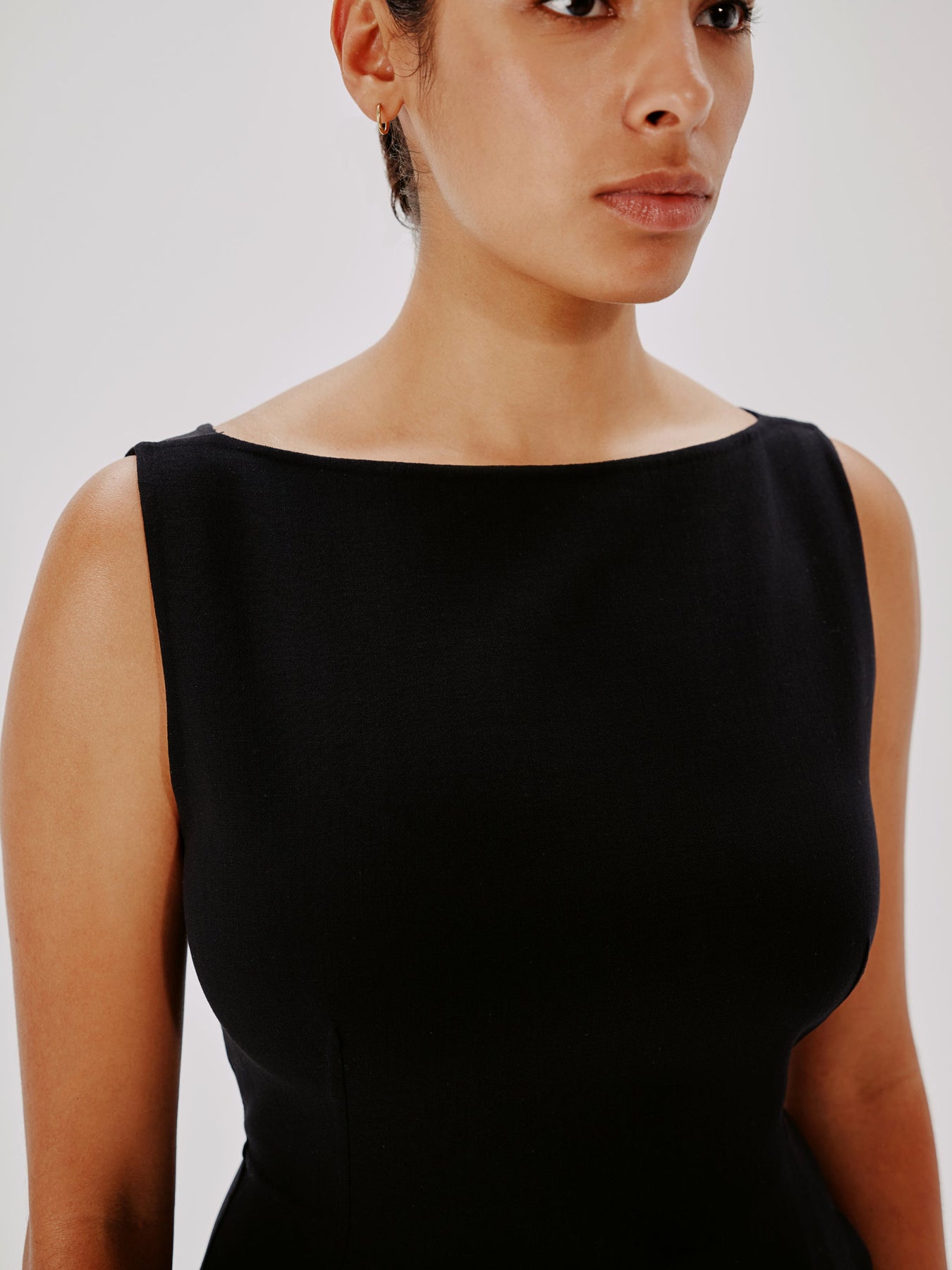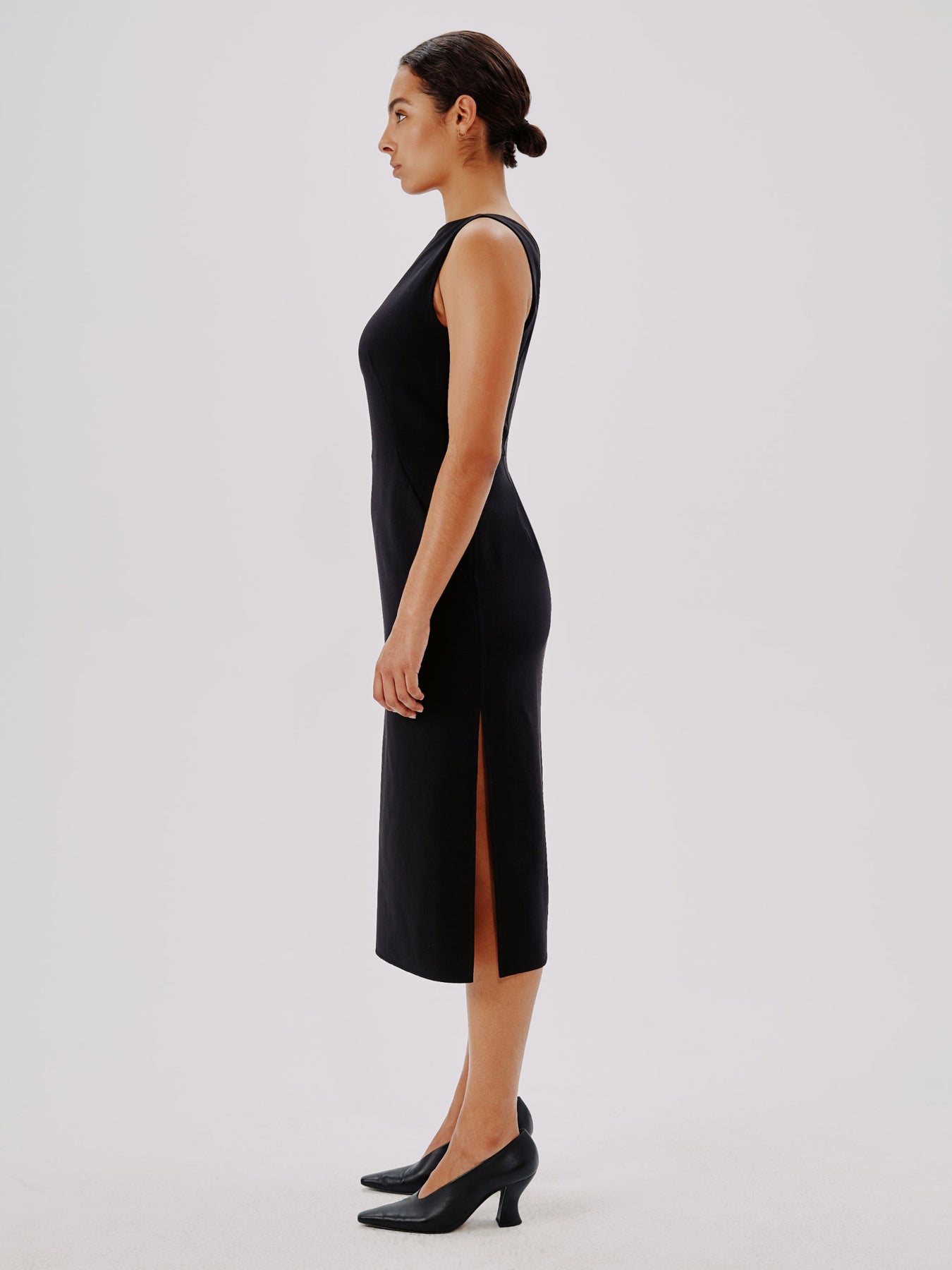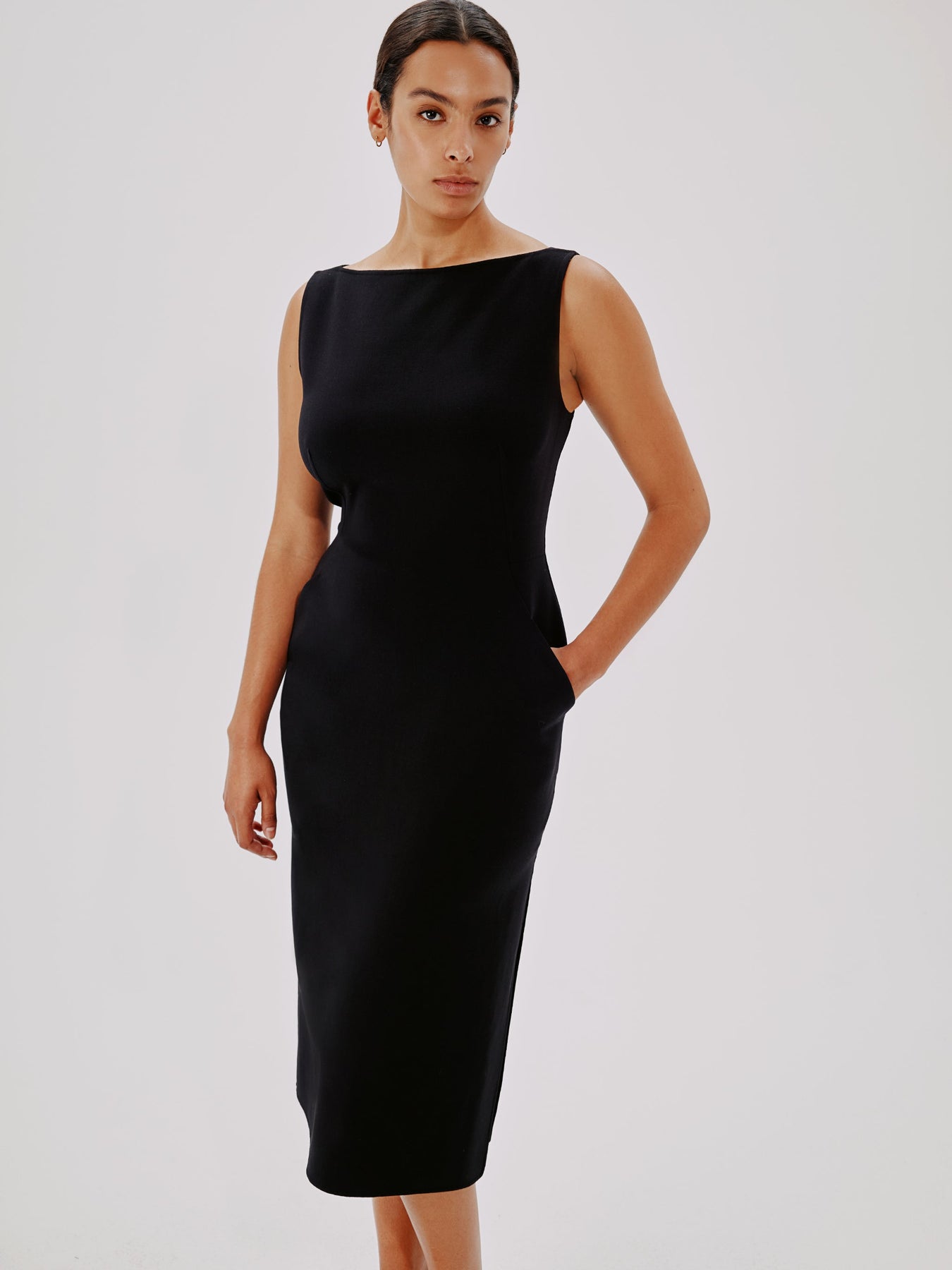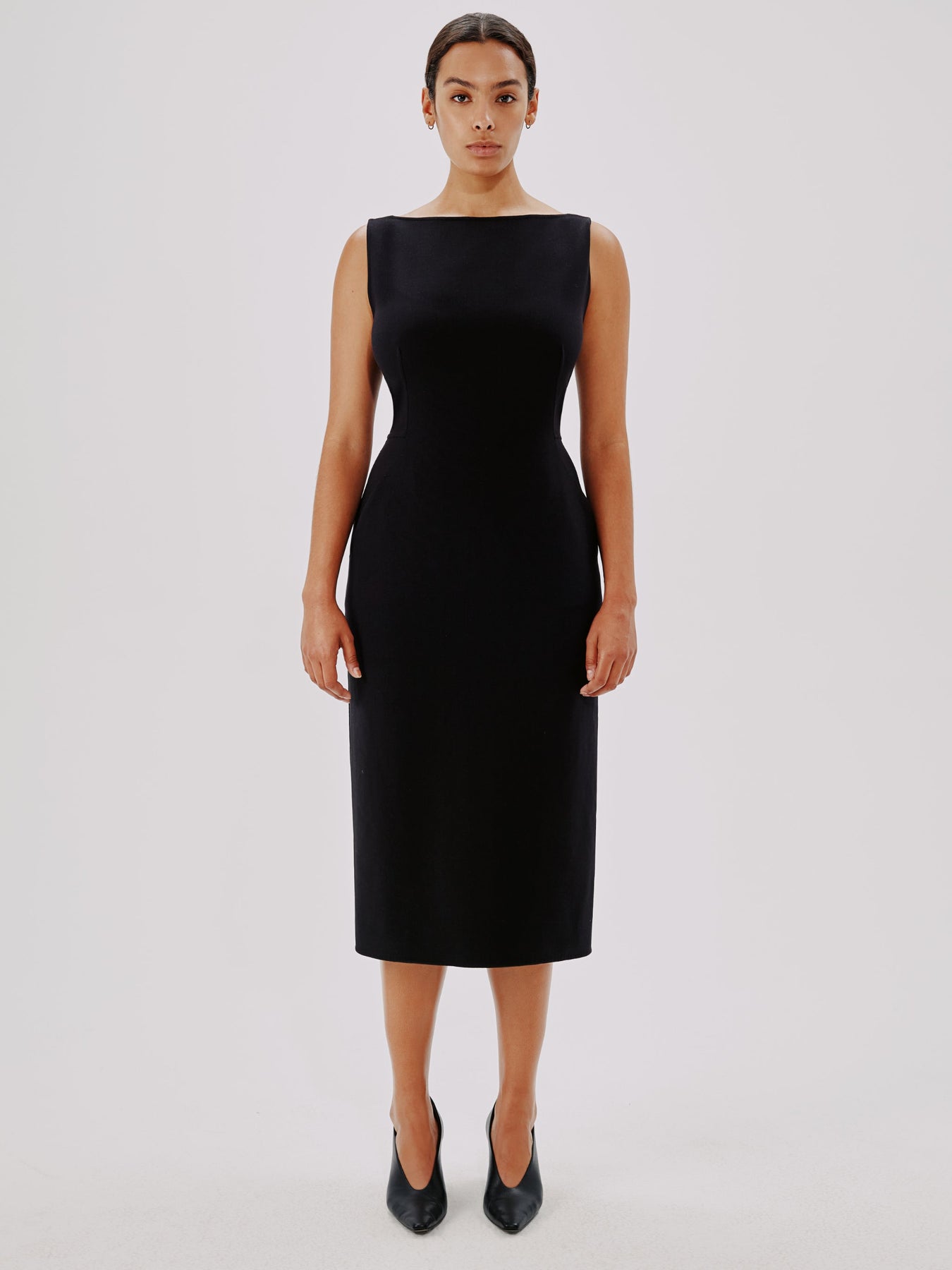 Crafted in our double-faced, farm-traceable, seasonless wool, our take on the LBD is streamlined with precise seaming that creates an ultra-flattering silhouette. Its supple double face crepe texture moves effortlessly with the body, maintaining clean lines in any posture.