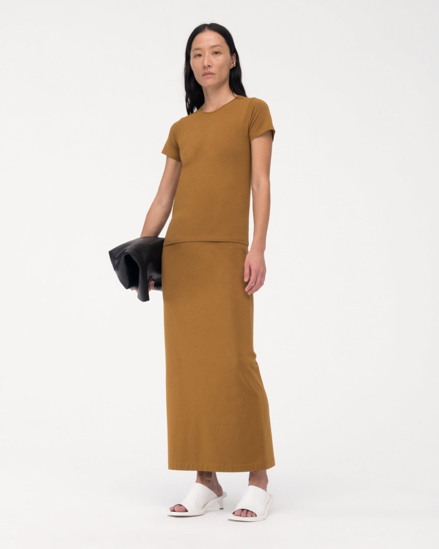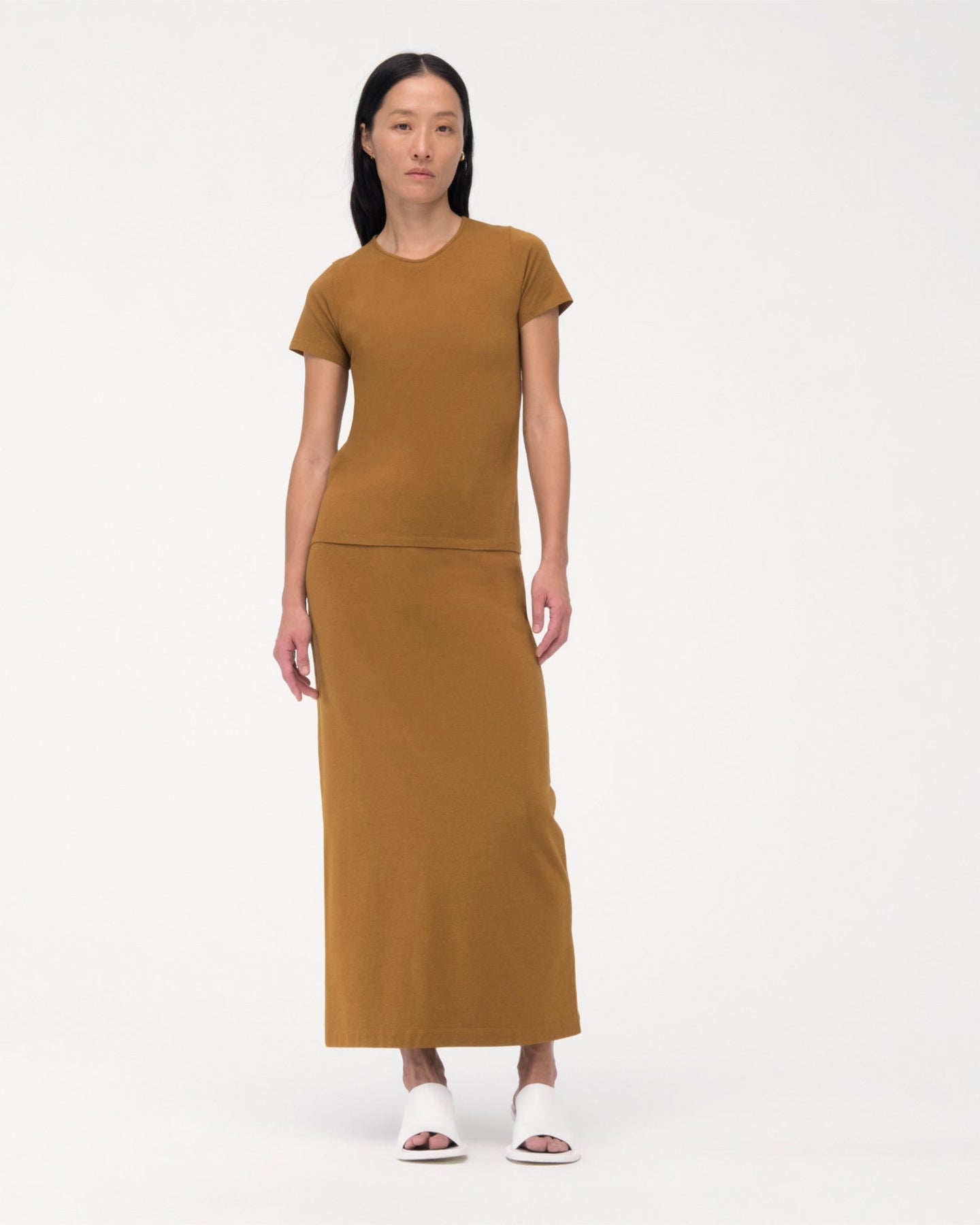 Made in our custom organic cotton and lyocell blend, the Fitted Tee is a hero piece in our Core Collection. A more tailored, body-skimming take on the classic t-shirt. This style runs small; we recommend sizing up.