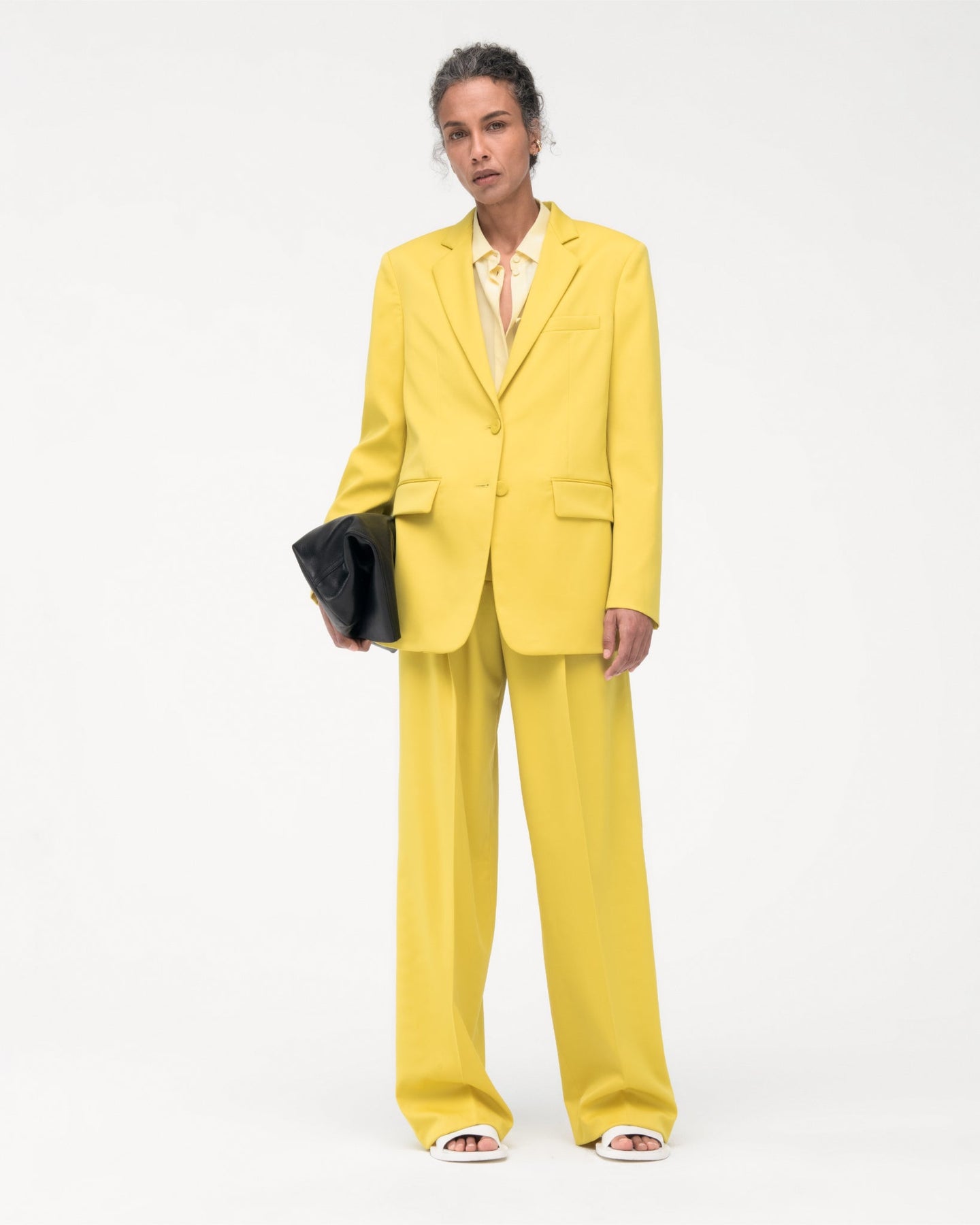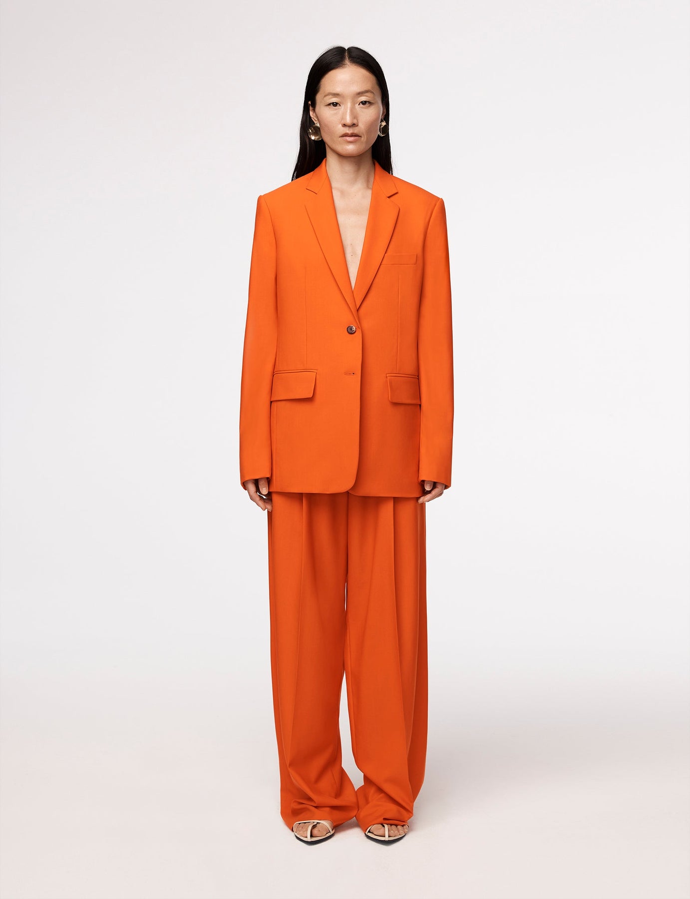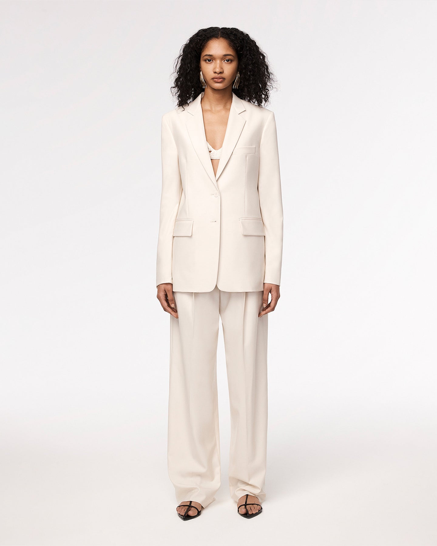 Our slightly oversized blazer wears well as a casual complement to a dress or denim, or worn with the Relaxed Wide Leg Pant to create a voluminous, effortless suit.