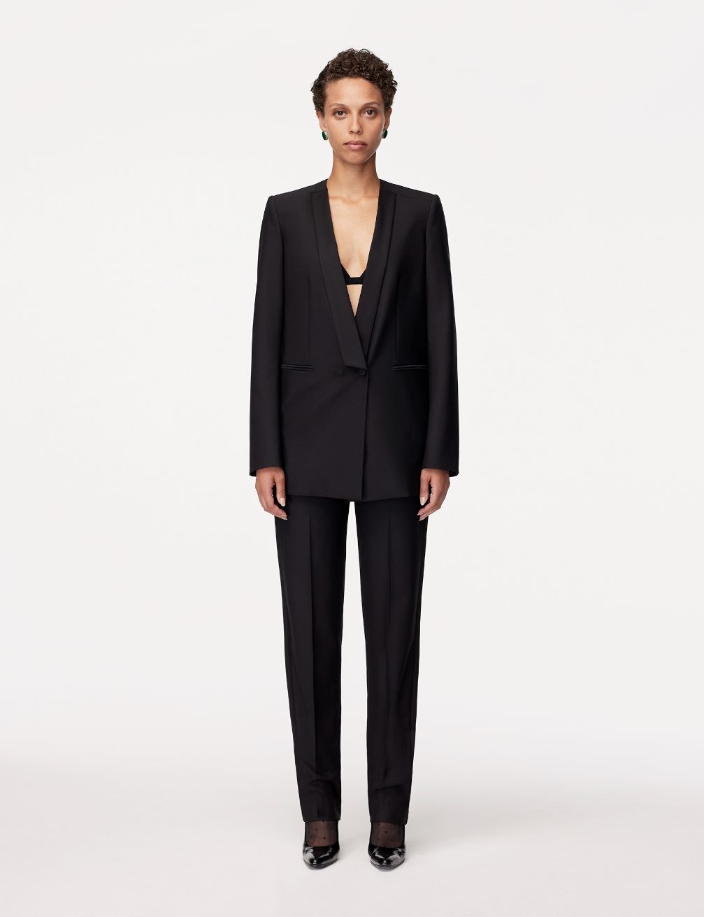 From our debut Holiday capsule, this Tuxedo Jacket introduces black-tie sophistication made in our seasonless custom-made merino wool. Wear open or buttoned, and pair with our Tuxedo Pant for a full look. This jacket features self covered buttons and slightly-sheen lapels for elevated details.