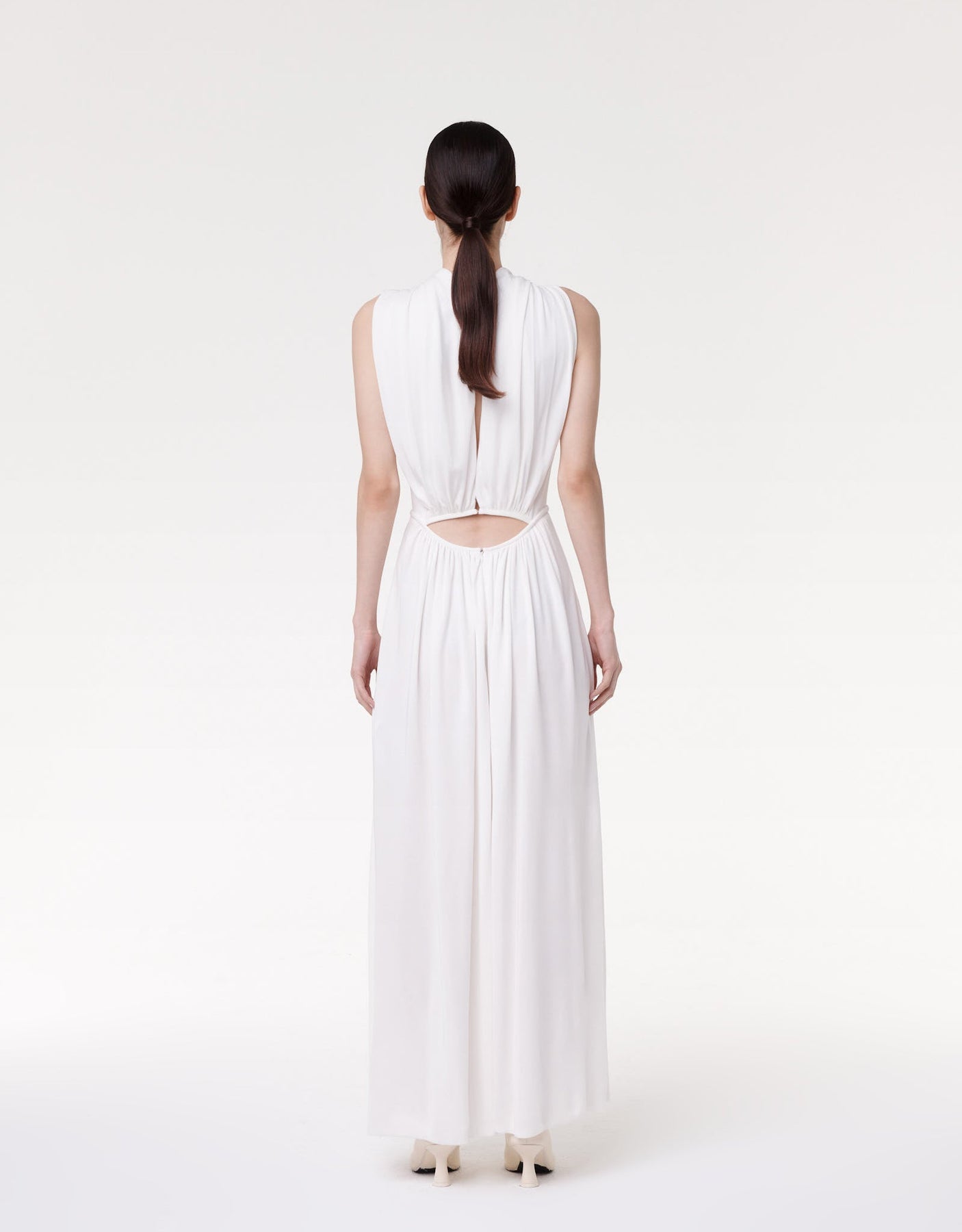 Features a small cutout at the back of the waist and keyhole opening at the back closure. Add structure by pairing with the Convertible Trench.