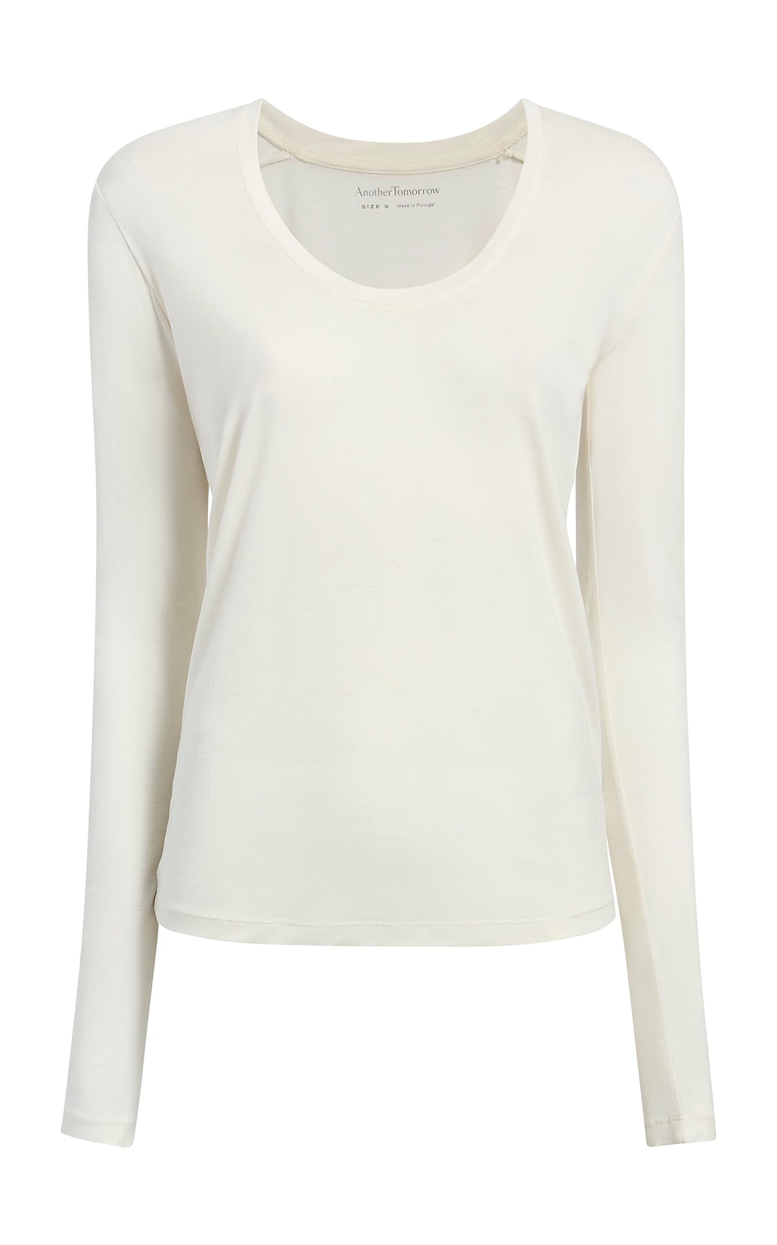 Influenced by the graceful lines of ballet and designed for everyday elegance, this tee embodies refined comfort. Incredibly soft, slightly sheer, and featuring a clean, self-bound scoop neck, the tee serves well in a more casual outfit when paired with the High Waisted Denim Trouser or can be dressed up with the Doppio Wide Leg Pant.