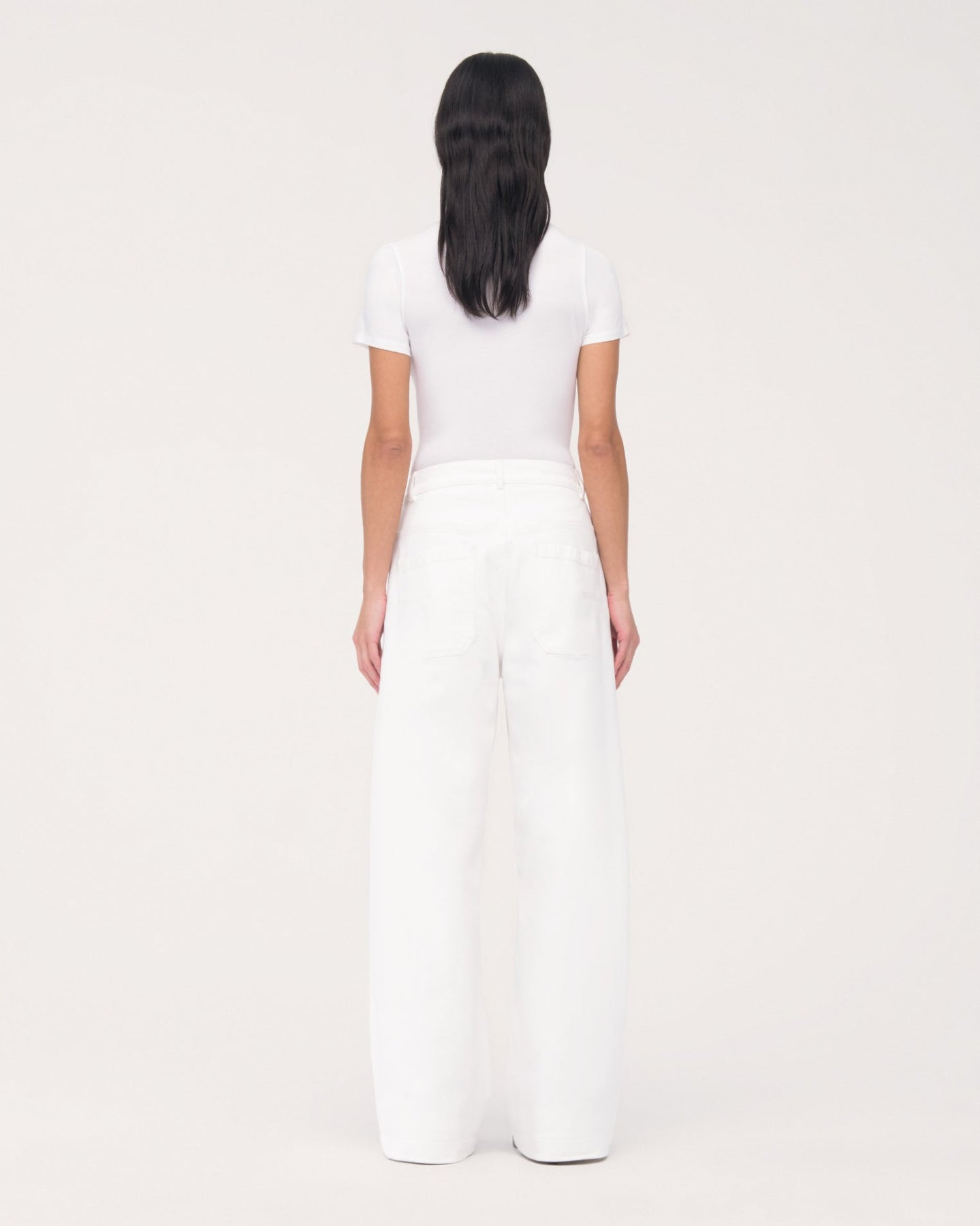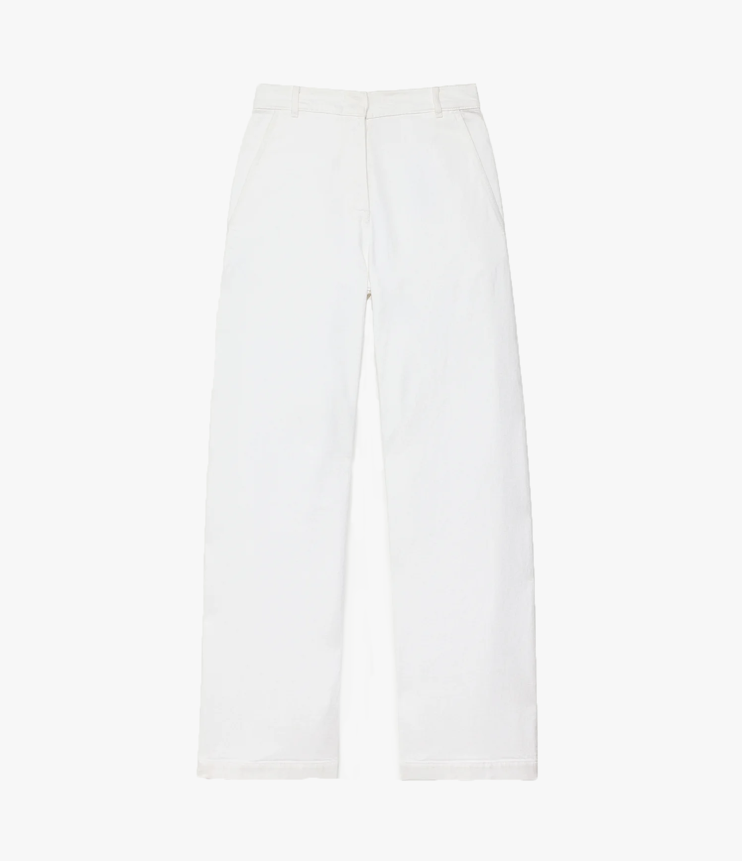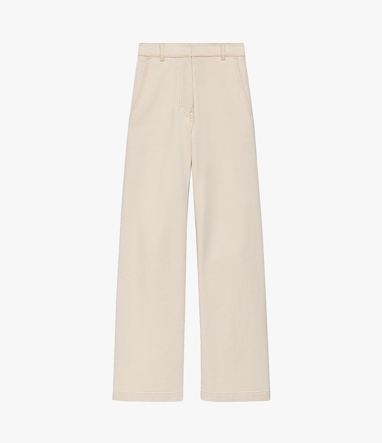 This relaxed-fitting jean is wide through the leg, creating an easy feel that pairs well with the classic Men's Shirt. A hook and bar closure maintains a long, uninterrupted silhouette at the front.