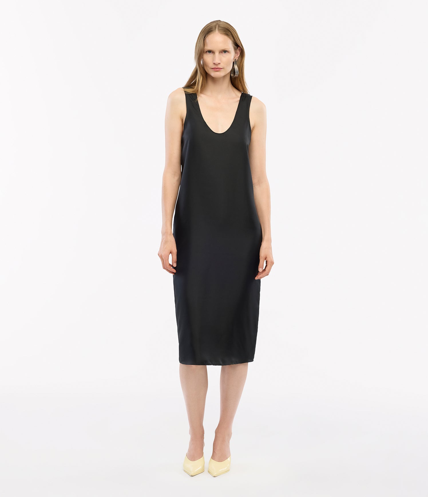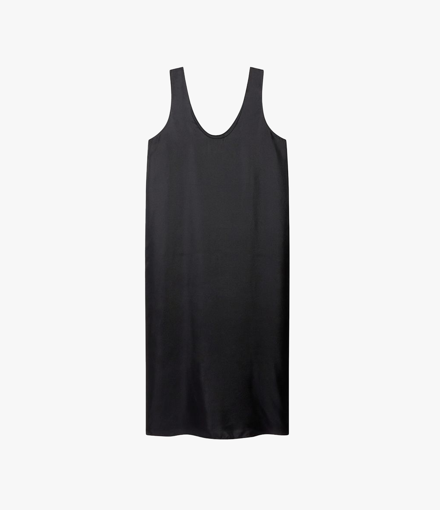 Crafted in a lightweight silk, this slip-on dress is doubled to create a self lined dress. Cut in our signature cocoon shape for an effortless look.