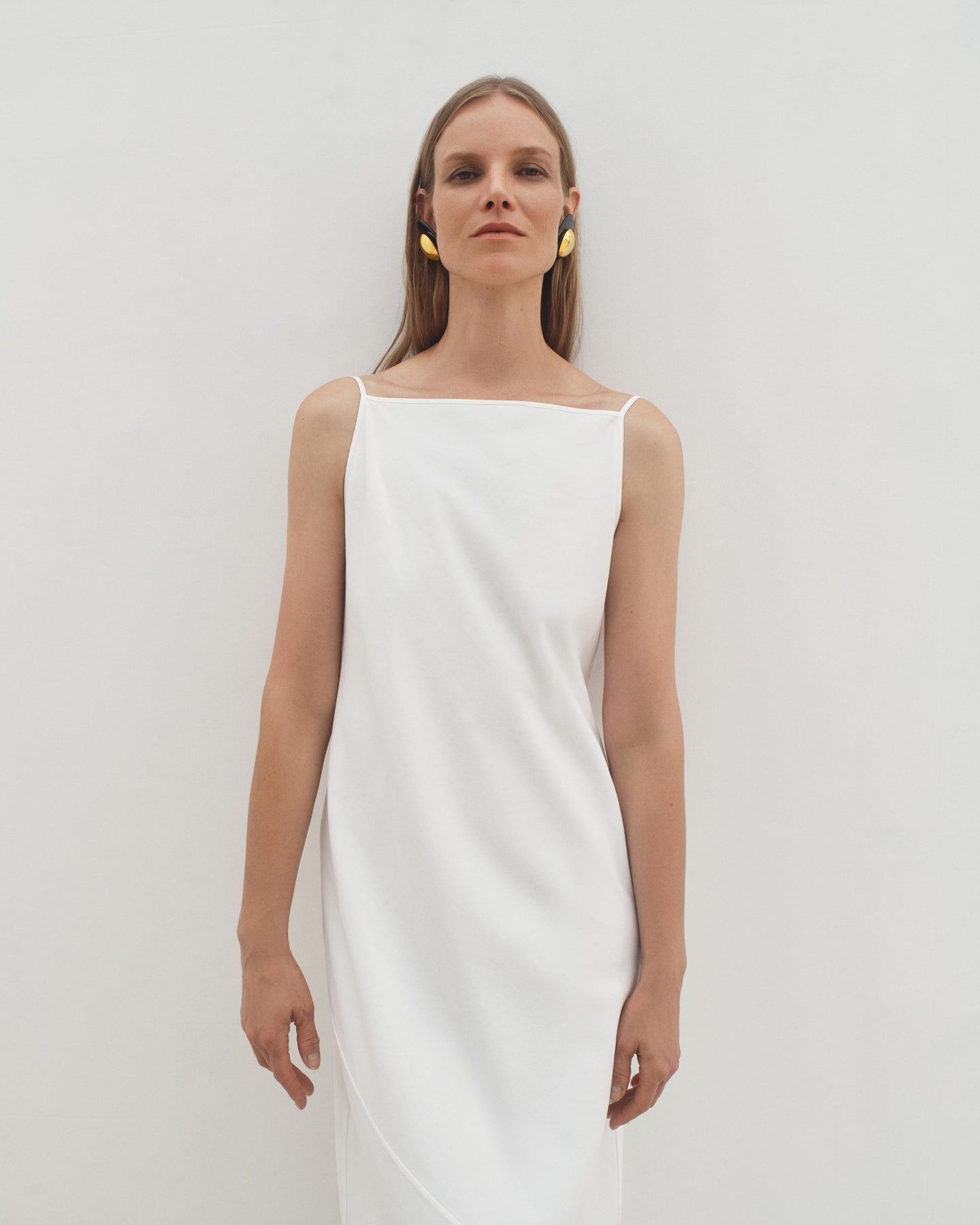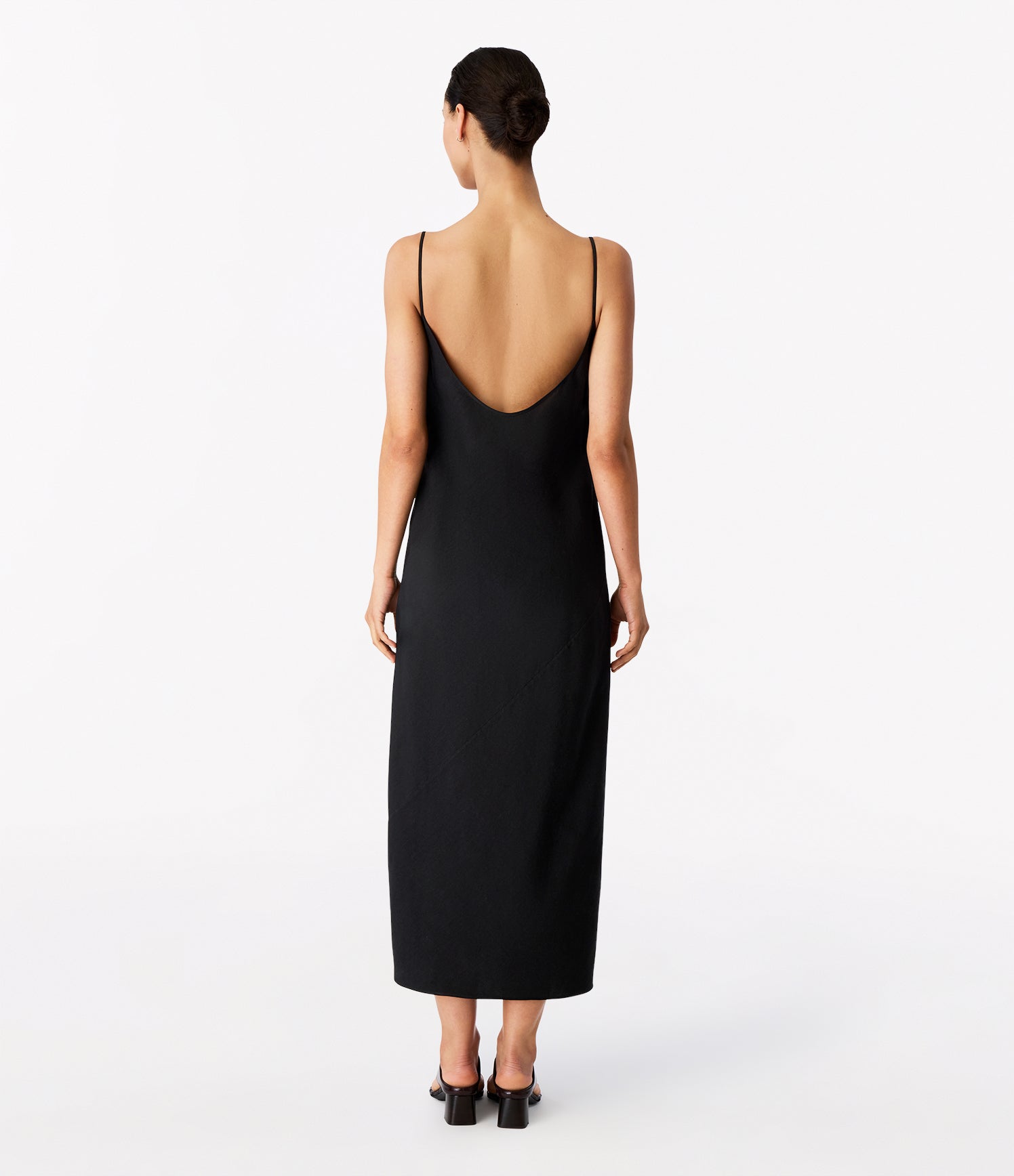 Crafted in a lightweight hemp viscose, this ankle-length dress boasts a square neckline and low scoop at the back. Unlined.