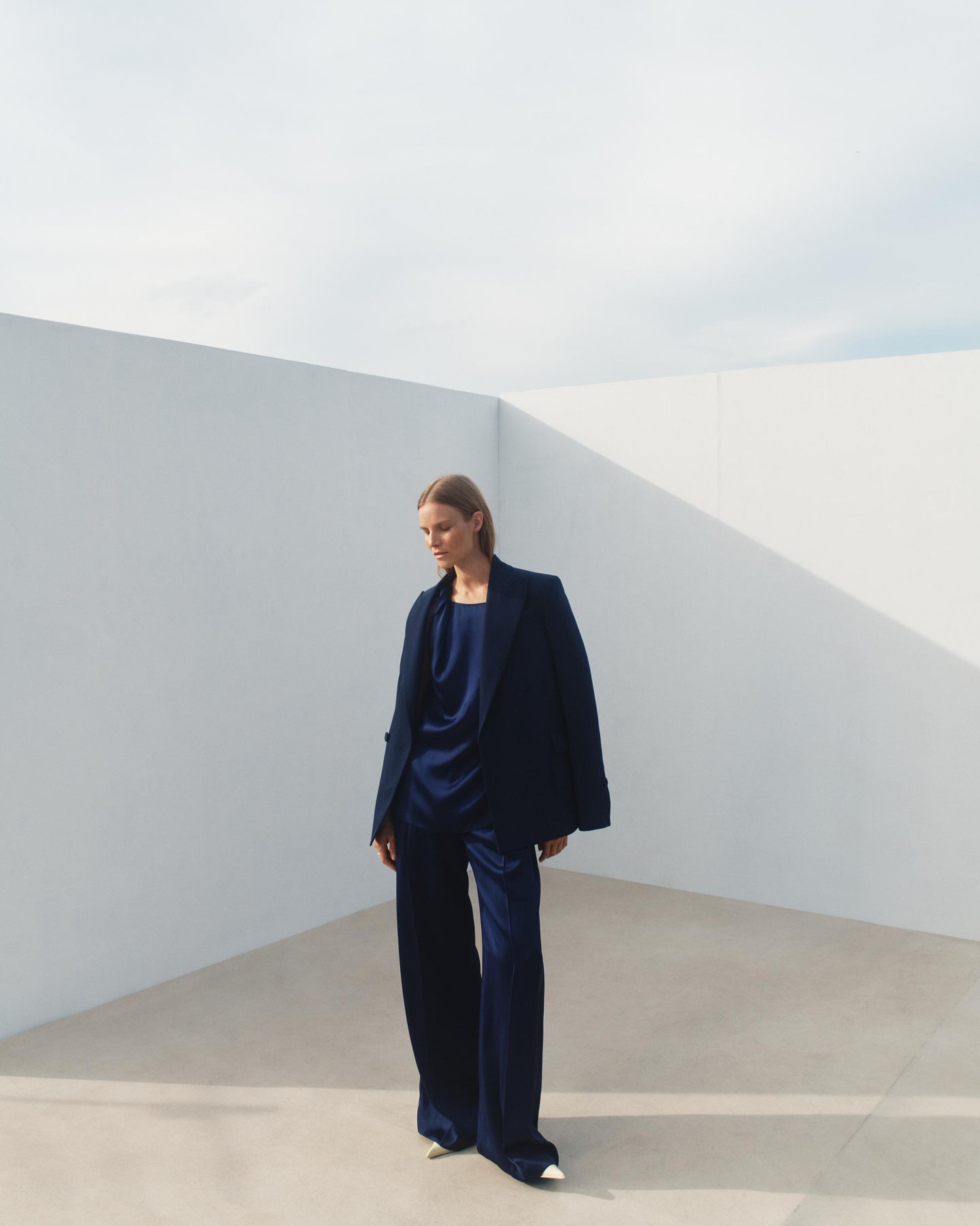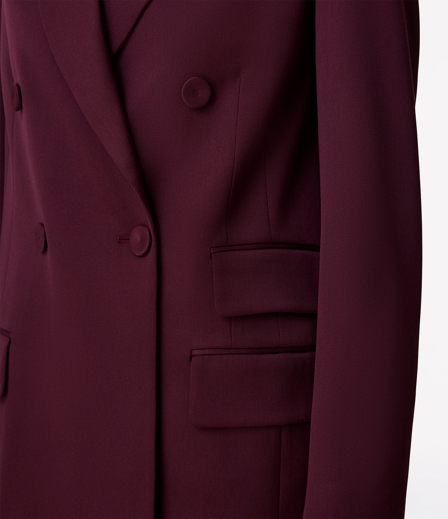 Crafted in our merino wool, our precisely tailored double-breasted jacket has a relaxed fit featuring flap-front pockets and self-covered buttons.