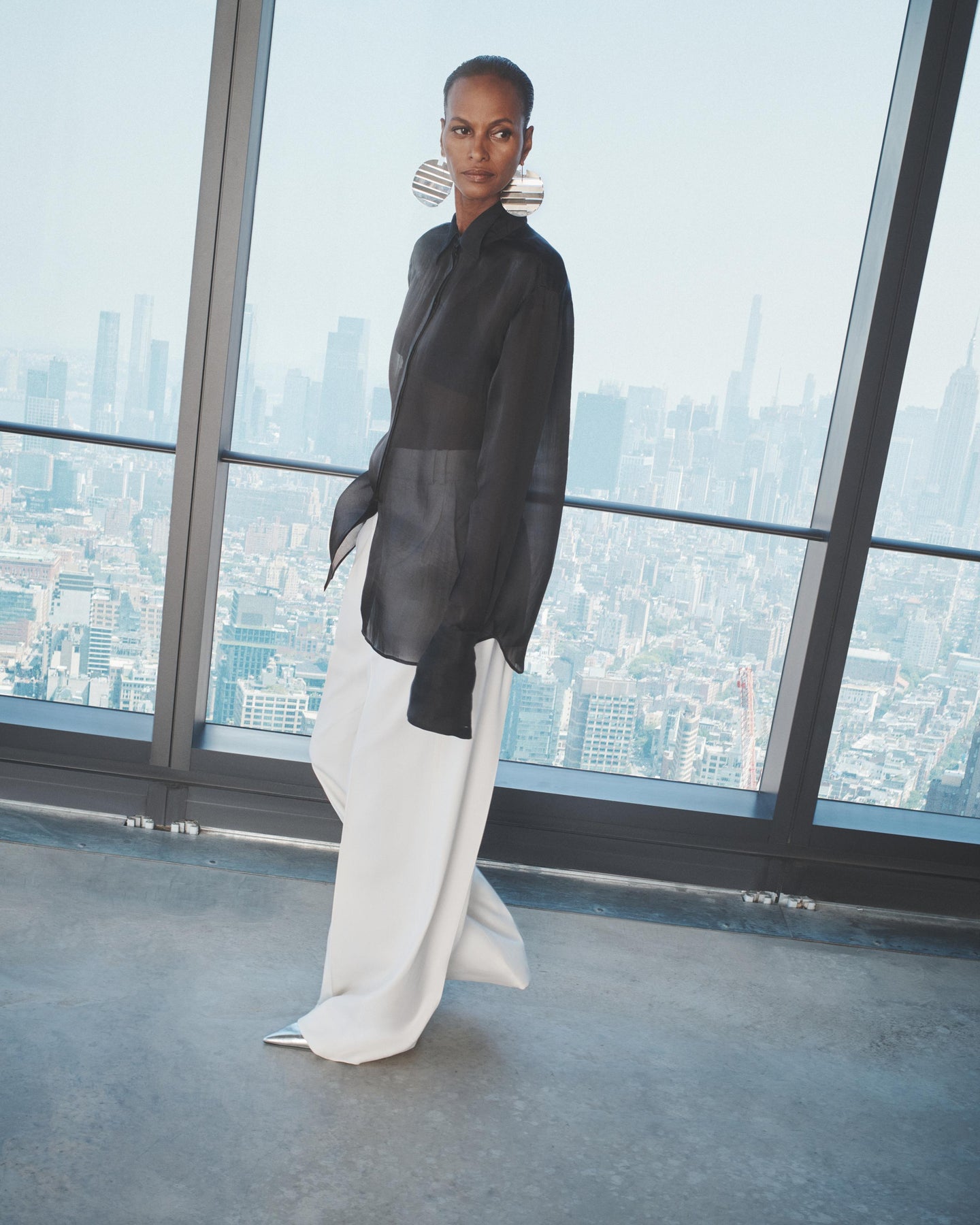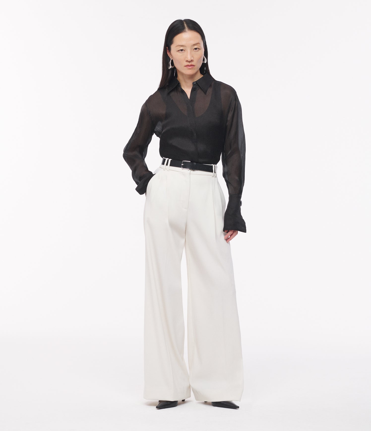 The Oversized Mens Shirt, now crafted in our lightweight, sheer peace-silk organza, featuring a relaxed fit and classic cuffs, perfect for elevated layering.