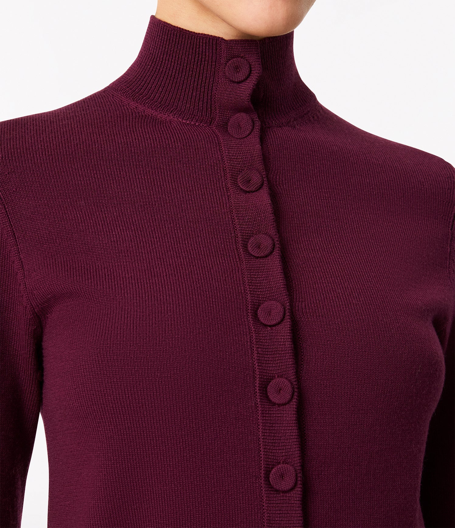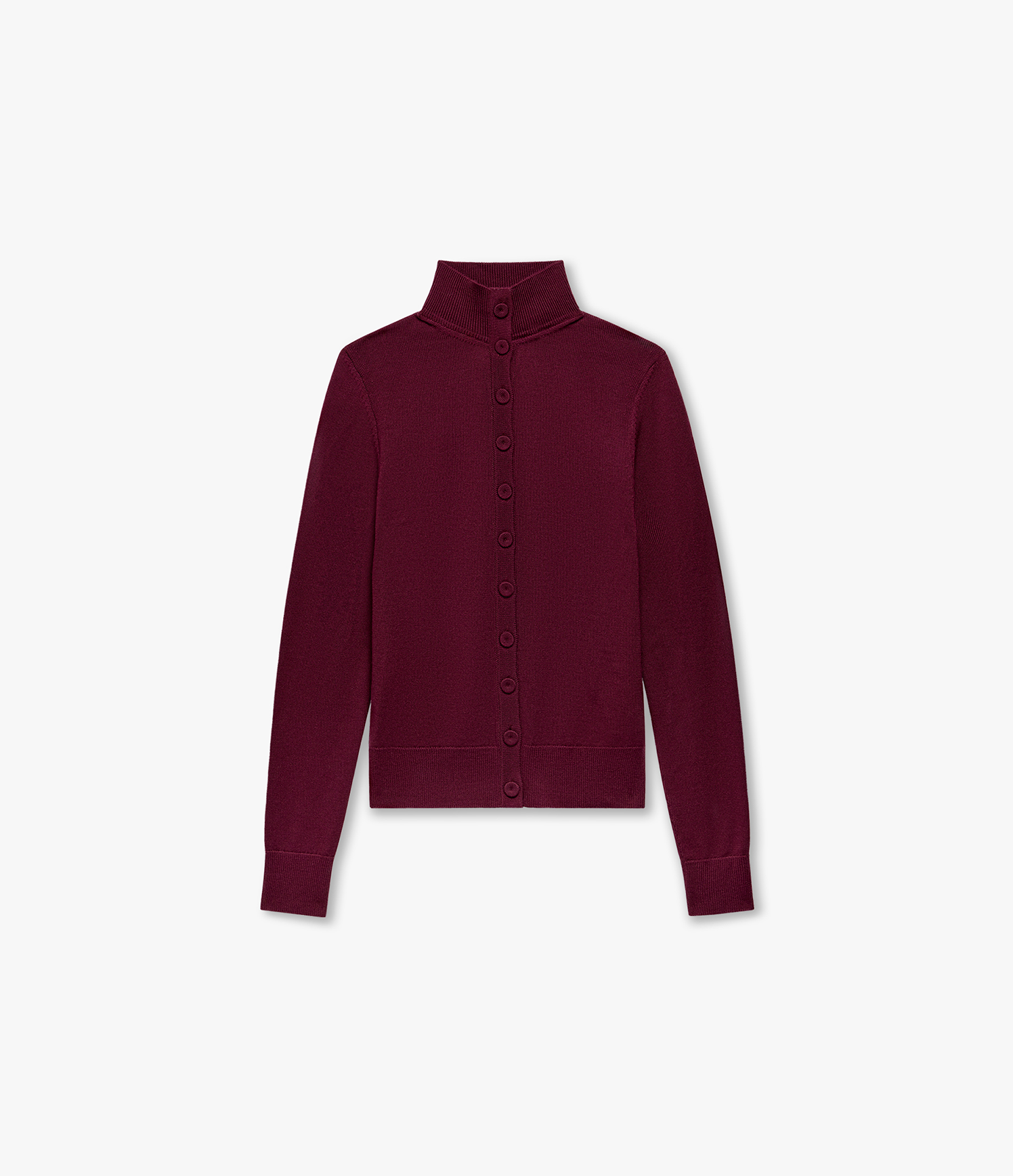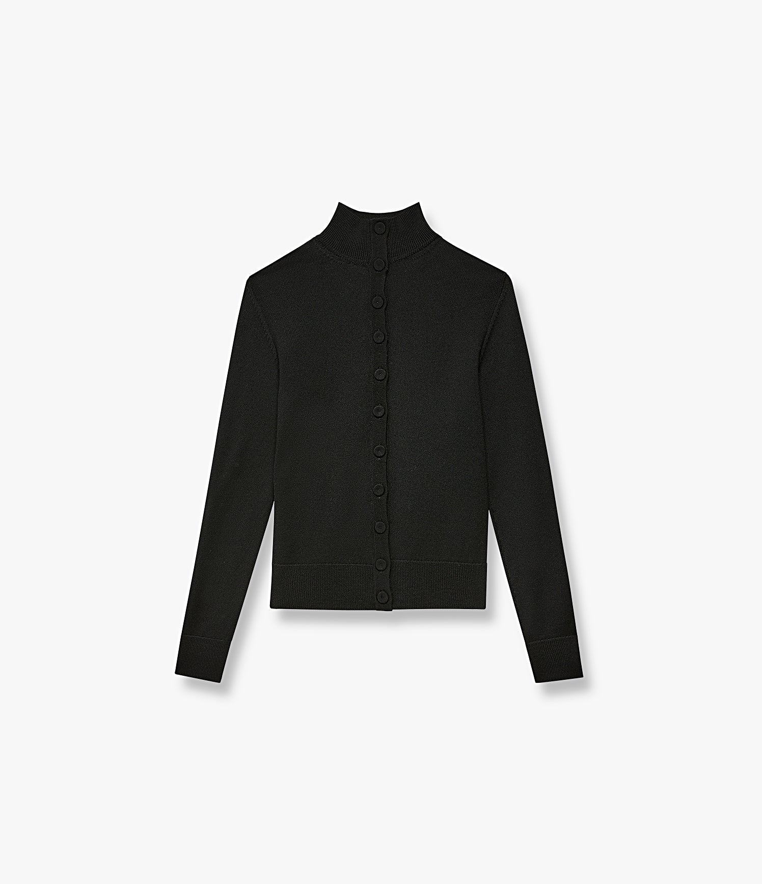 Knitted in a midweight soft wool, this cardigan was designed to sit close to the body. Ribbed trim accents the hem, cuffs and neck.