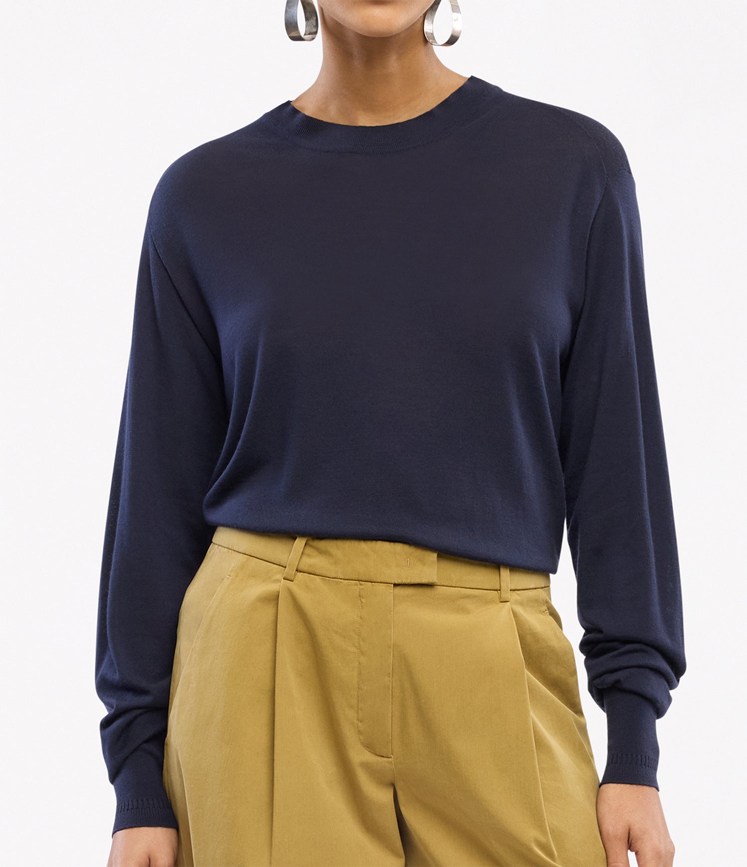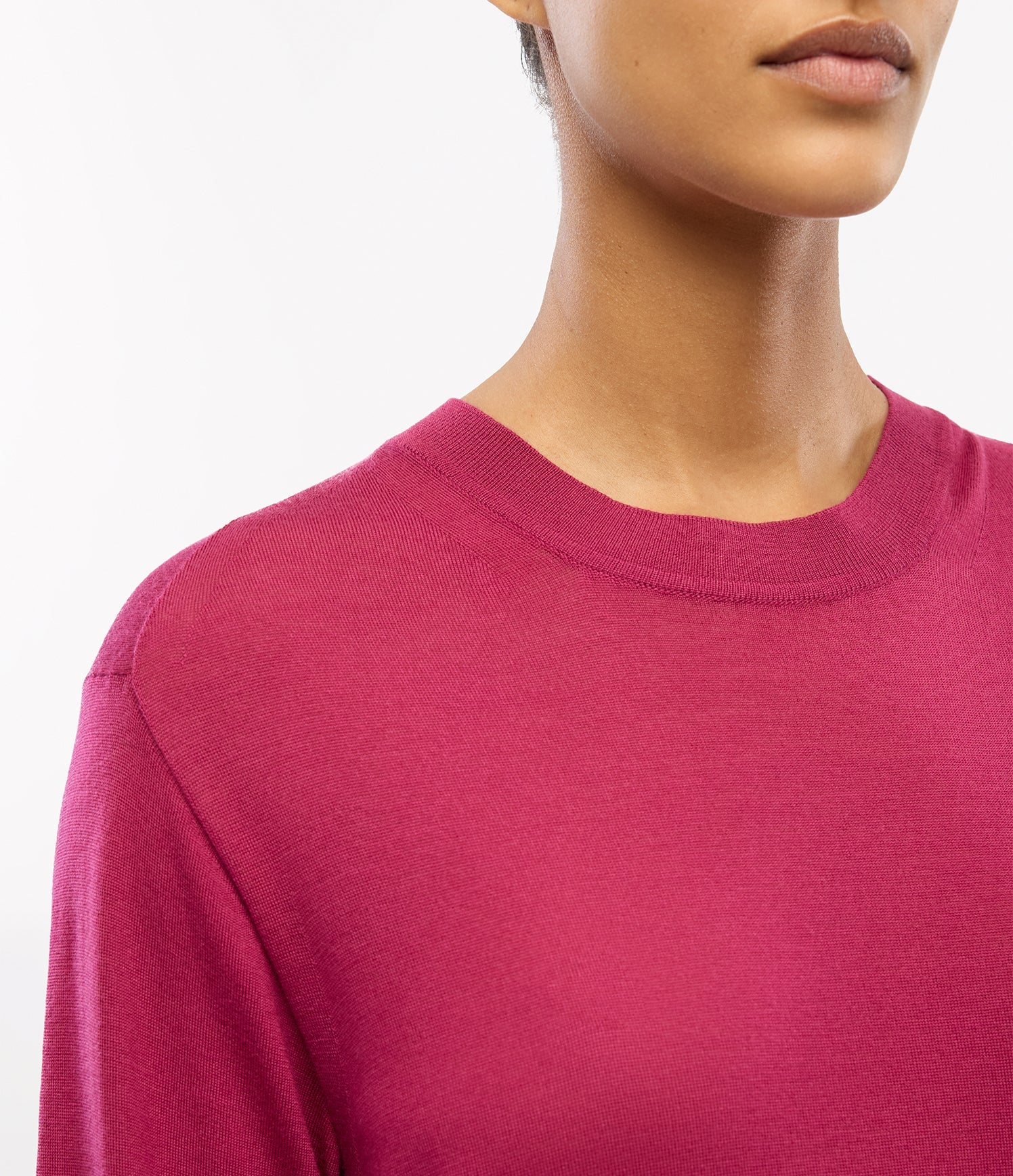 Crafted in our feather-weight sheer wool, finely knit and perfect for layering. This Crew fits close to the body featuring fully fashioned details that create a flattering silhouette.