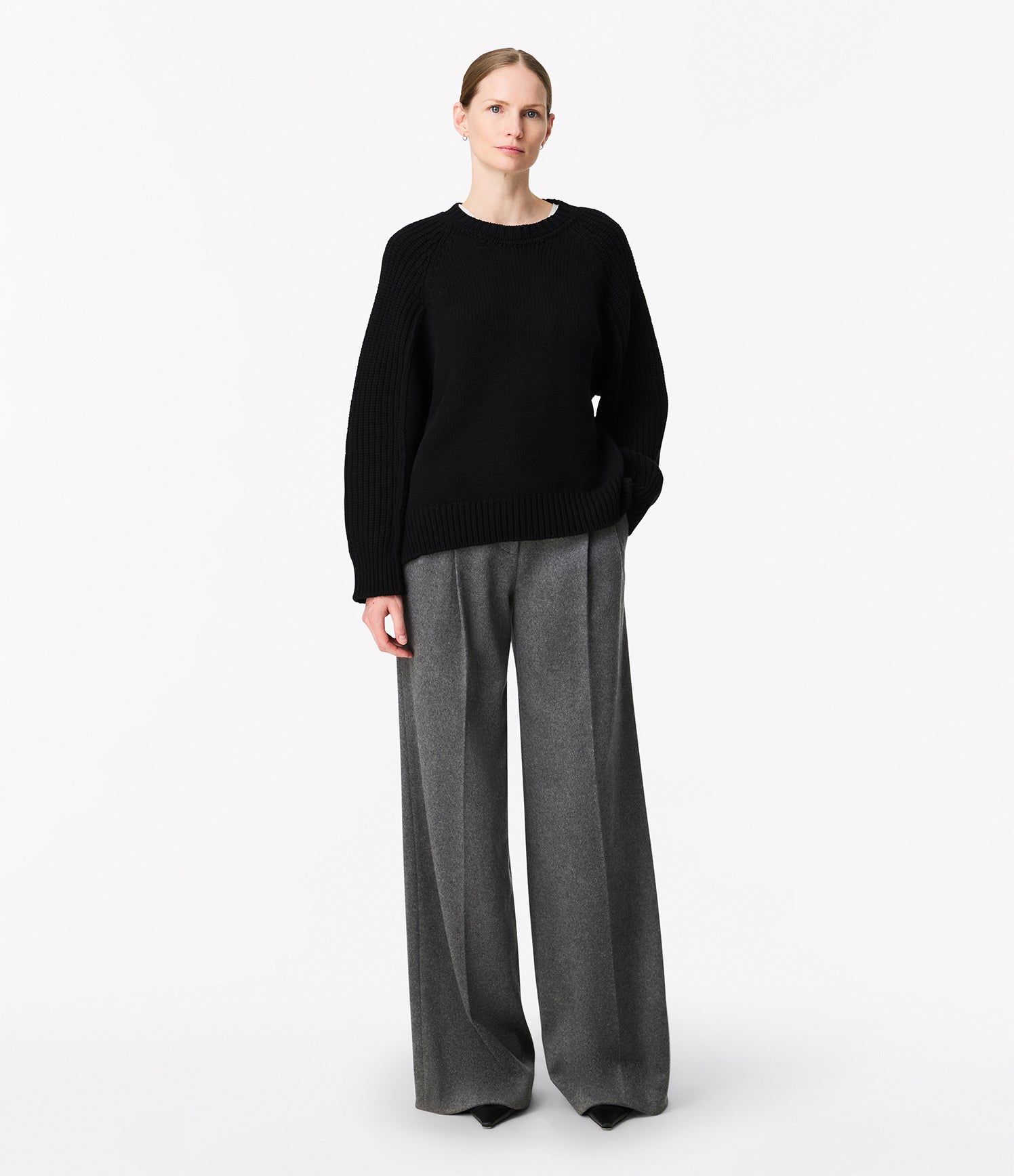 Knitted in a midweight cashmere-wool blend, this sweater was designed to sit loosely to the body for a relaxed, oversize fit. Ribbed trim accents the hem, cuffs and raglan sleeves.