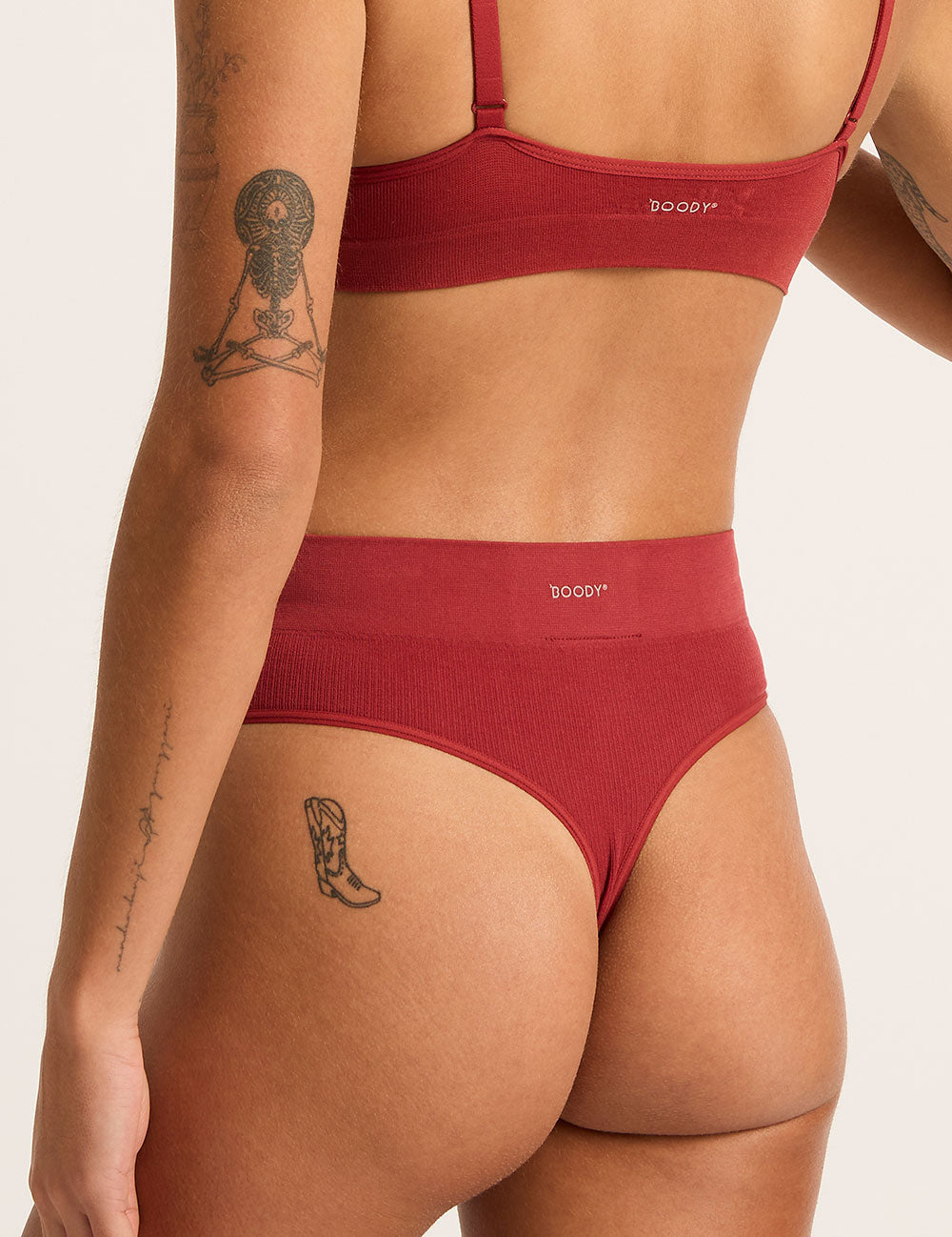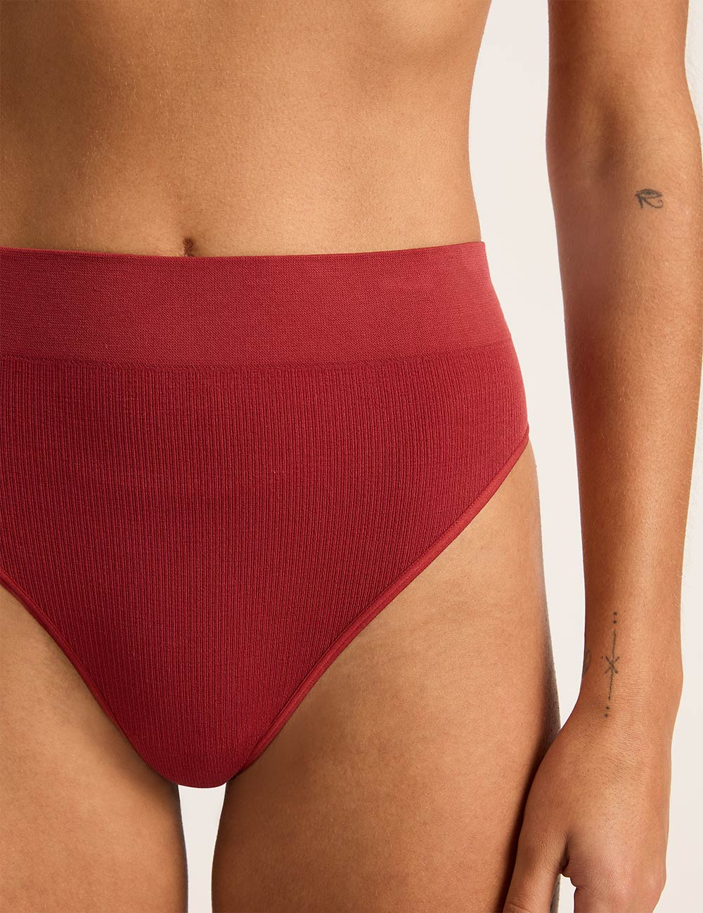 • High-waist, cheeky fit for a sleek, body-hugging effect.